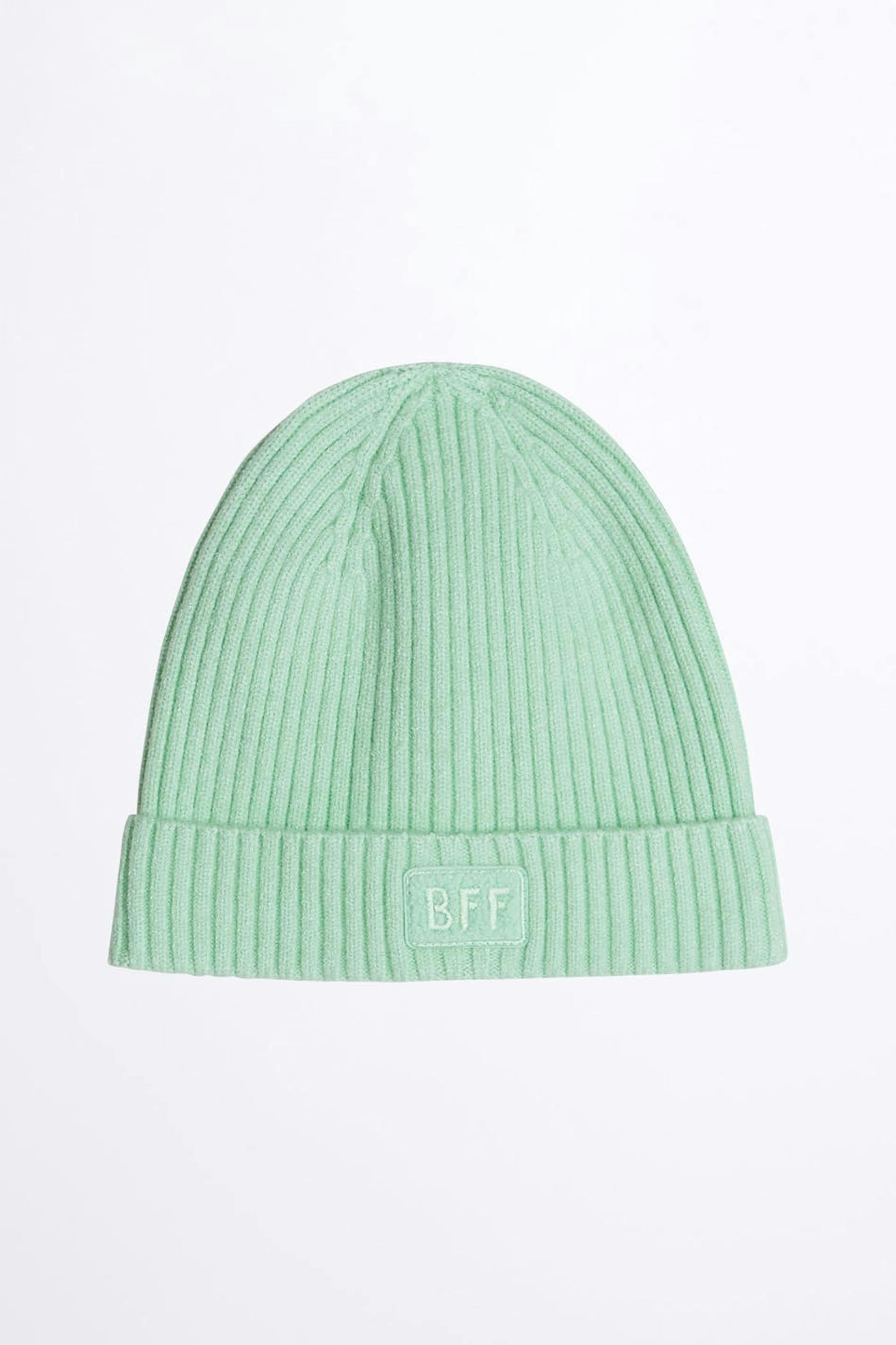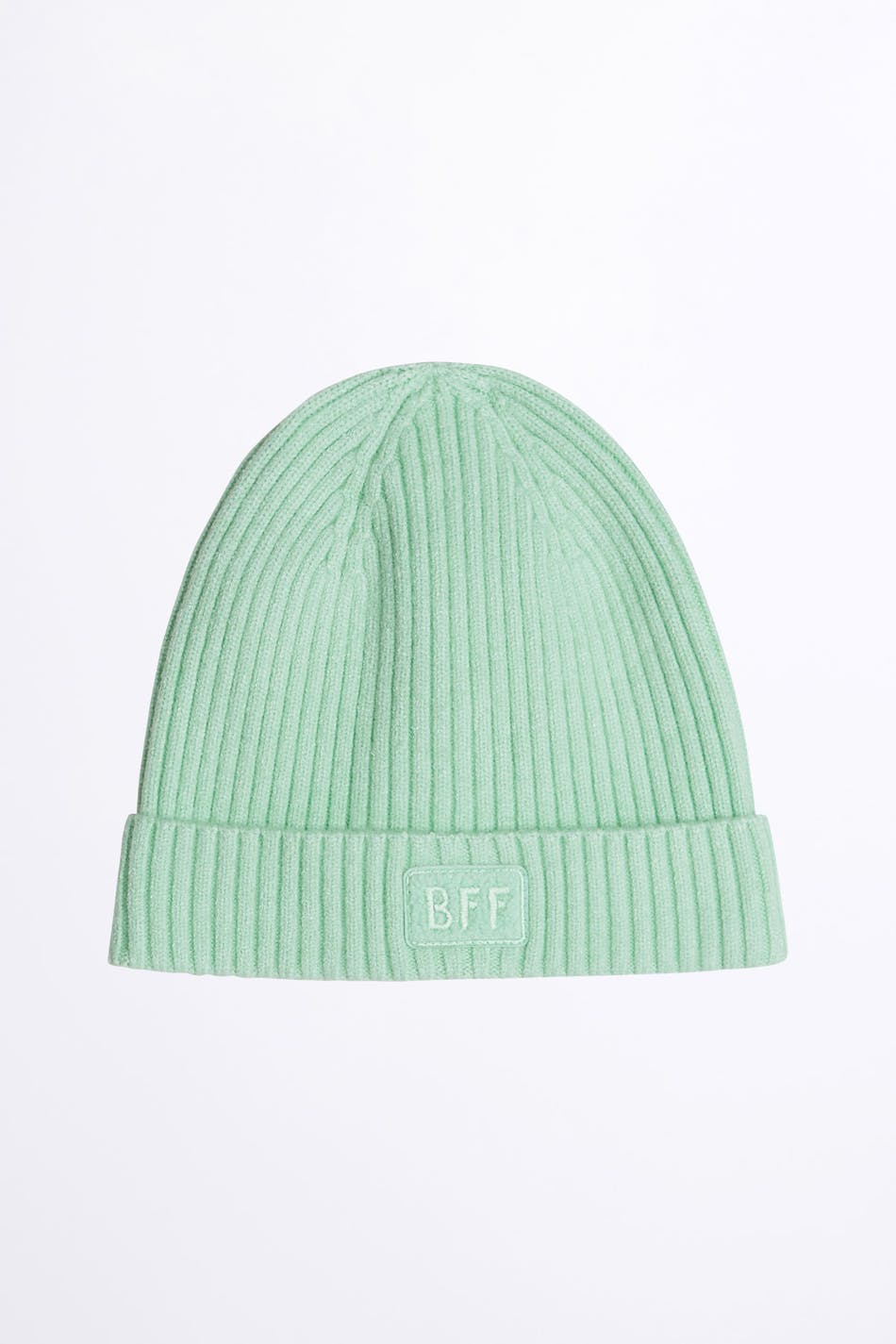 Rib-knit beanie for children. The beanie is mint green.