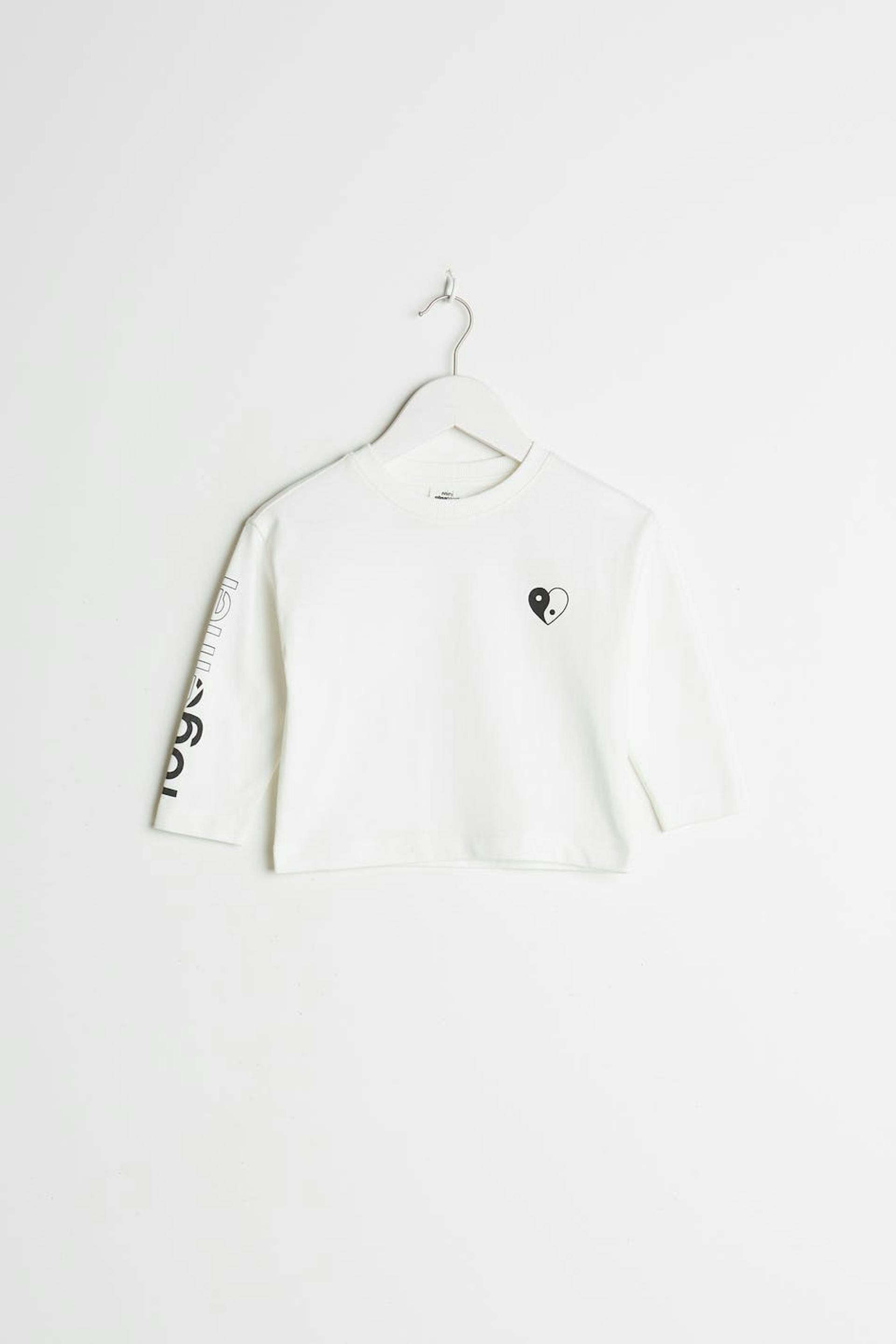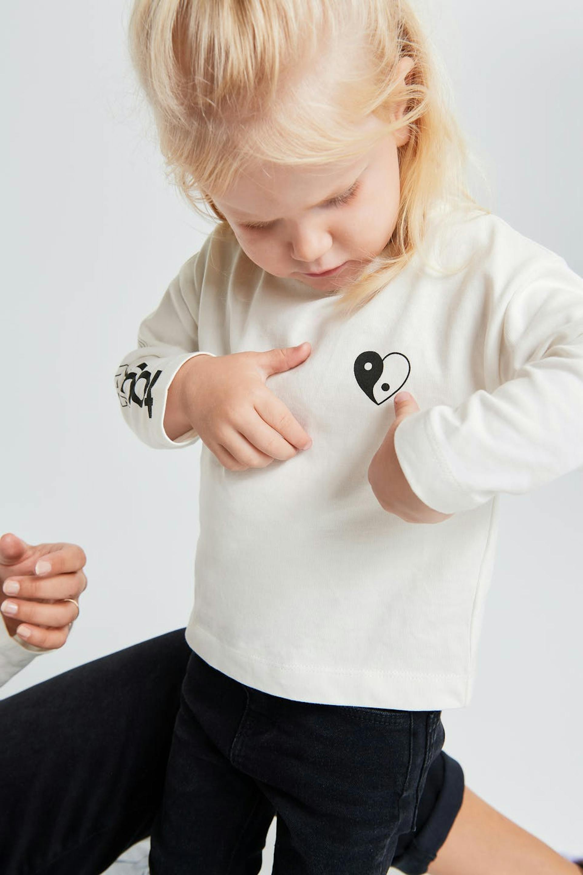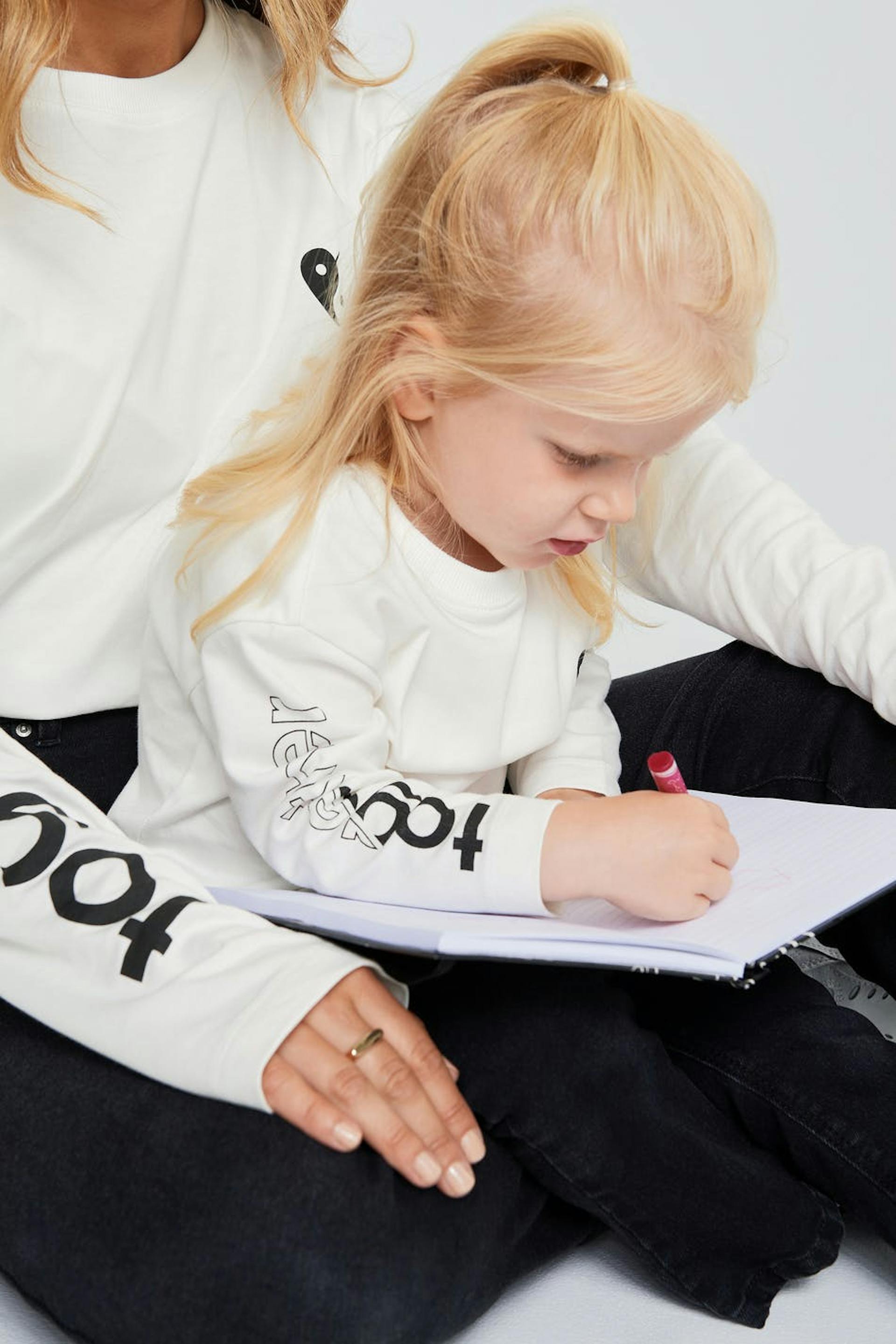 Long-sleeved top for children with a normal fit. The top is white and has a print on the sleeves. It is made of jersey and has a casual fit.