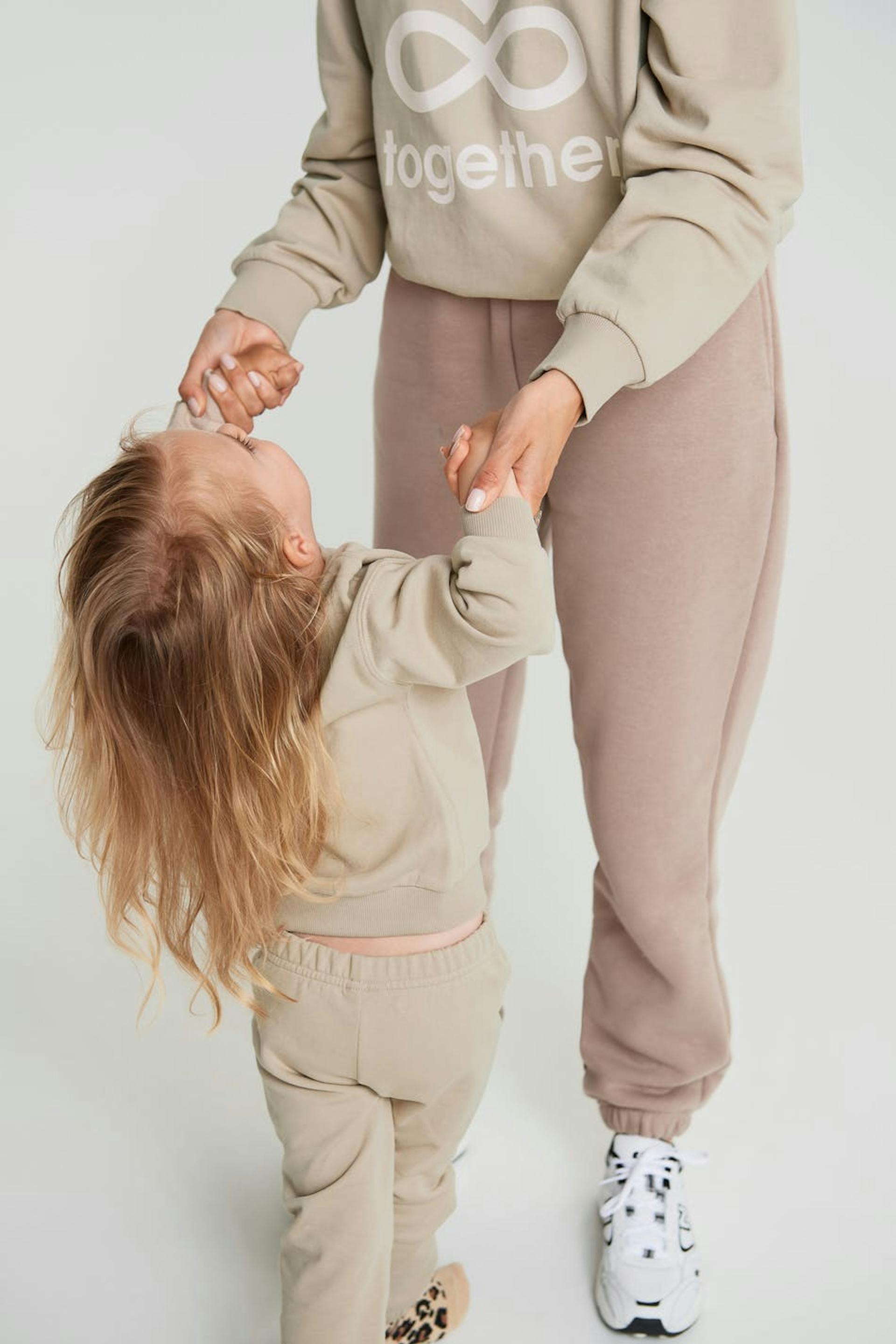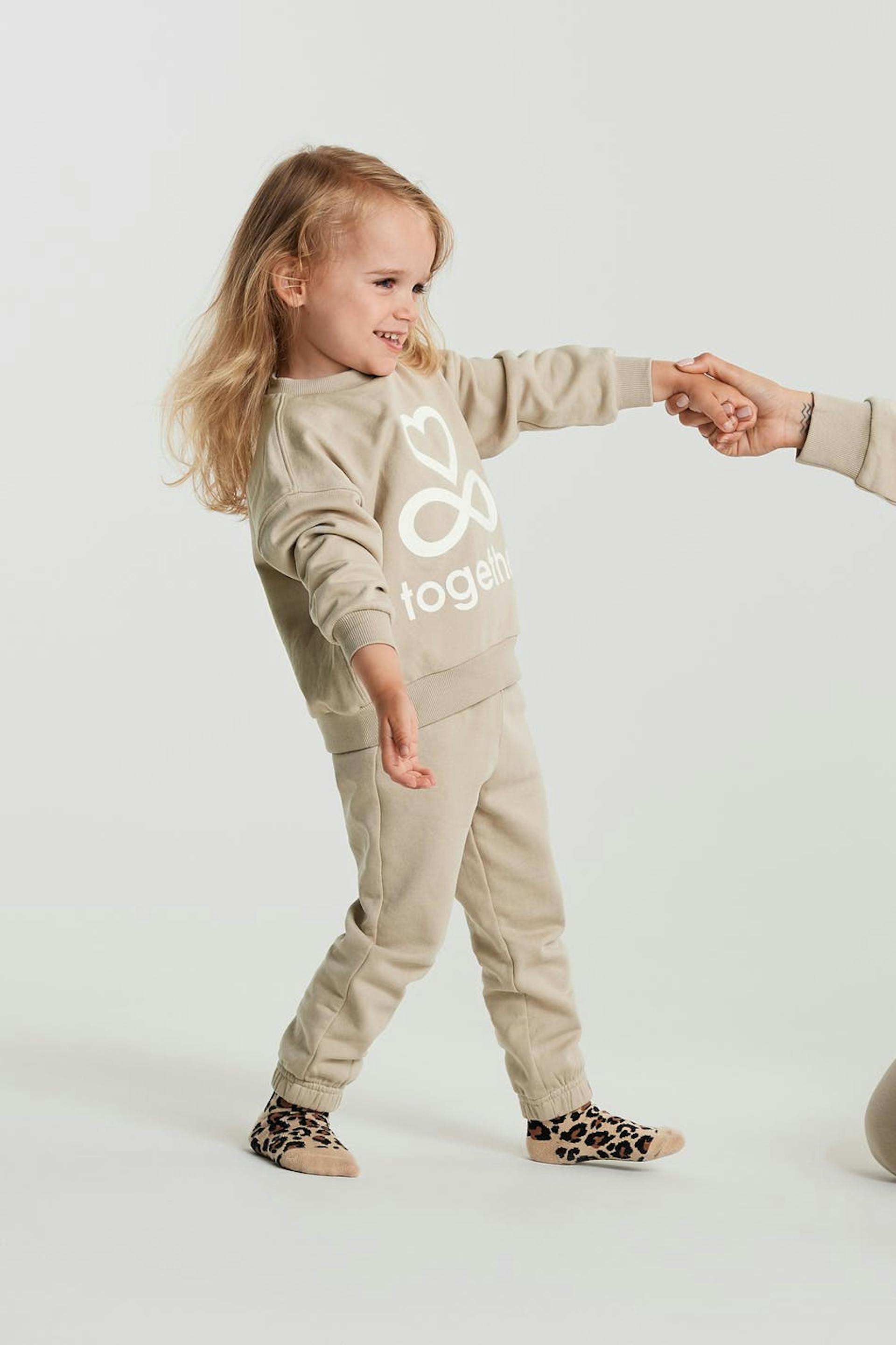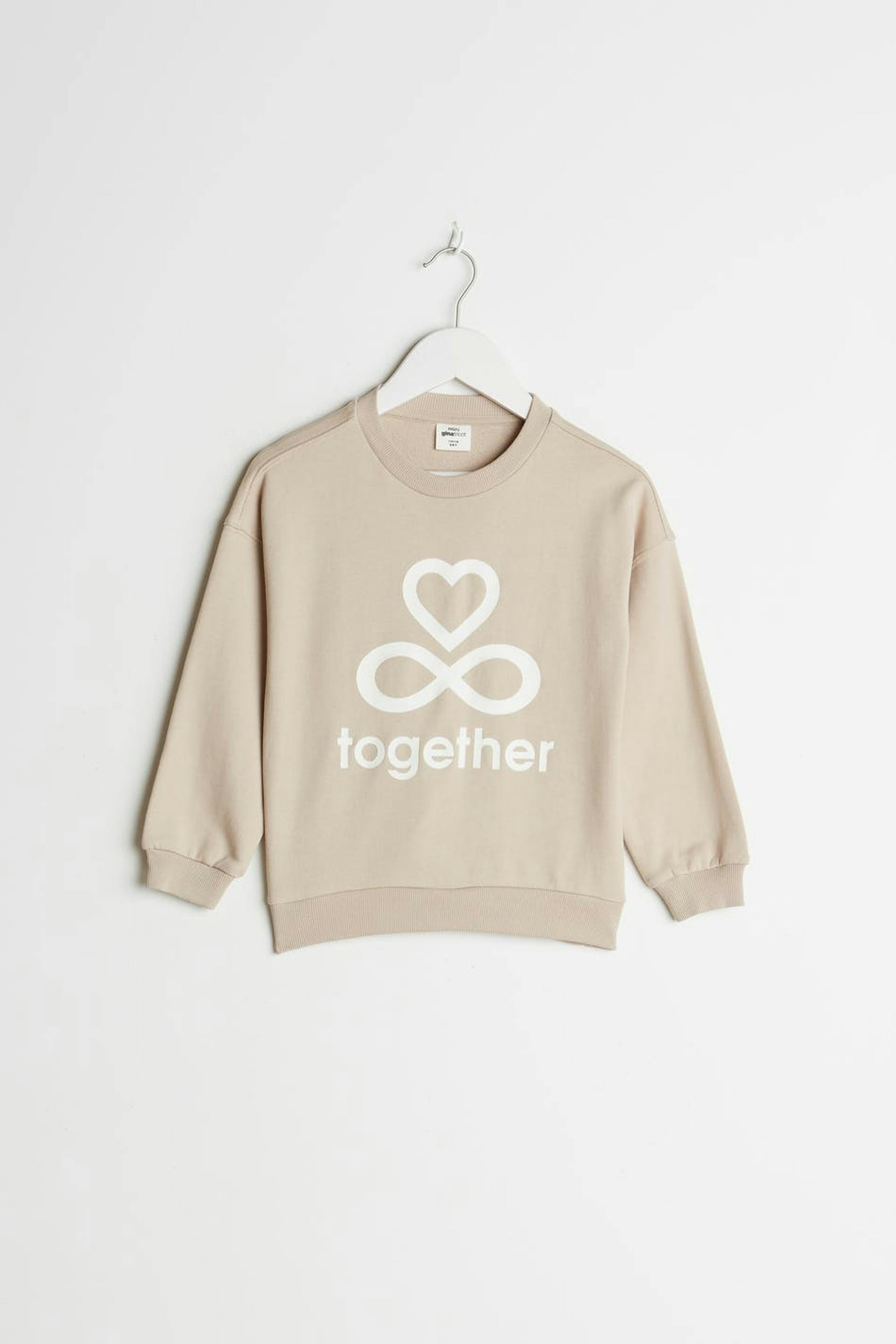 Unisex sweatshirt for children with a normal fit. The sweatshirt is beige and soft and has a print at the front.