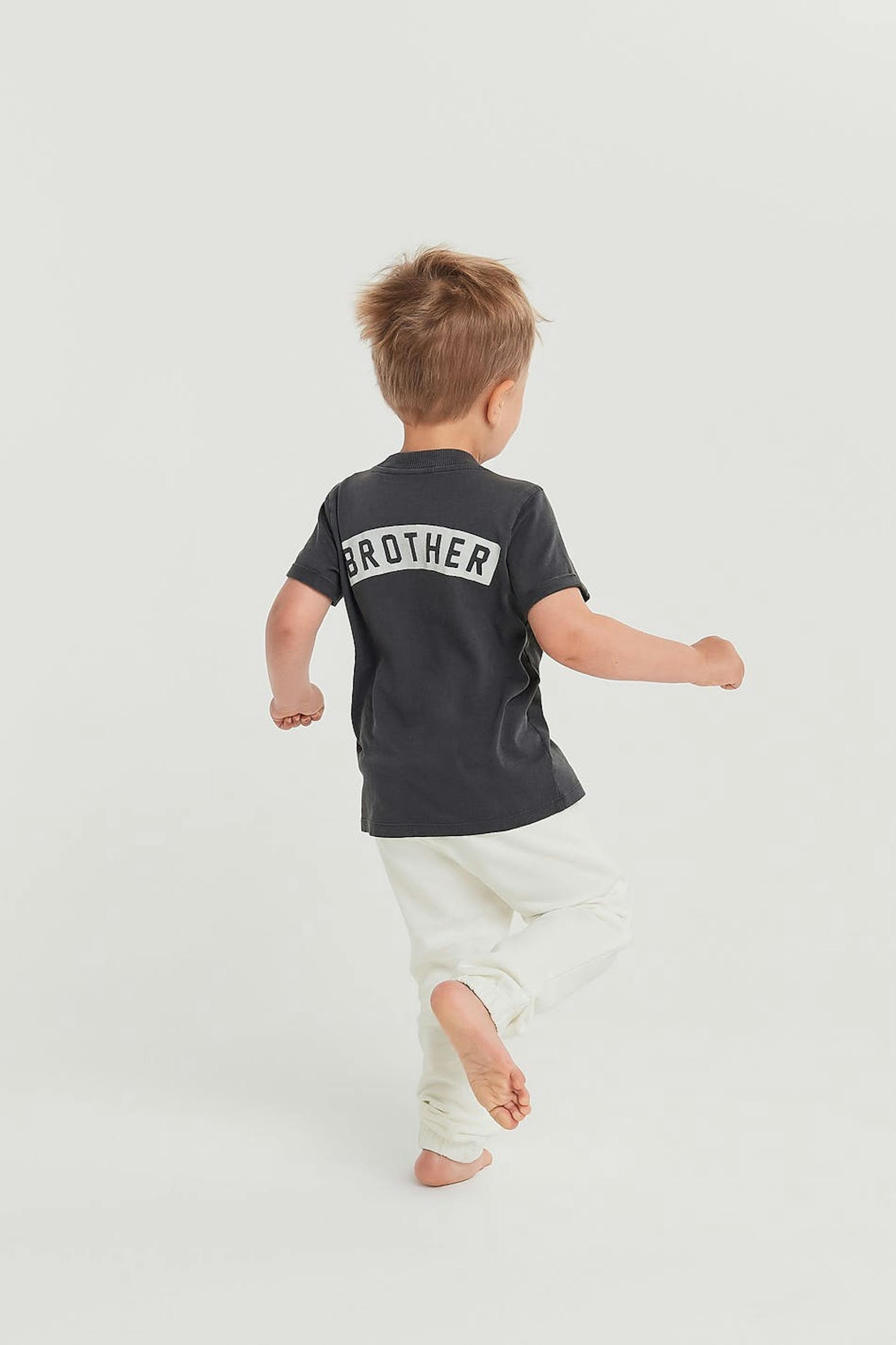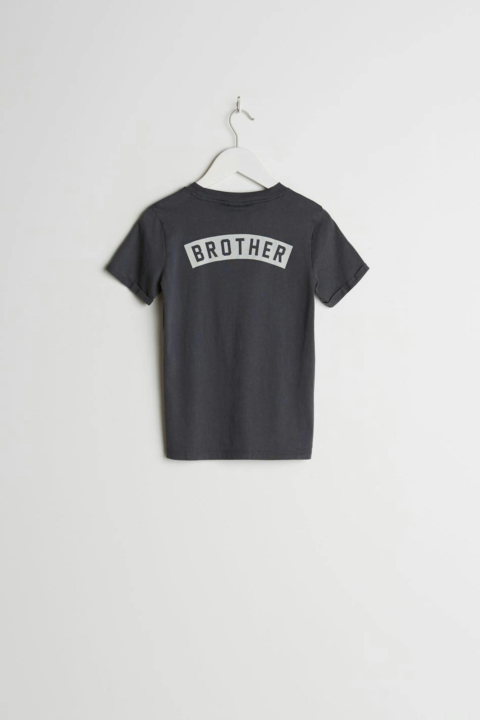 T-shirt for children with a text at the back. The t-shirt is grey and has a washed quality.