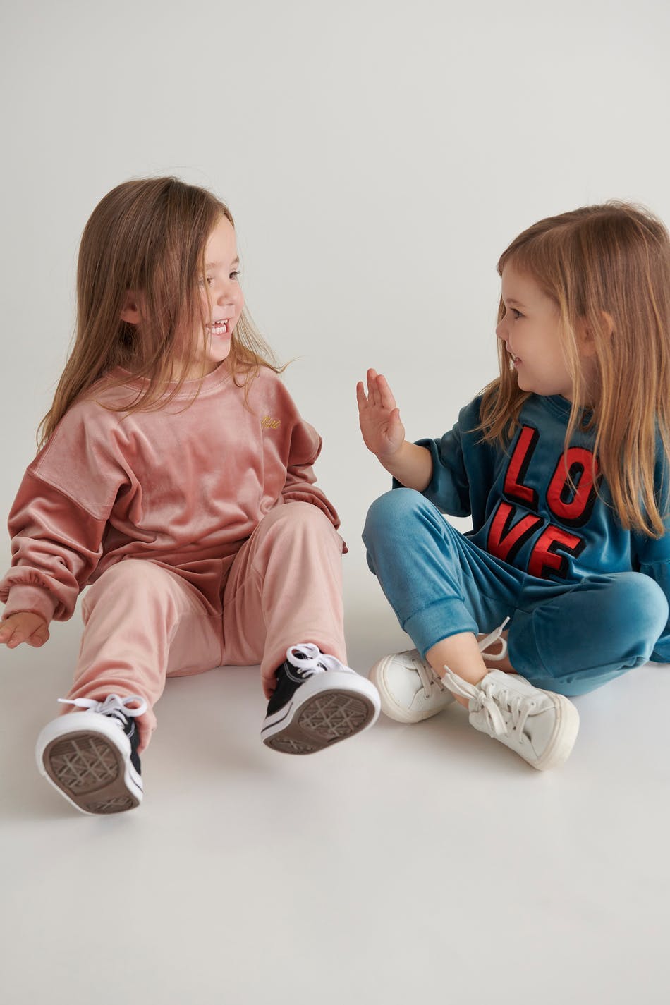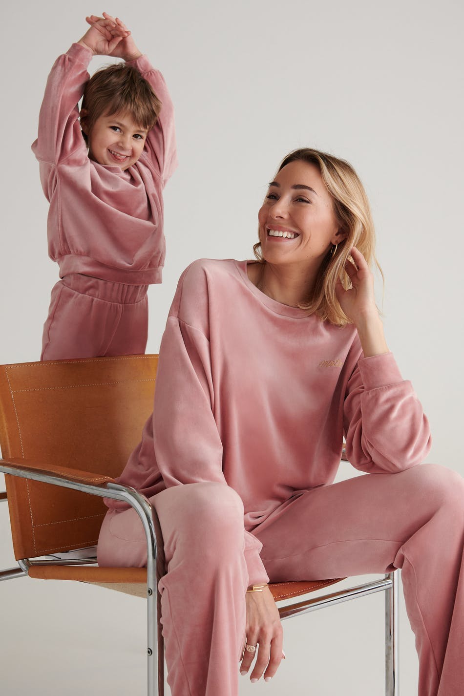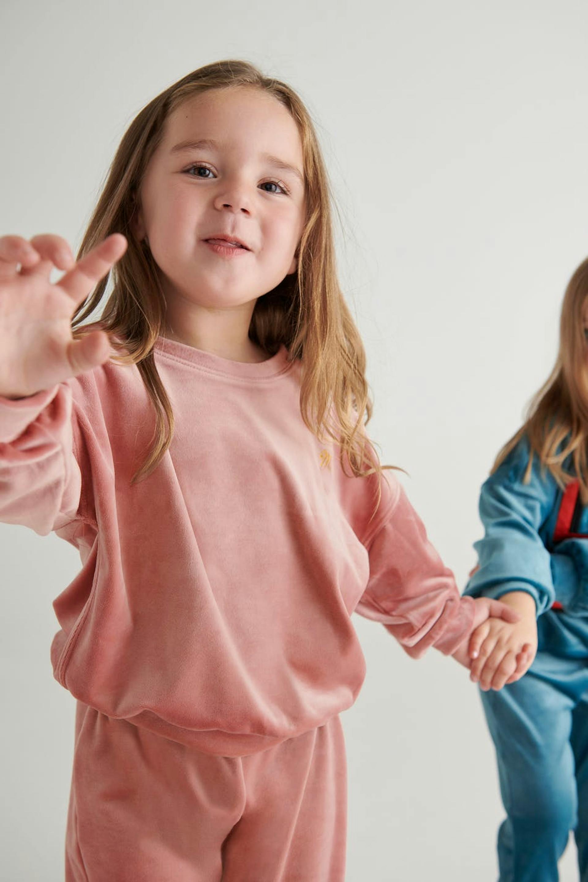 Unisex jumper for children with an oversize fit. The jumper is ash rose. It is made of velour.