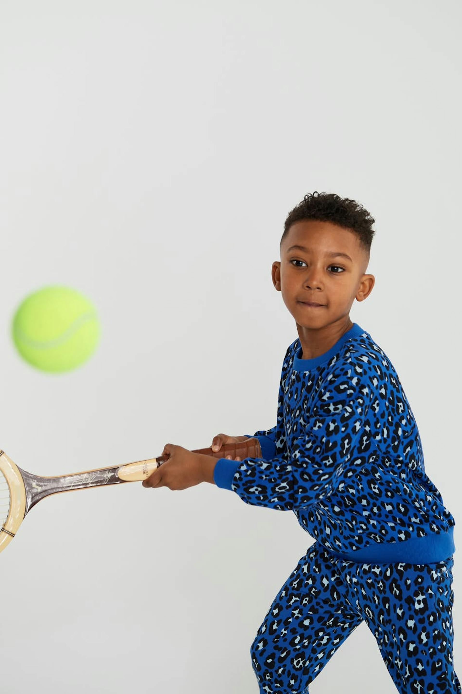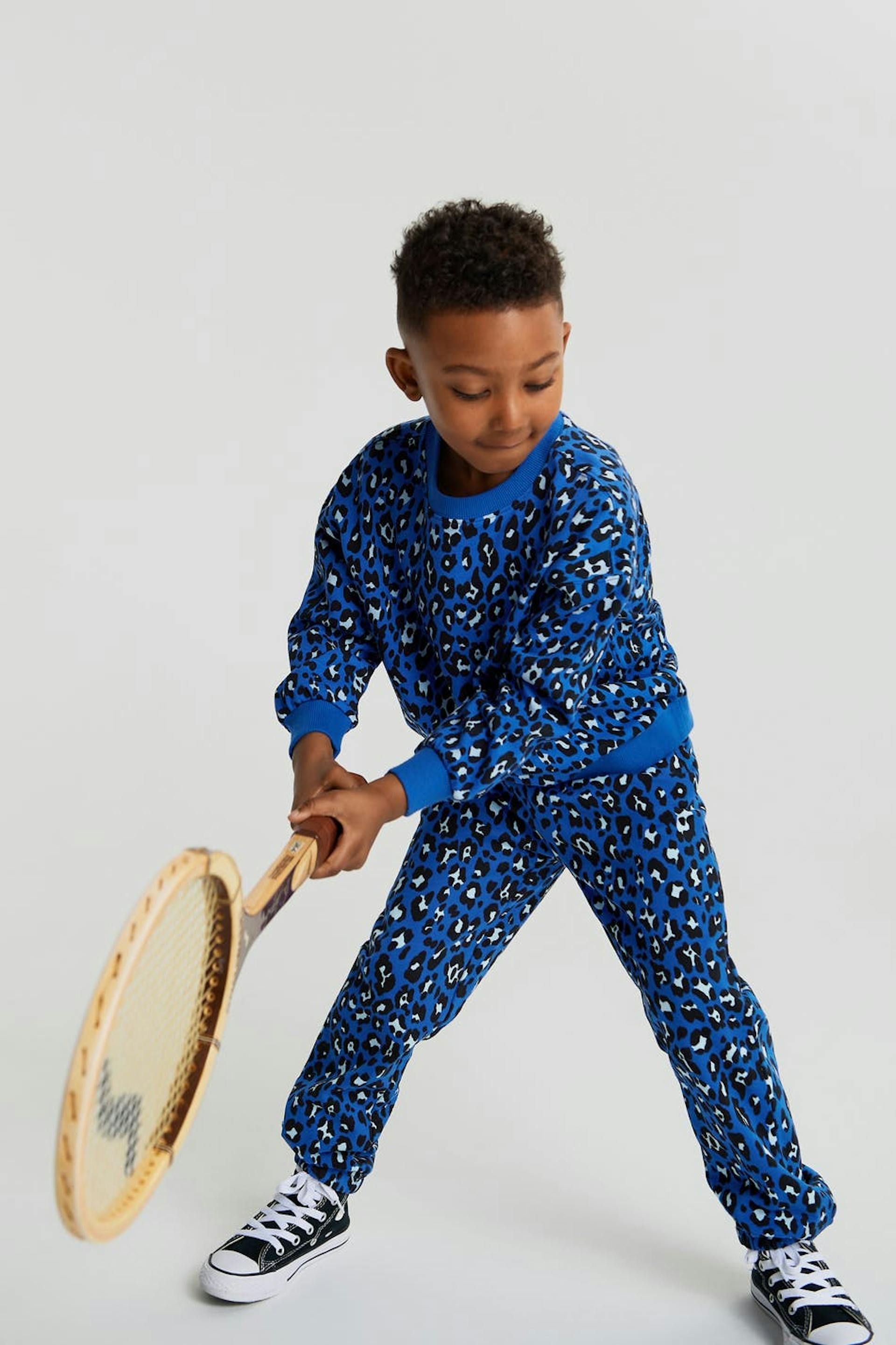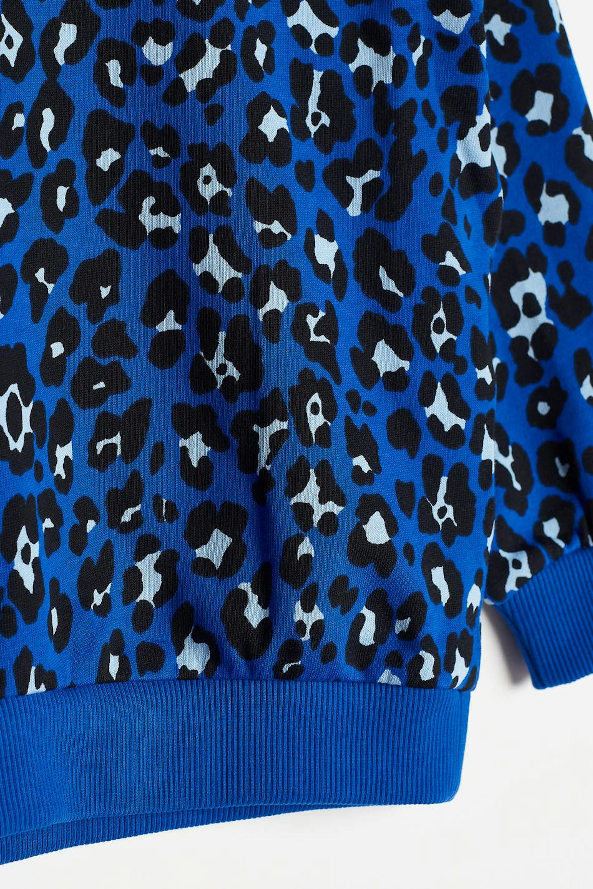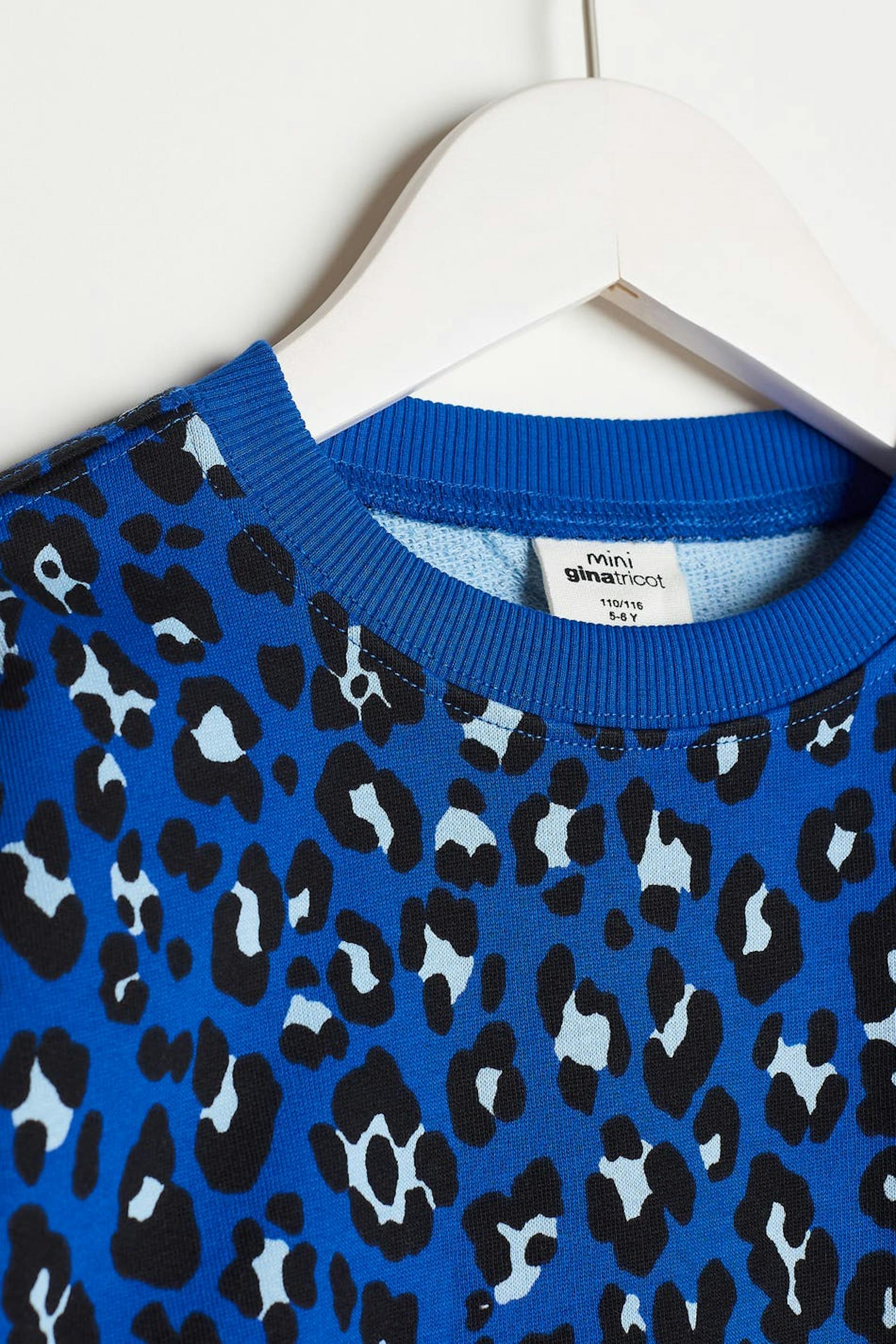 Sweat for children with a leopard pattern. The sweat is blue and unisex.