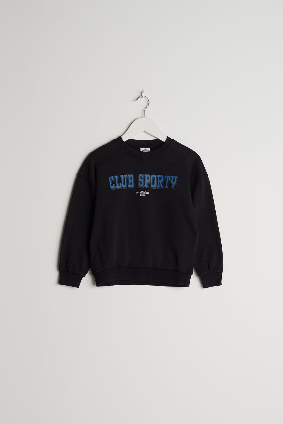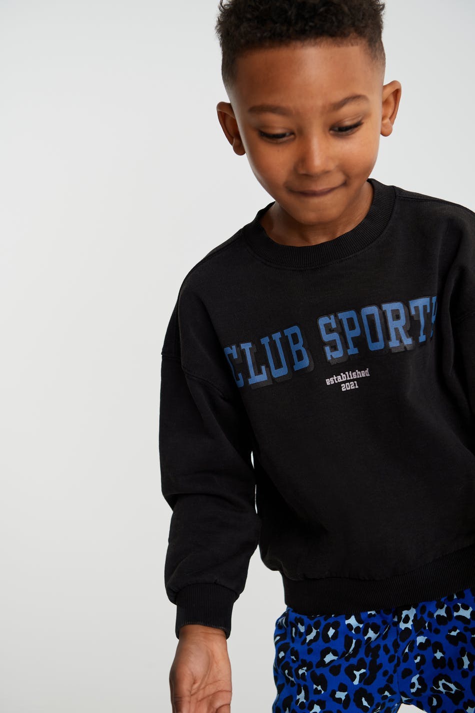 Unisex sweat for children with an oversize fit. The sweat is black and has a print at the front.
