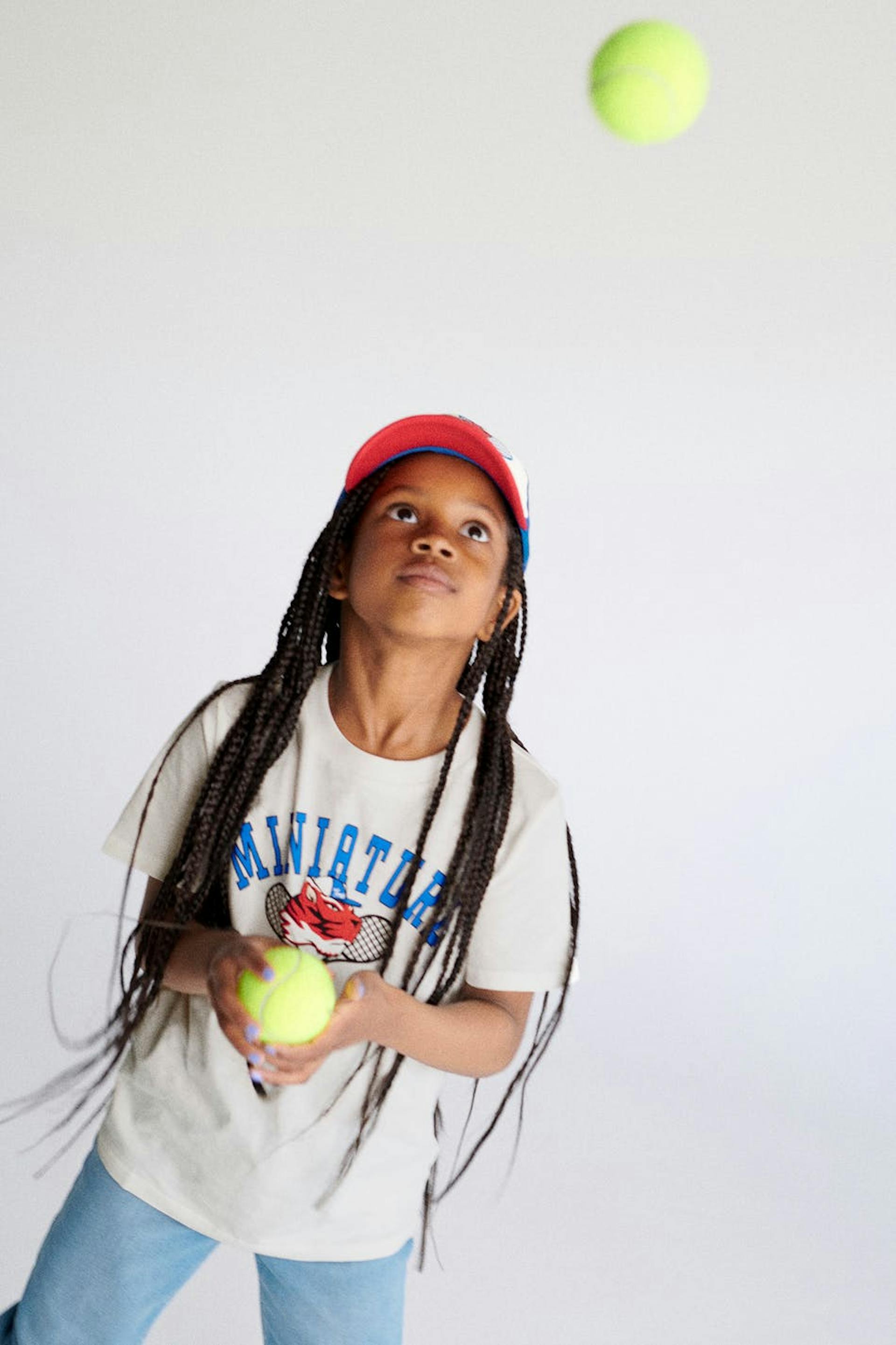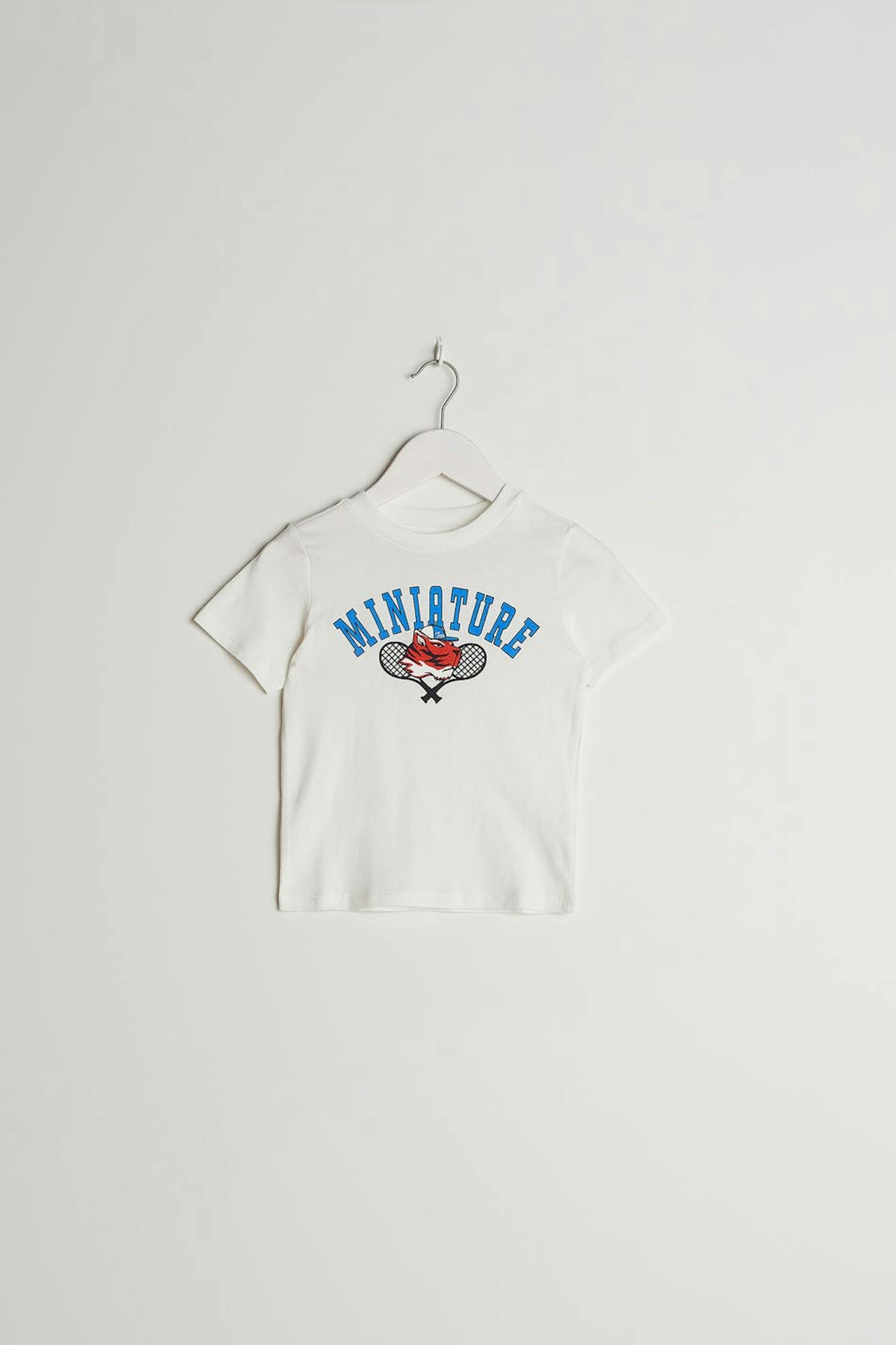 Unisex t-shirt for children with a print at the front. The t-shirt is white.