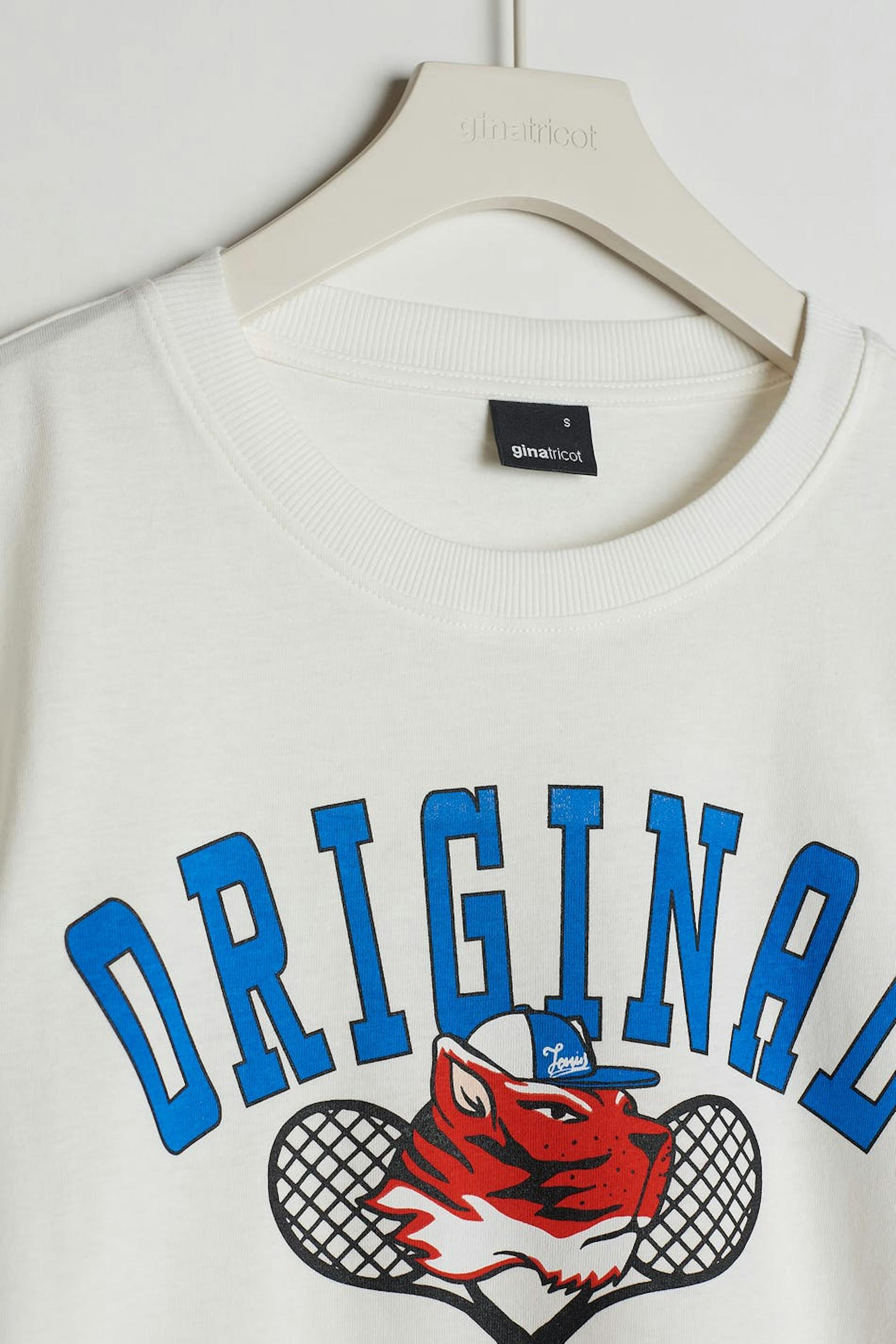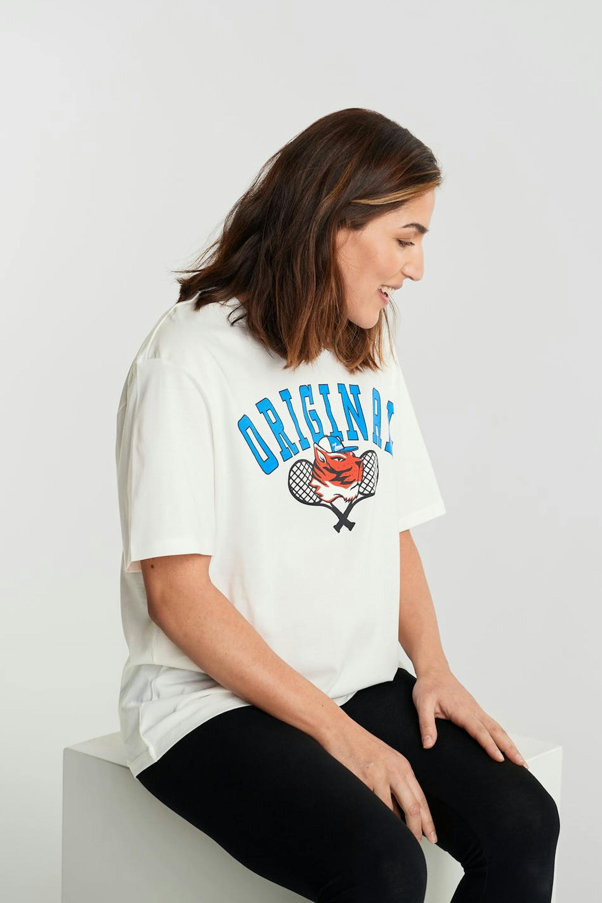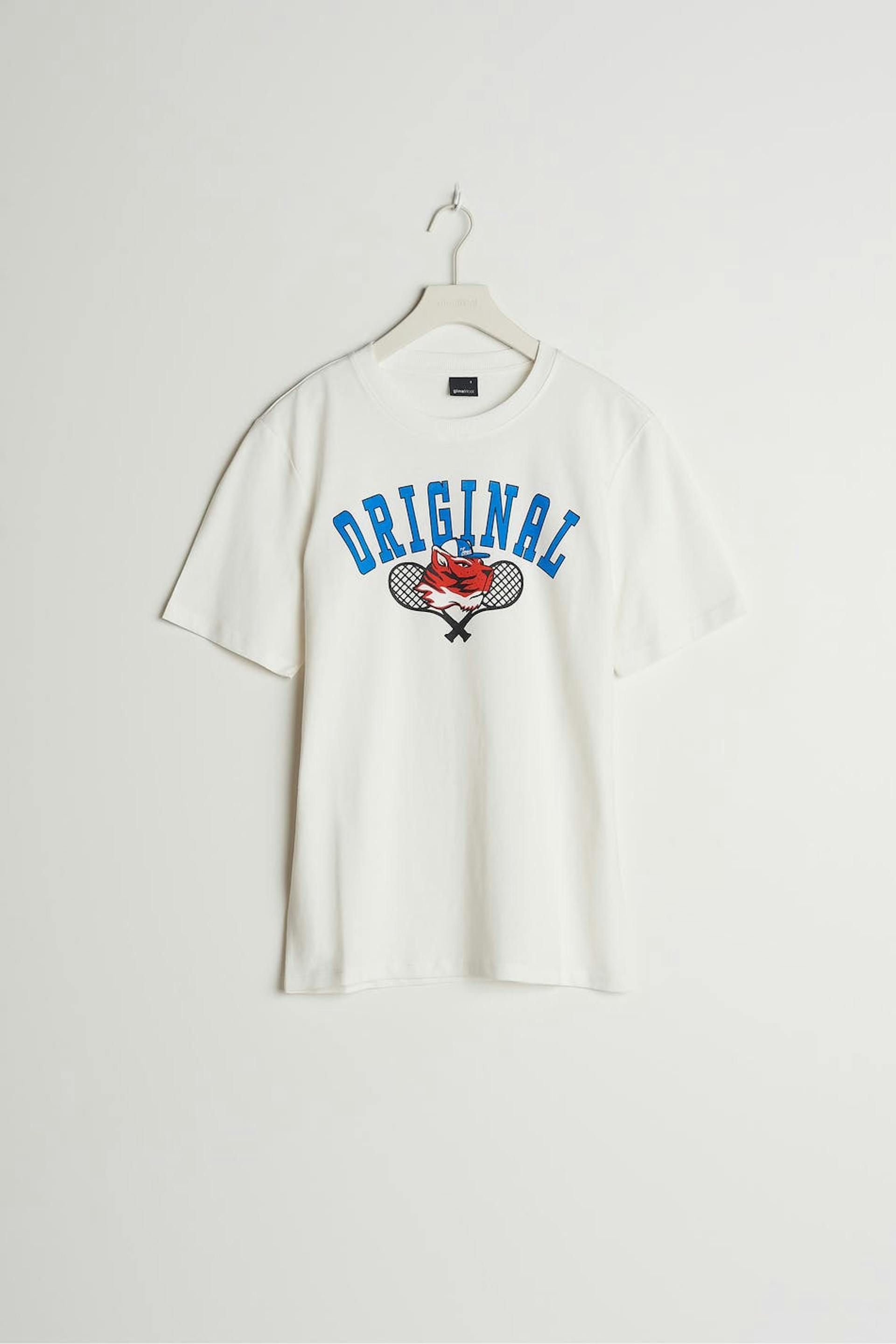 Short-sleeved t-shirt with an oversize fit. The t-shirt is white and unisex and has a print on the front.