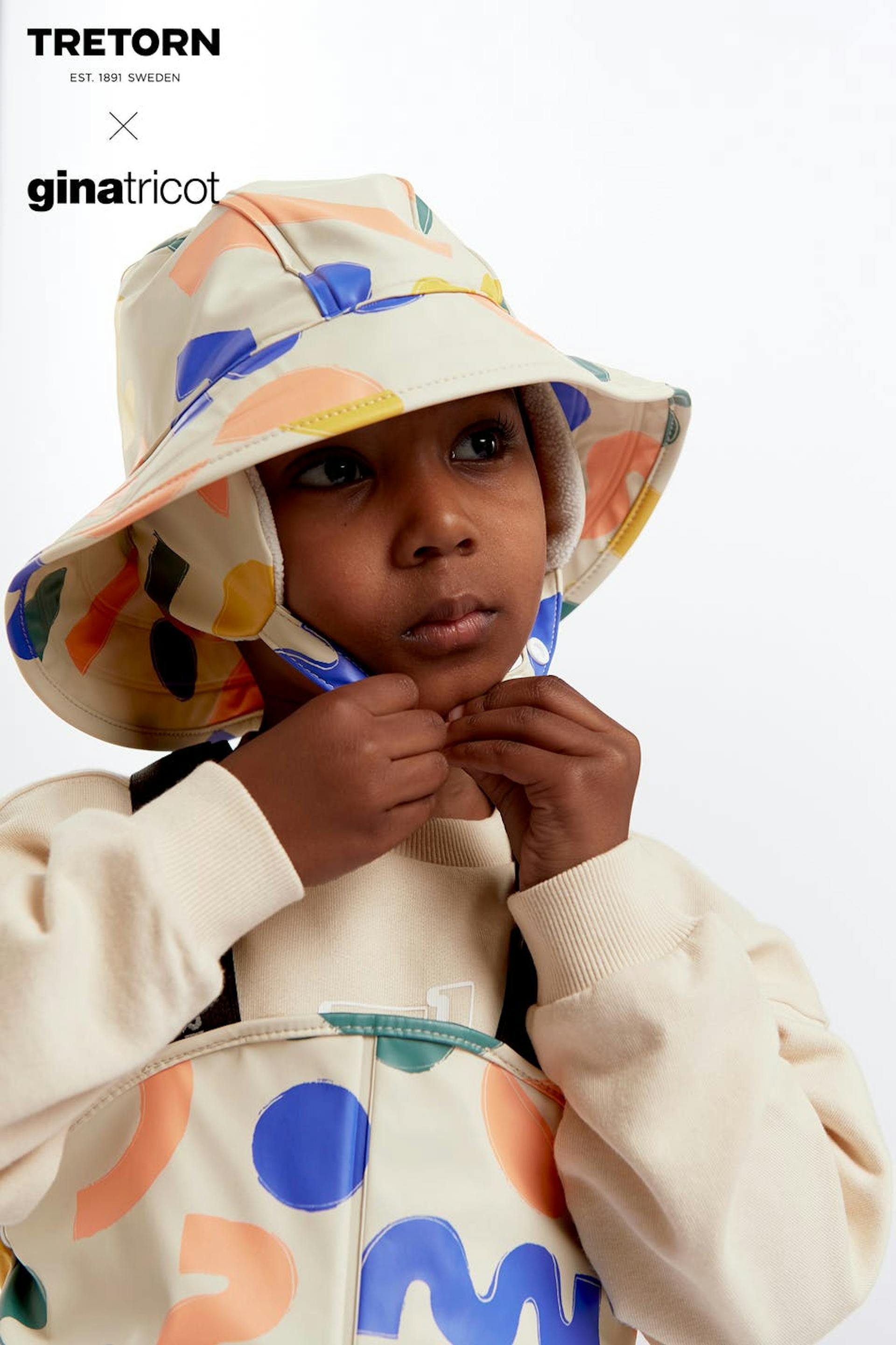 Tretorn X Gina tricot. Hat in collaboration with Tretorn. Water repellent hat with welded seams. Beige, patterned, windproof and free from PFC and PVC. It has a comfortable, soft lining in fleece and an adjustable button closure to the neck. Water column: 5000 mm.