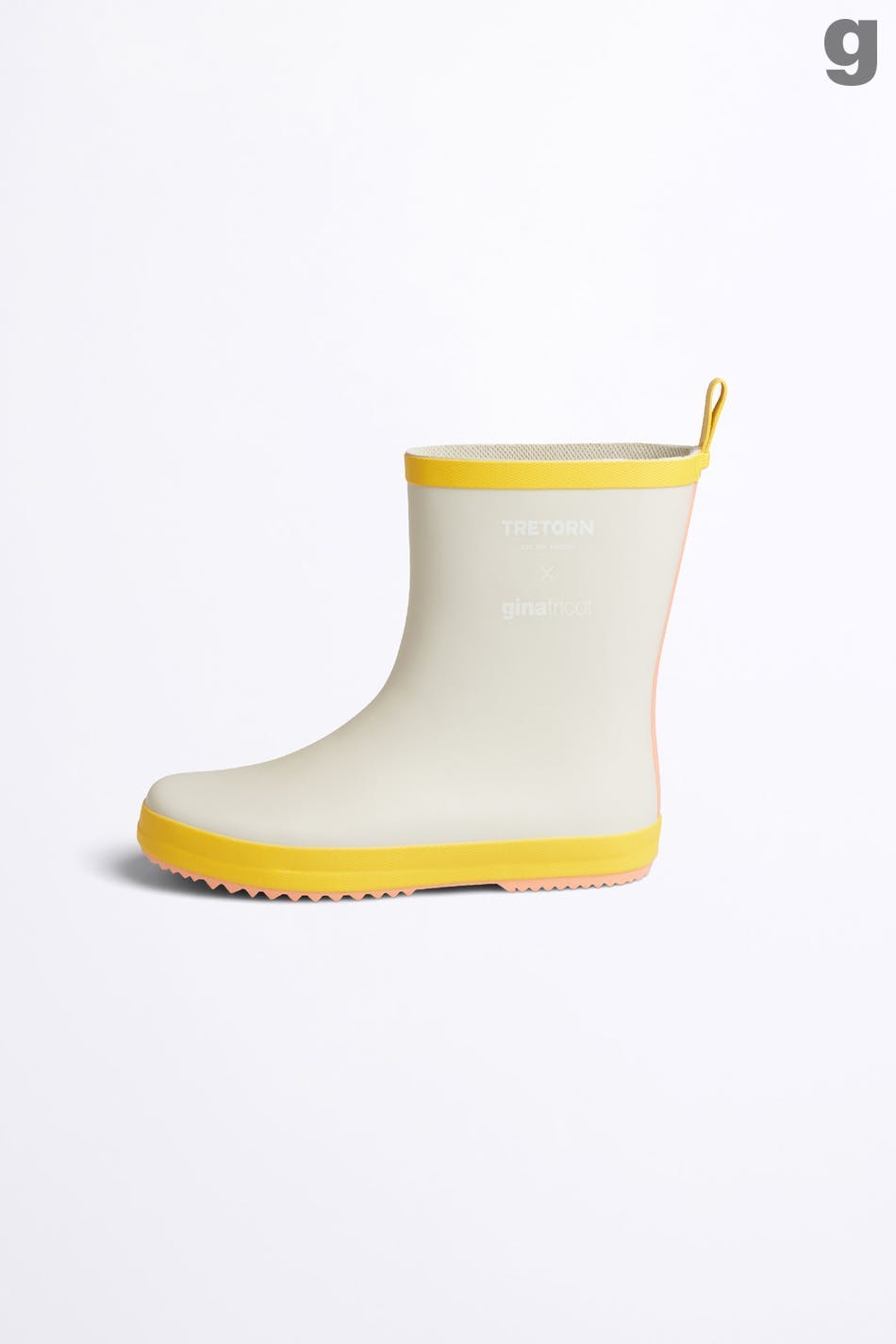 Tretorn X Gina tricot. Rain boots in collaboration with Tretorn. Rain boots with a yellow rim. The boots are beige.