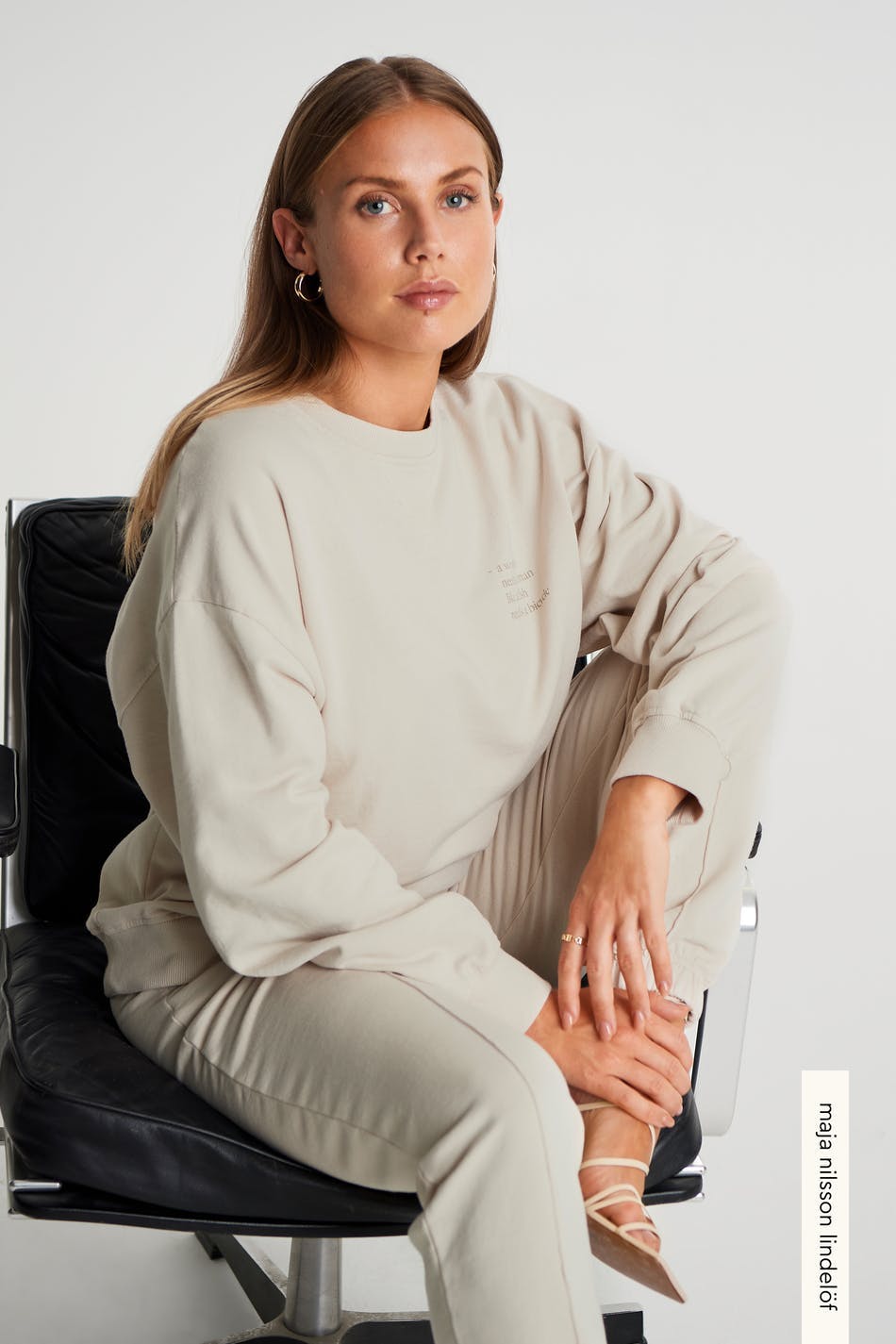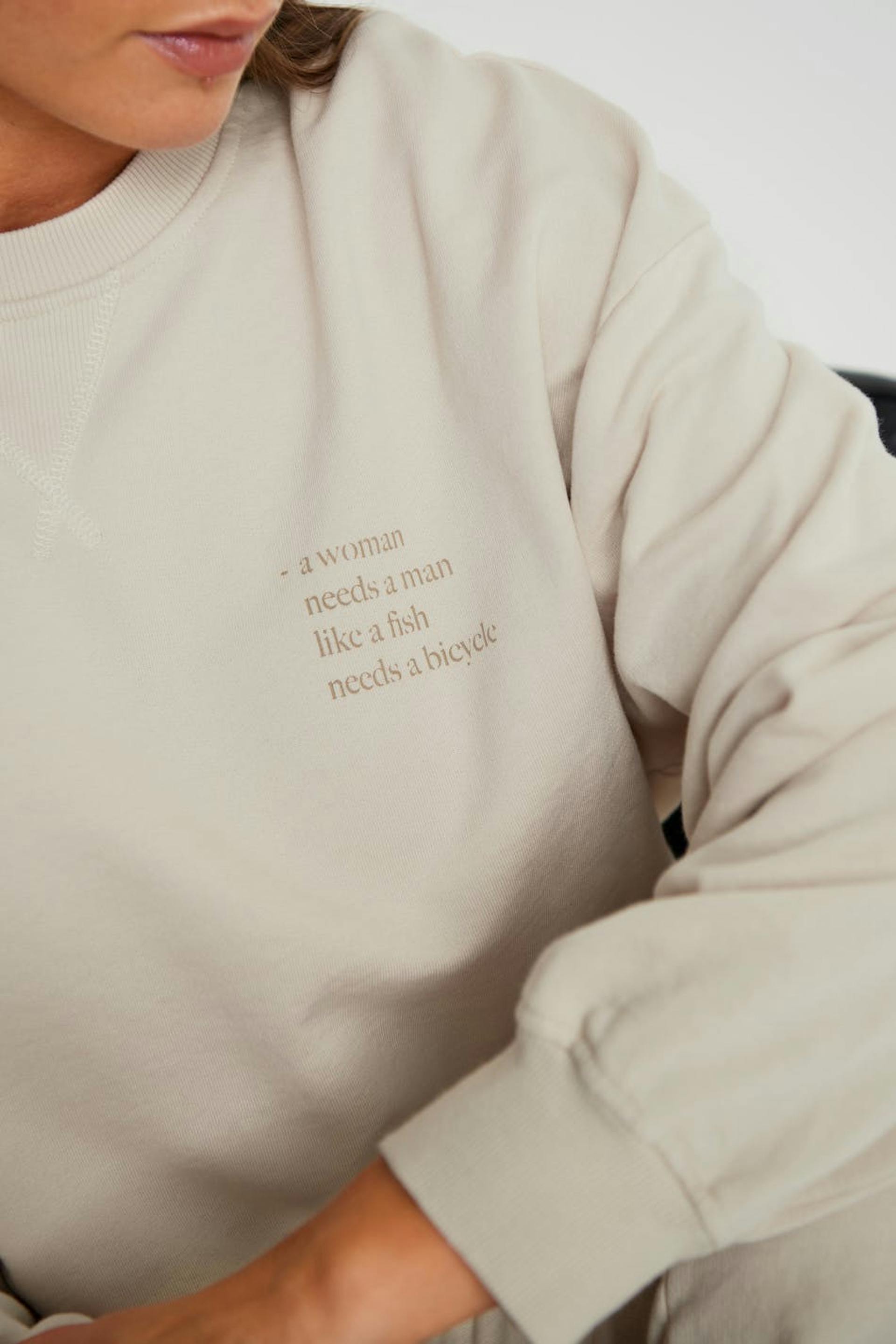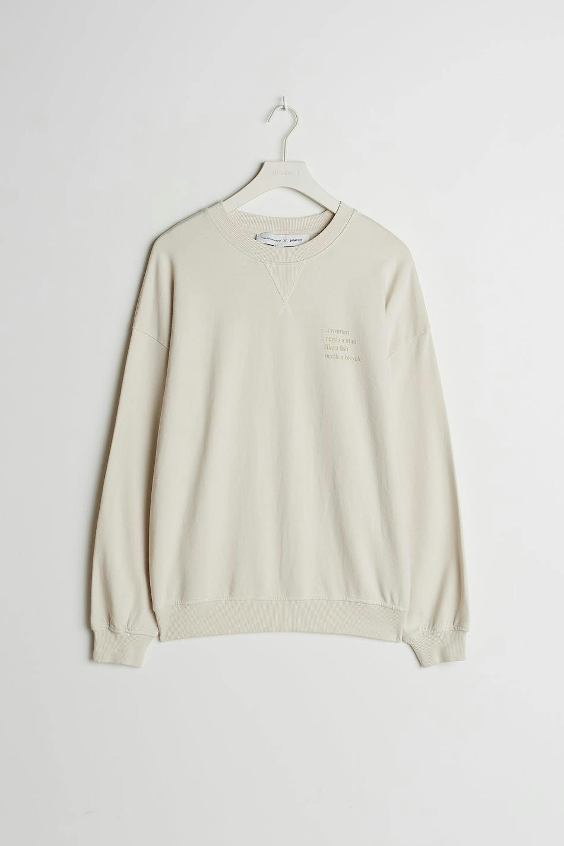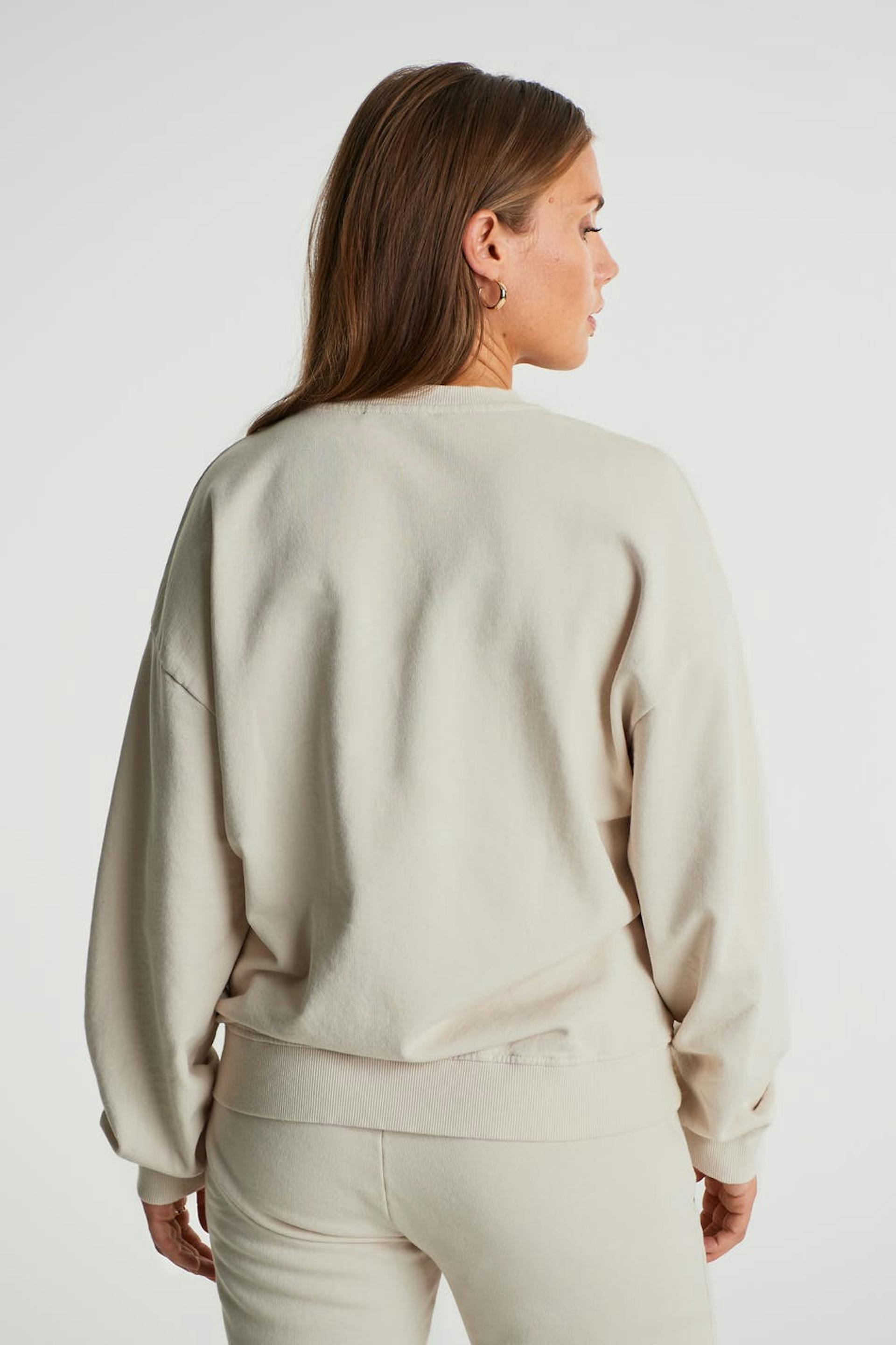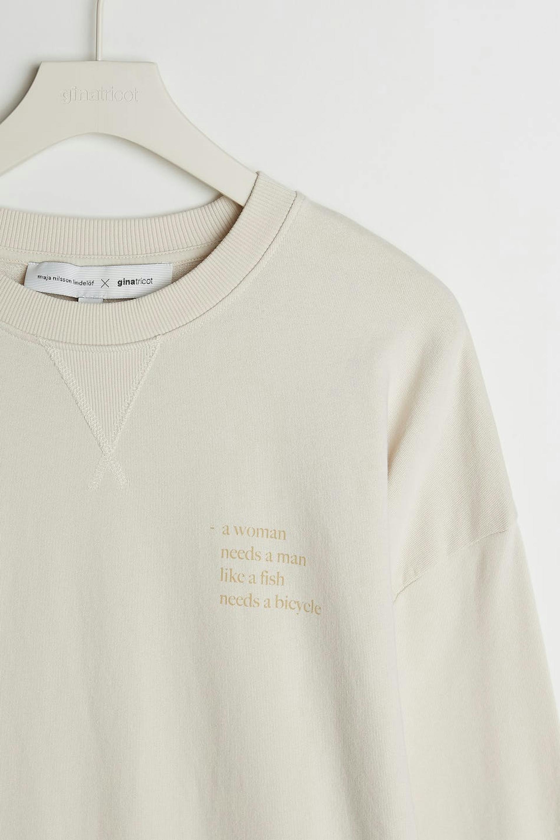 Maja X Gina tricot. Sweatshirt with an oversize fit. The sweatshirt is beige and has seam details to the neck. It has a print with a text on the chest.