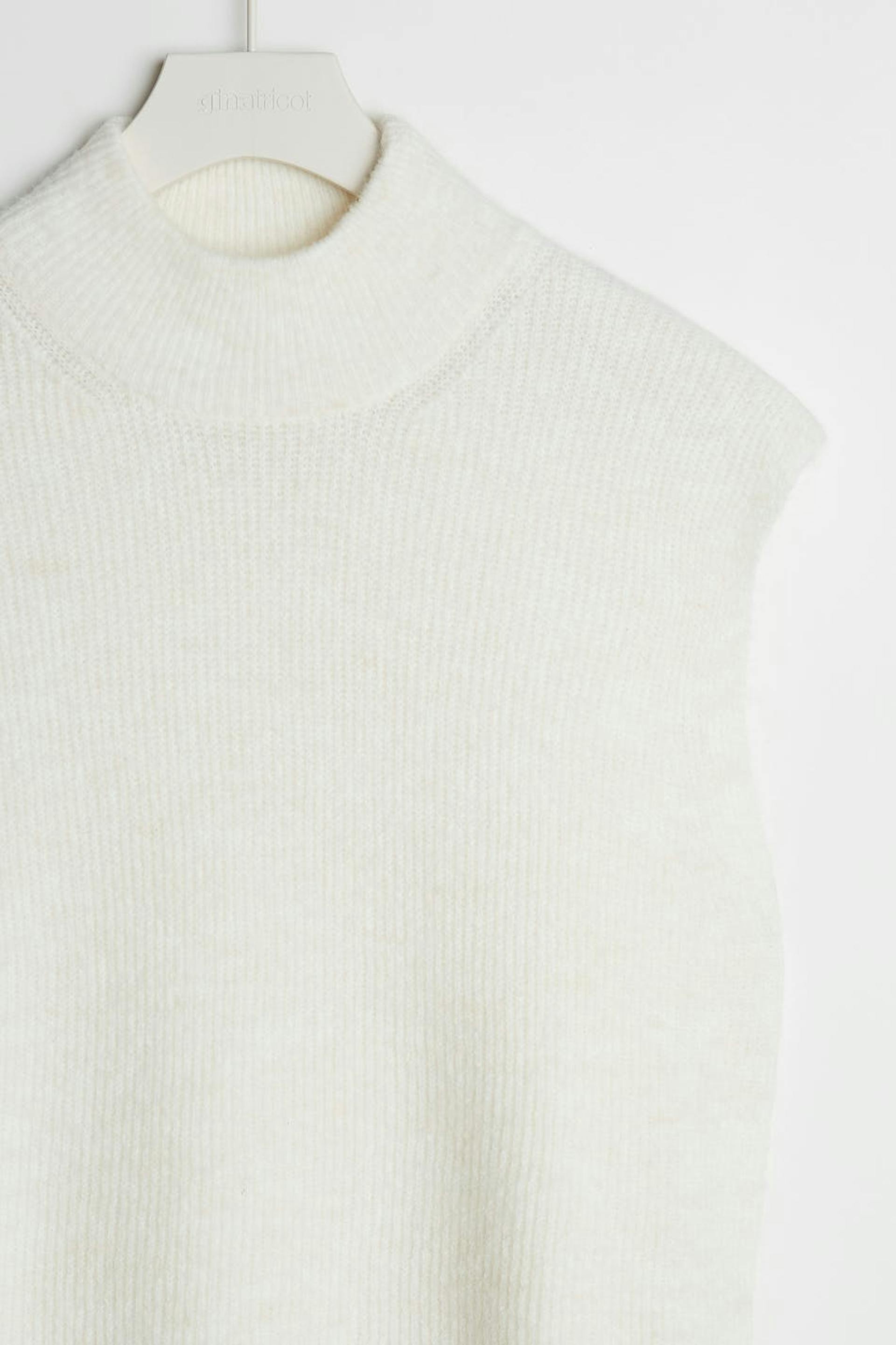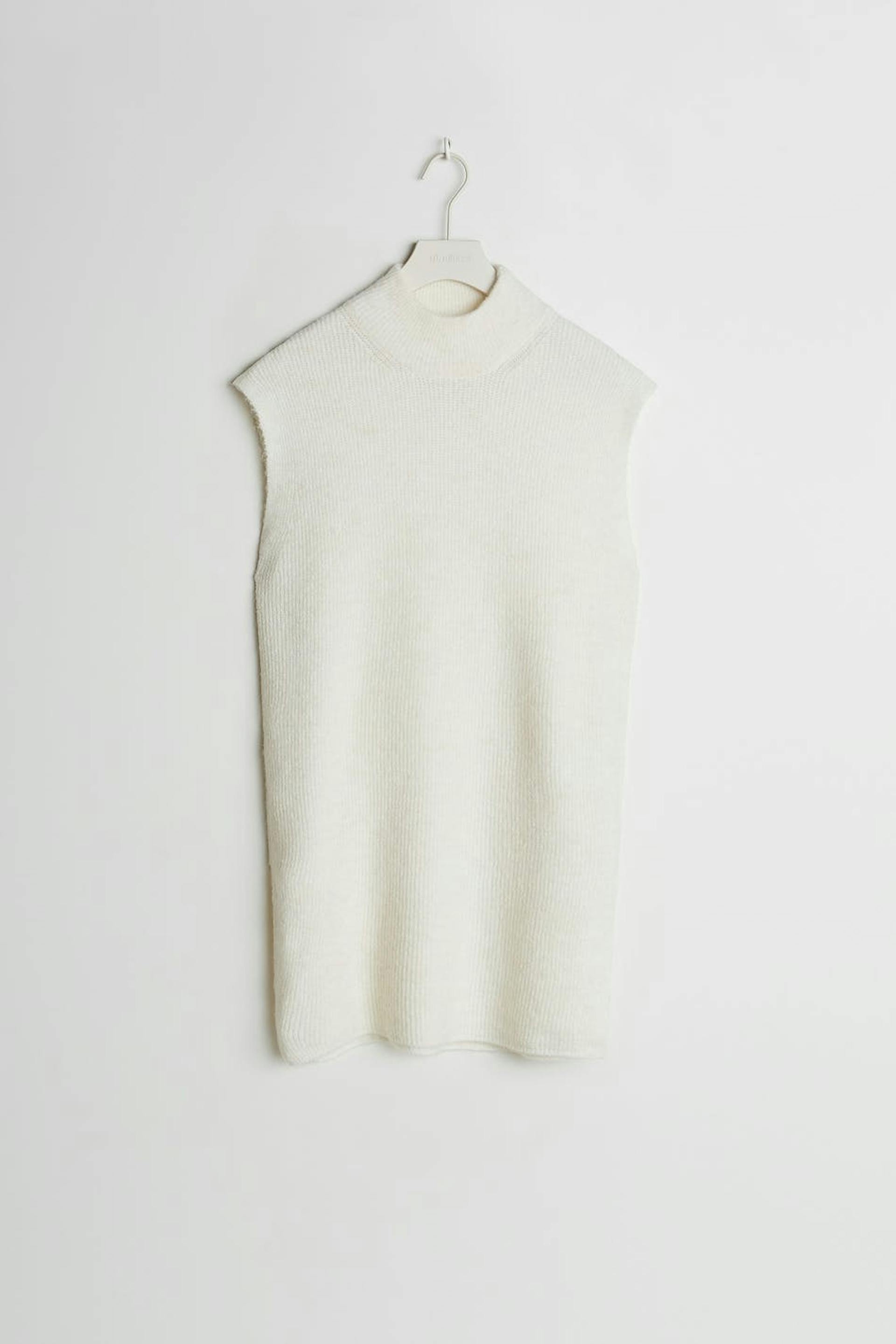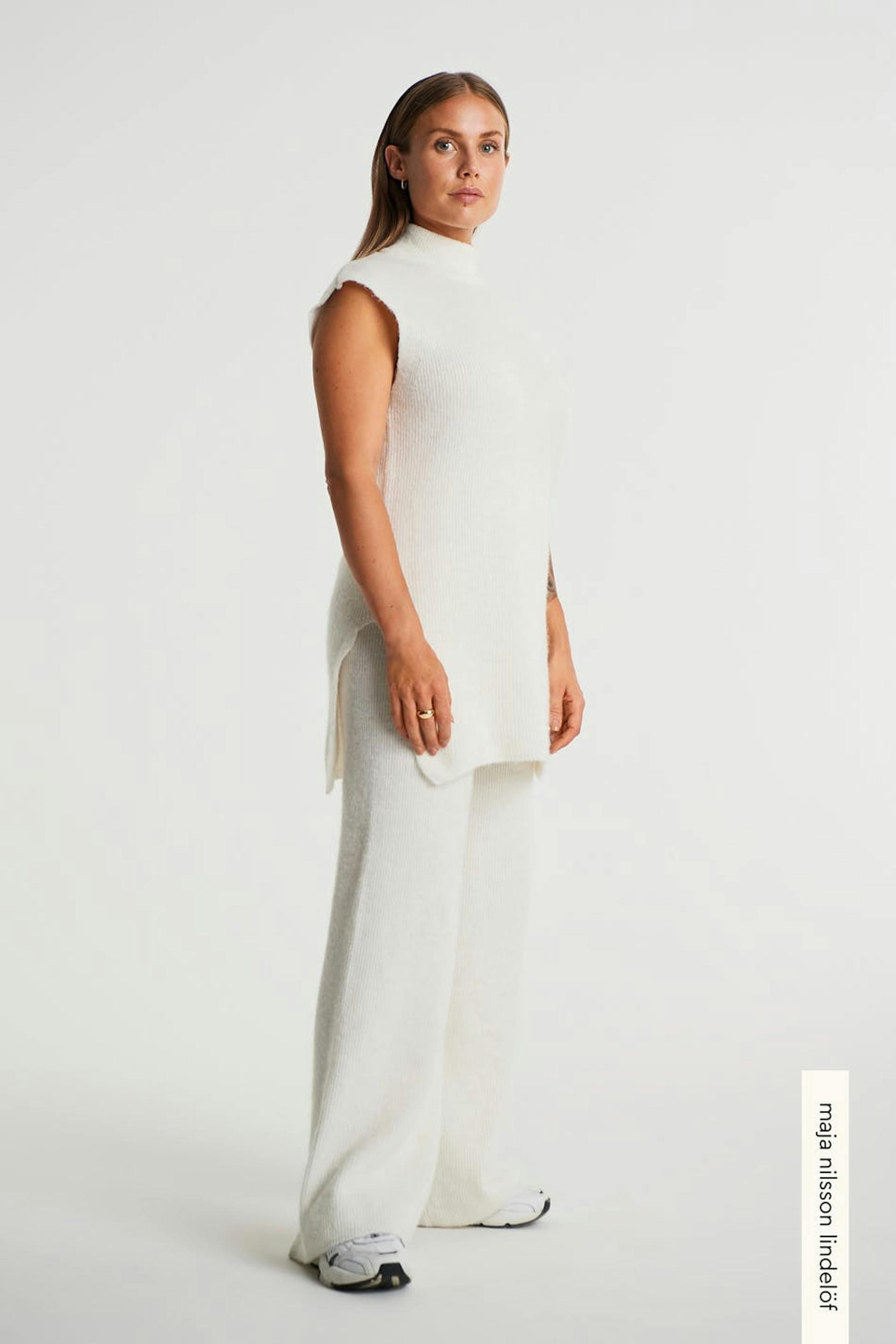 Maja X Gina tricot. Knitted vest with slit on the sides. The top is white, oversize and longer.
