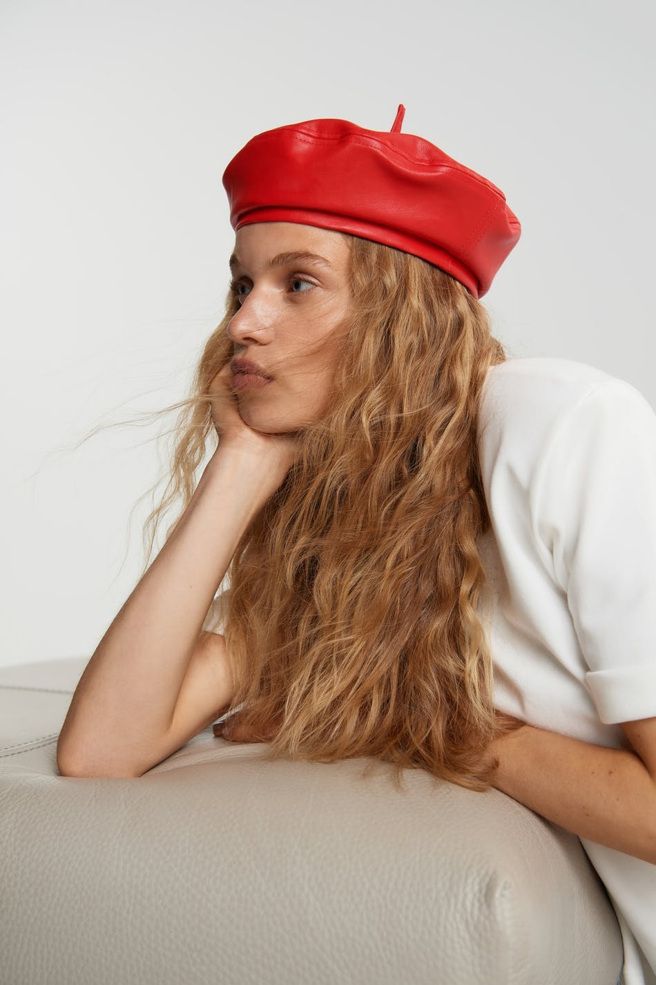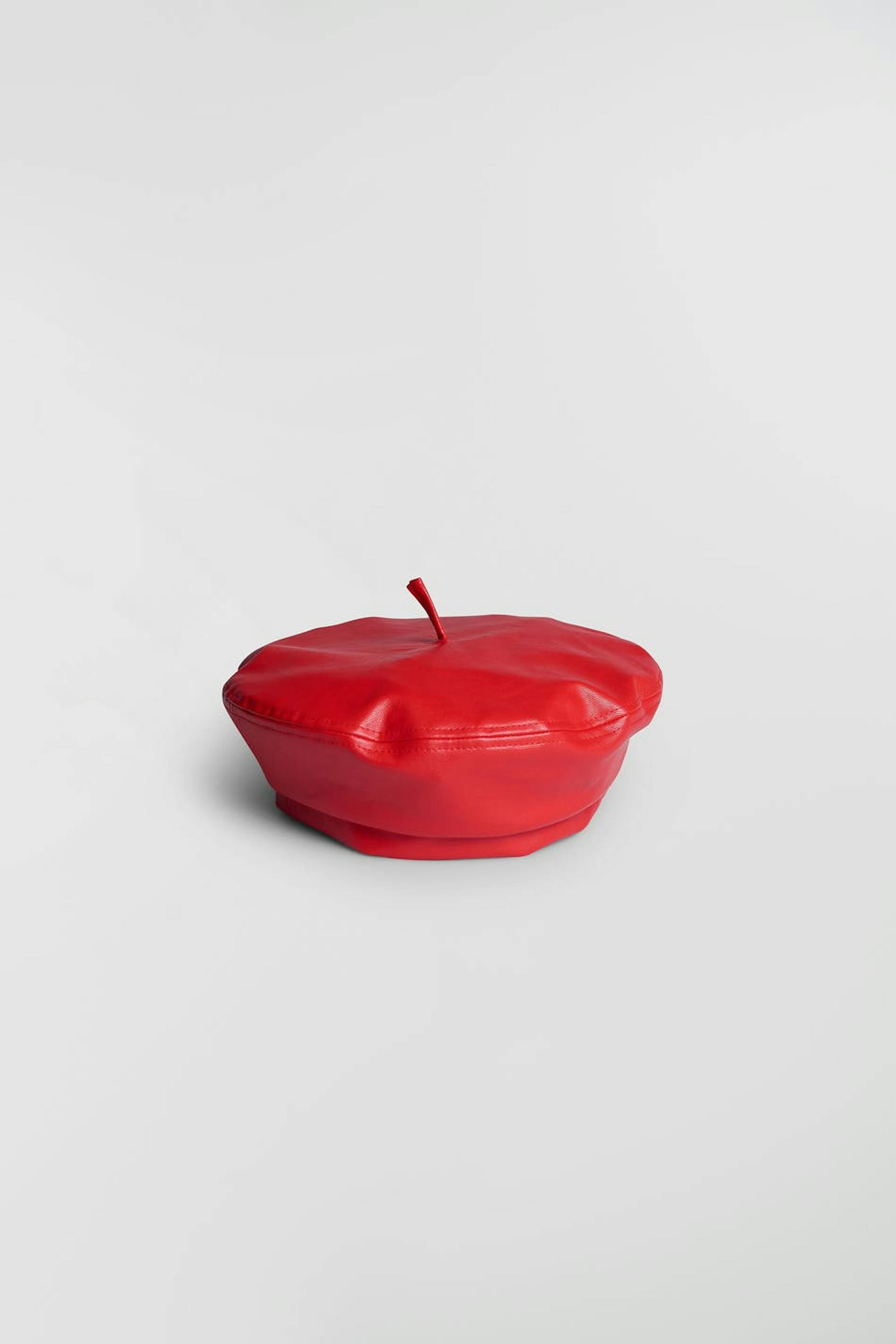 Designed by Emili Sindlev.. Beret. The beret is red. It is made of PU.