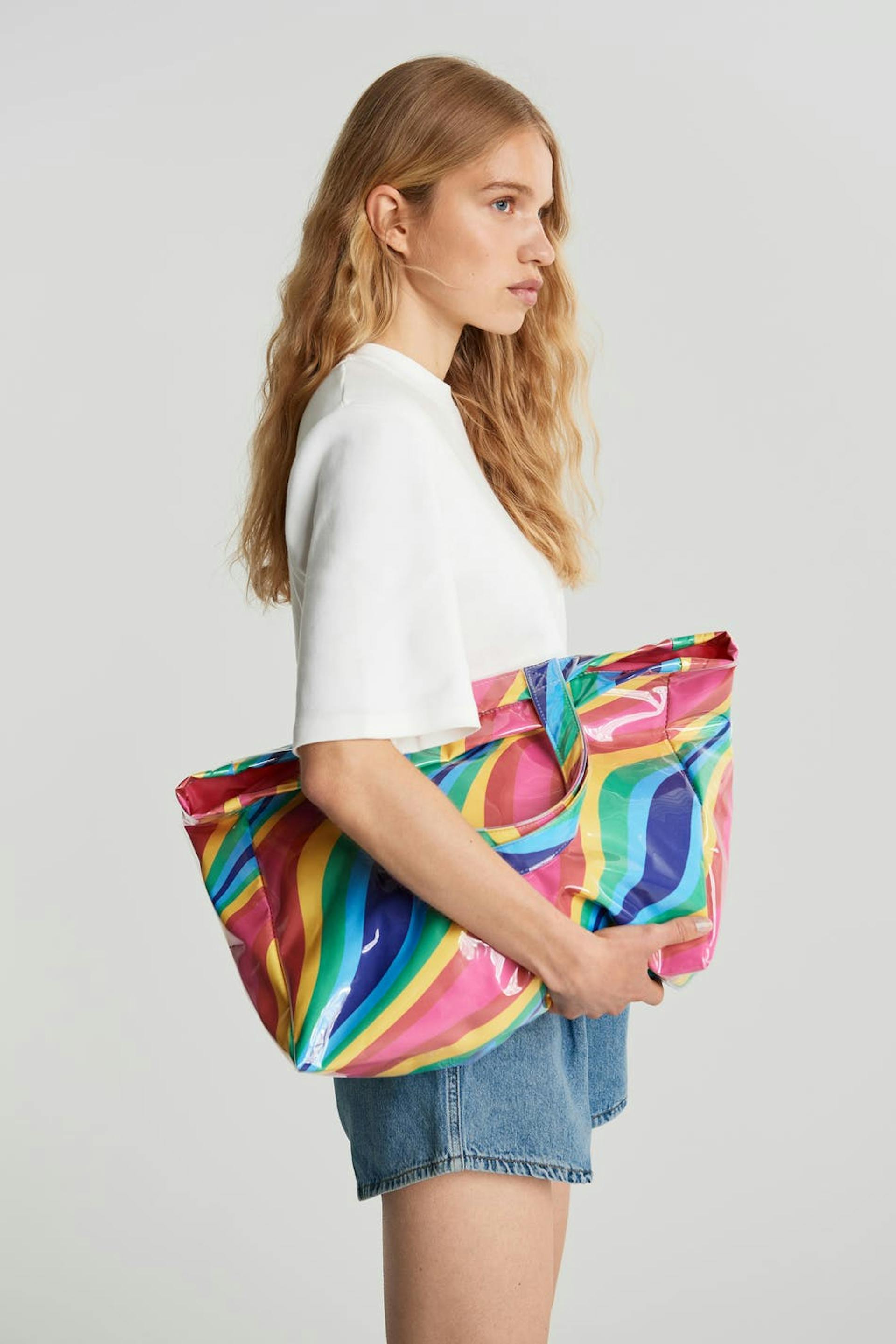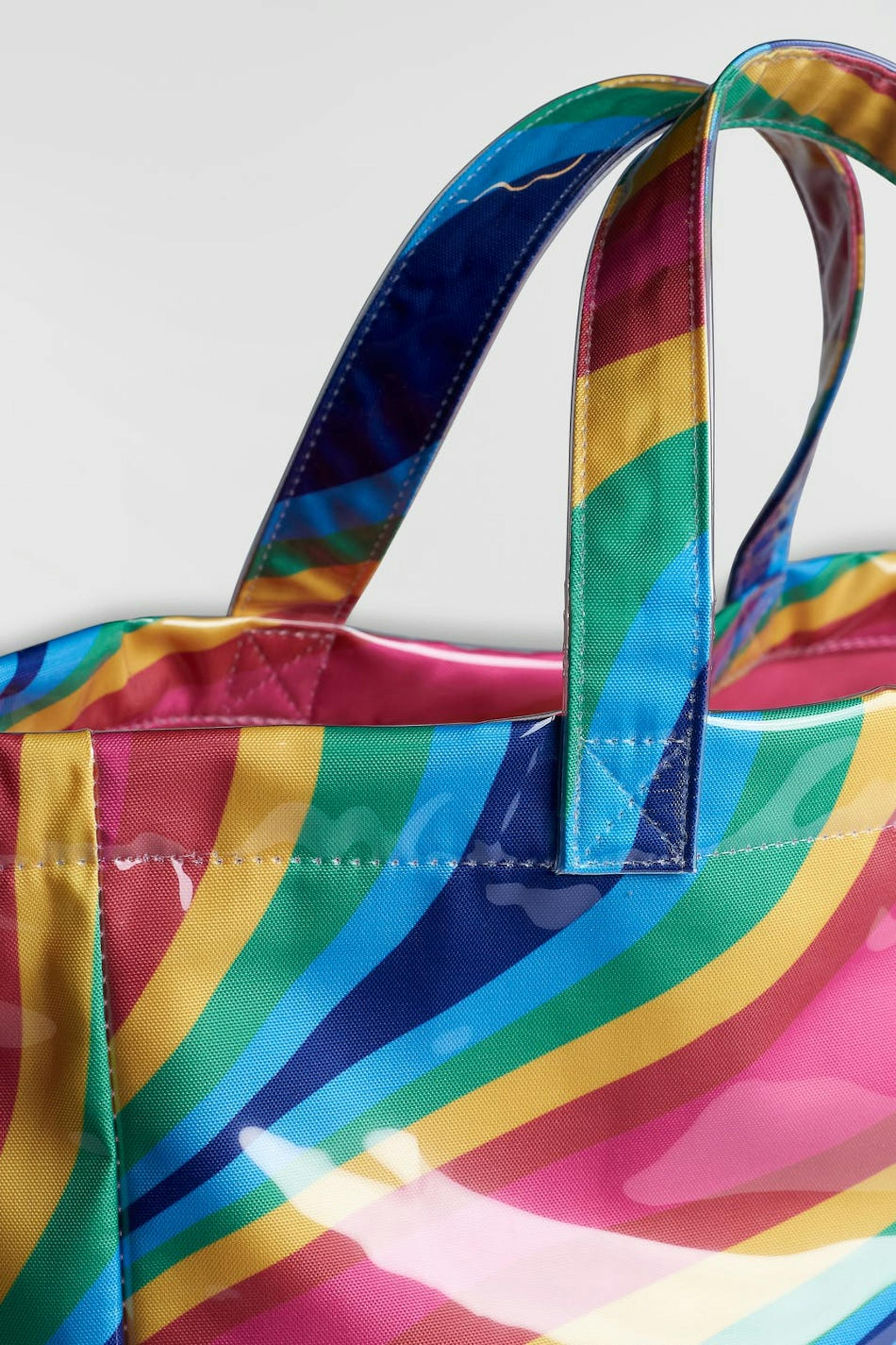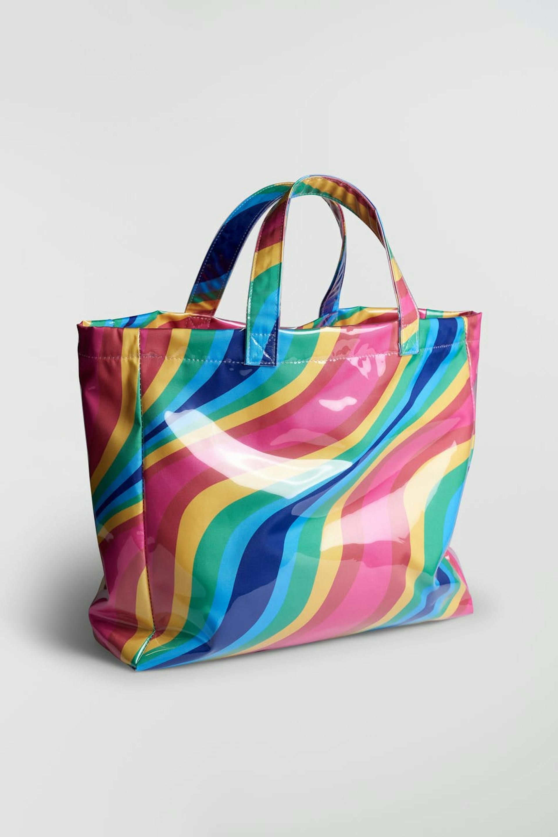 Designed by Emili Sindlev.. Bag with a colourful pattern with a blue, pink, yellow, green colour. The bag has a shopper design. It has short shoulder straps.