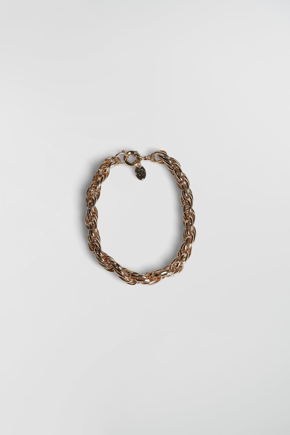 Designed by Emili Sindlev.. Anklet with a twisted, chunky chain design. The ornament is gold coloured.
