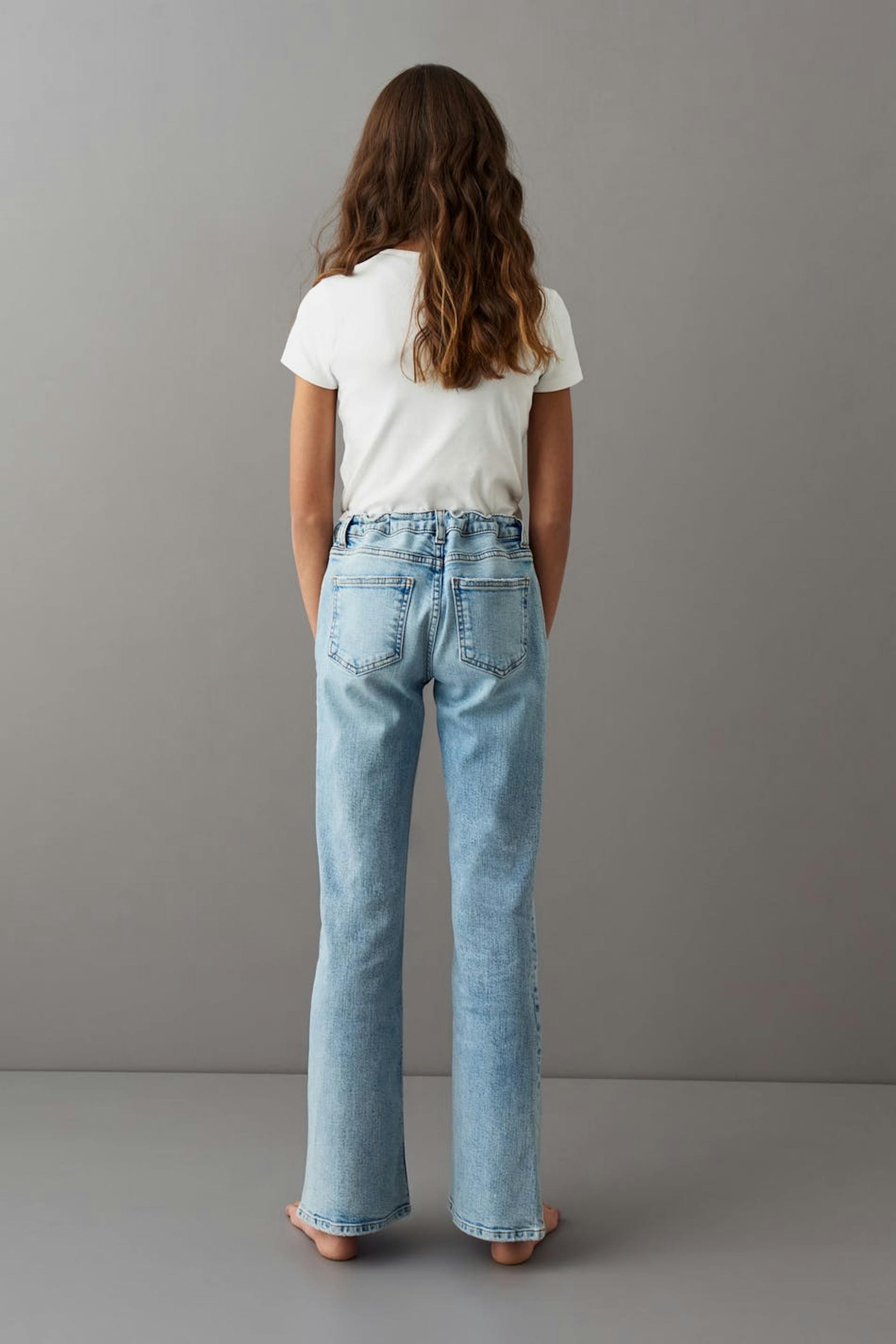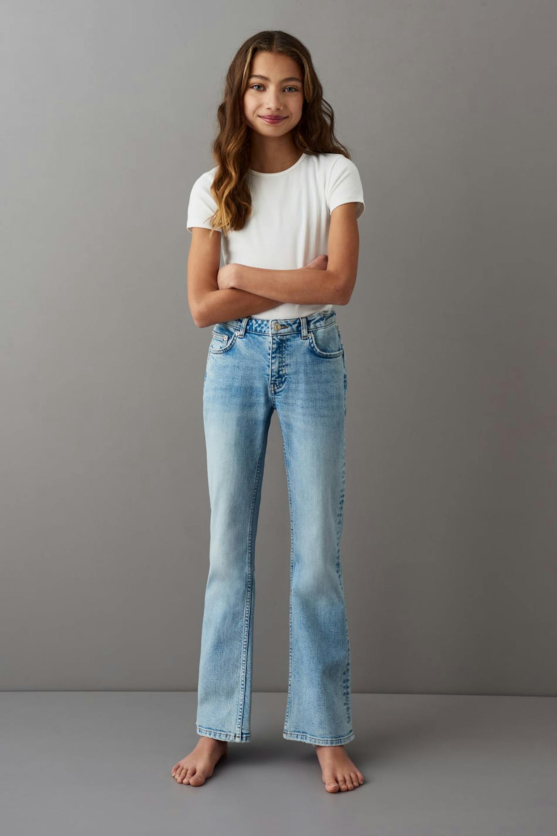 Jeans with a regular fit. The jeans are light-blue and blue.