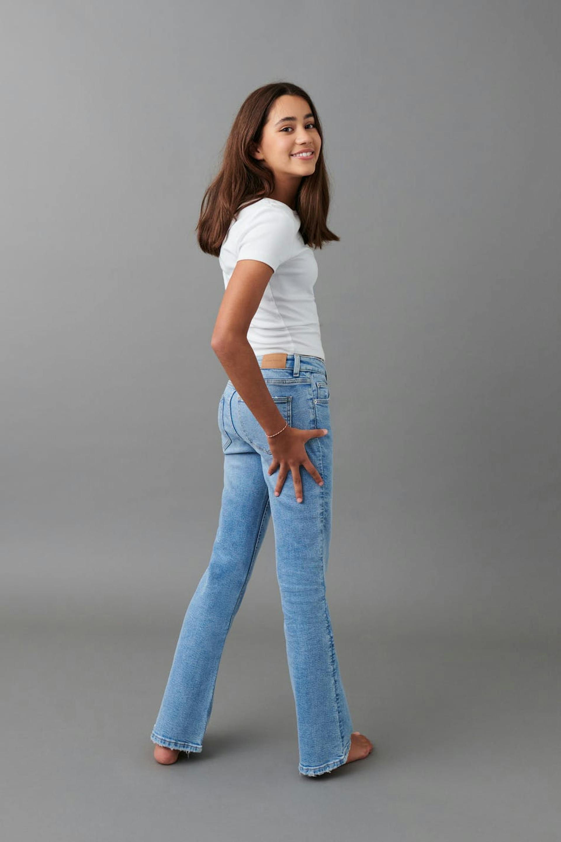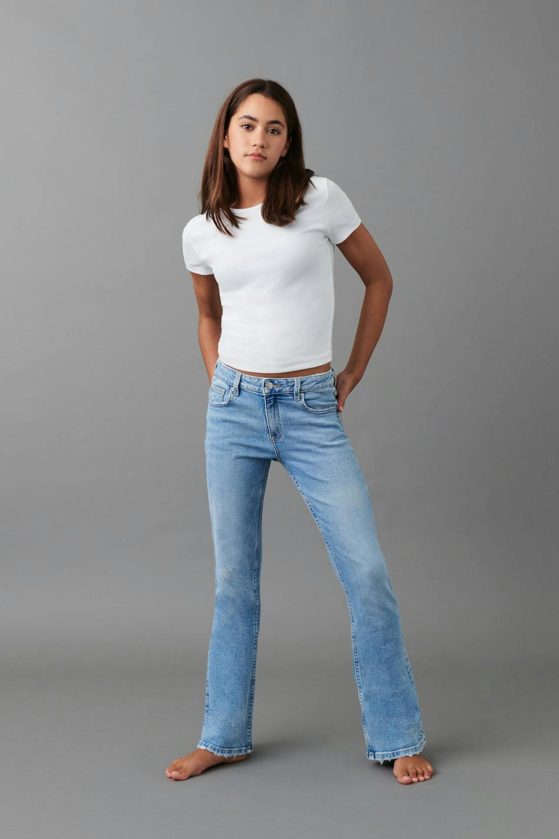 YOUNG GINA TRICOT Bootcut jeans tall with low waist in low stretch with authenitc denim look. Extra long length Adjustable elastic inside waist on all sizes. Supplier: TUSUKA TROUSERS LIMITED Production unit: TUSUKA TROUSERS LIMITED