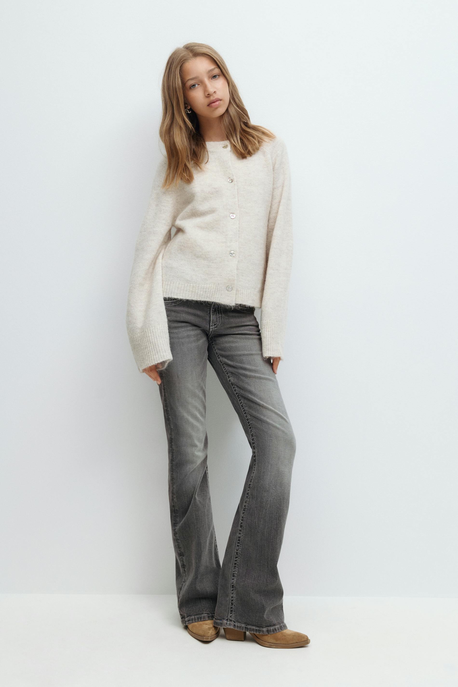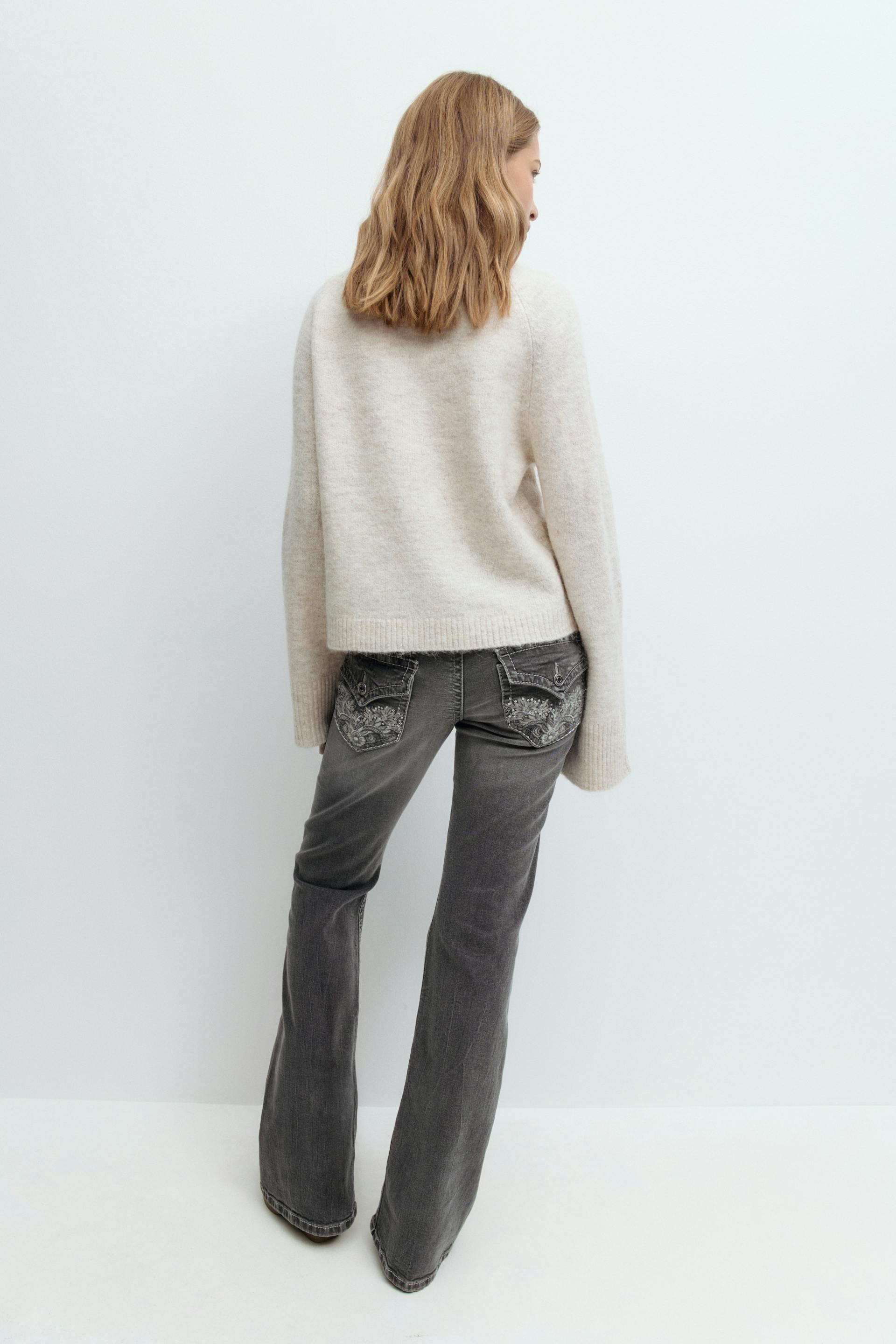 Decorated low flare jeans