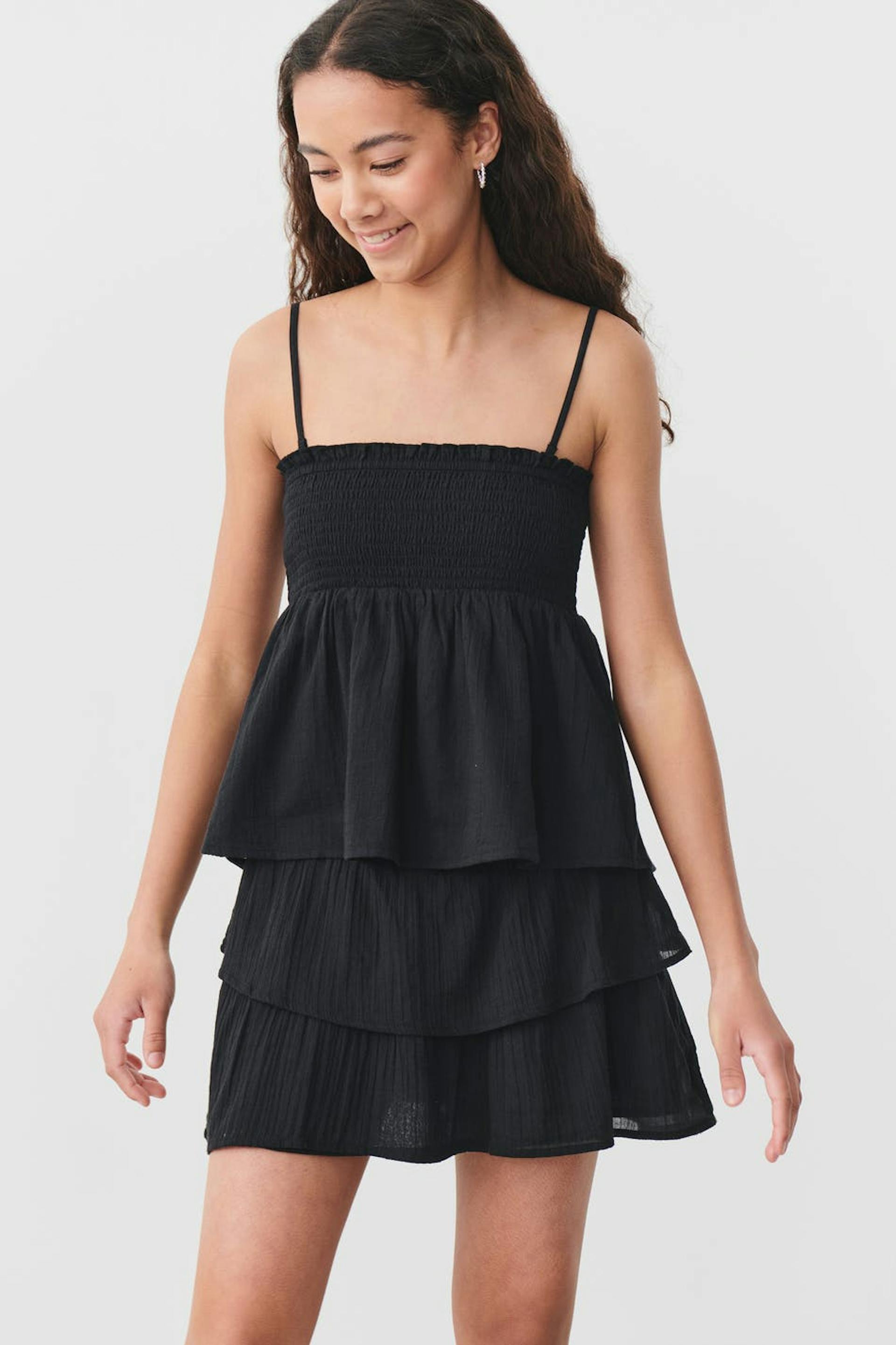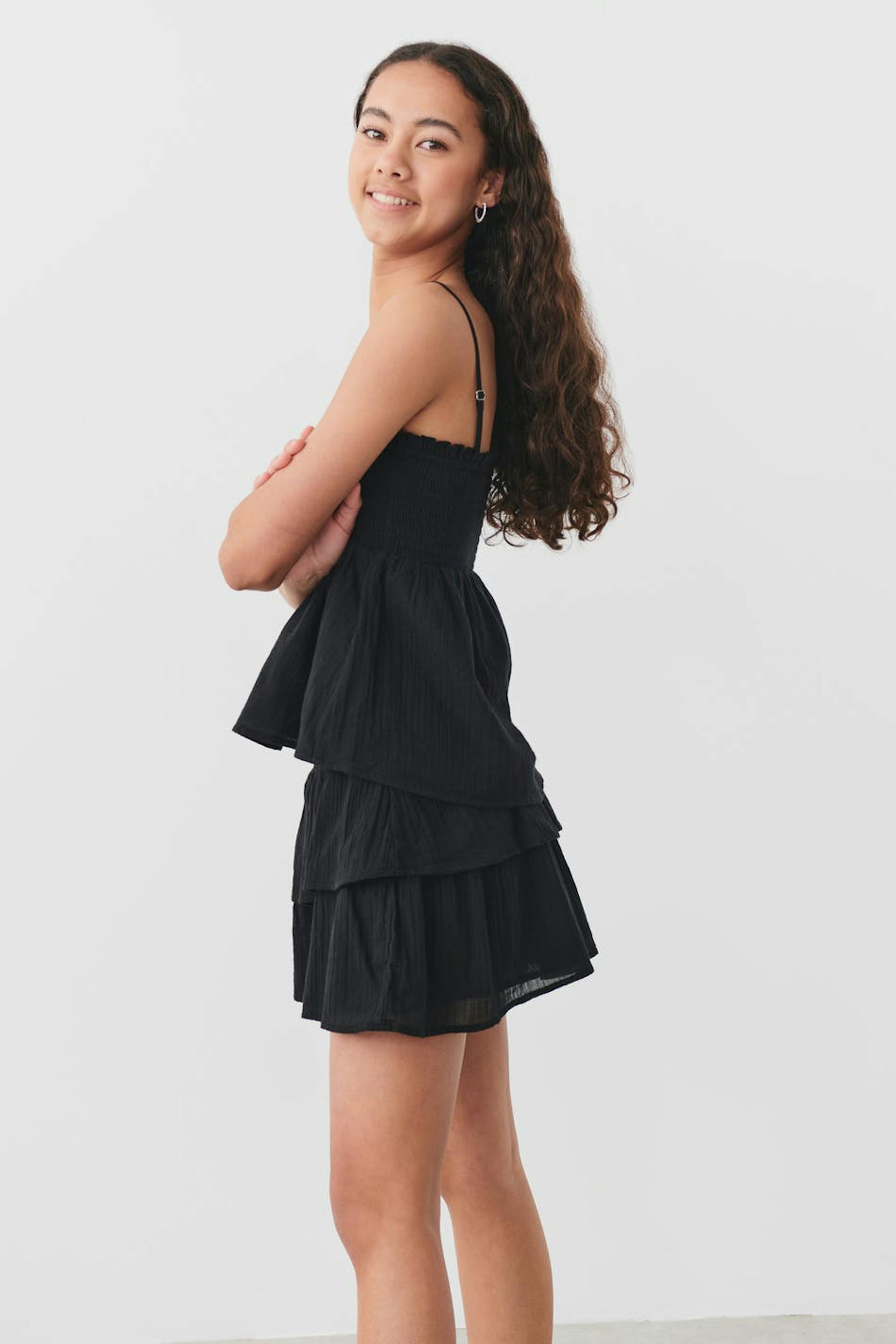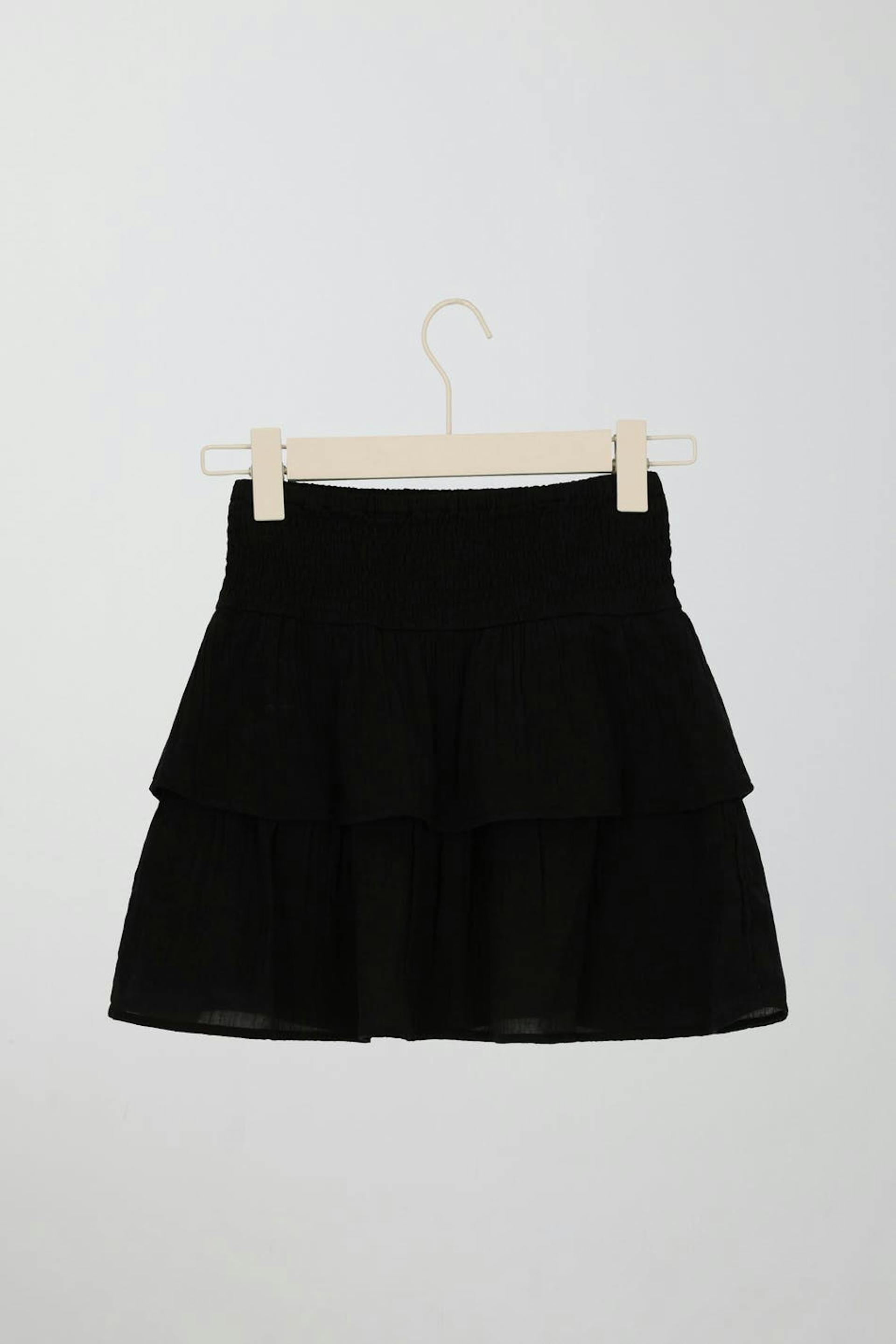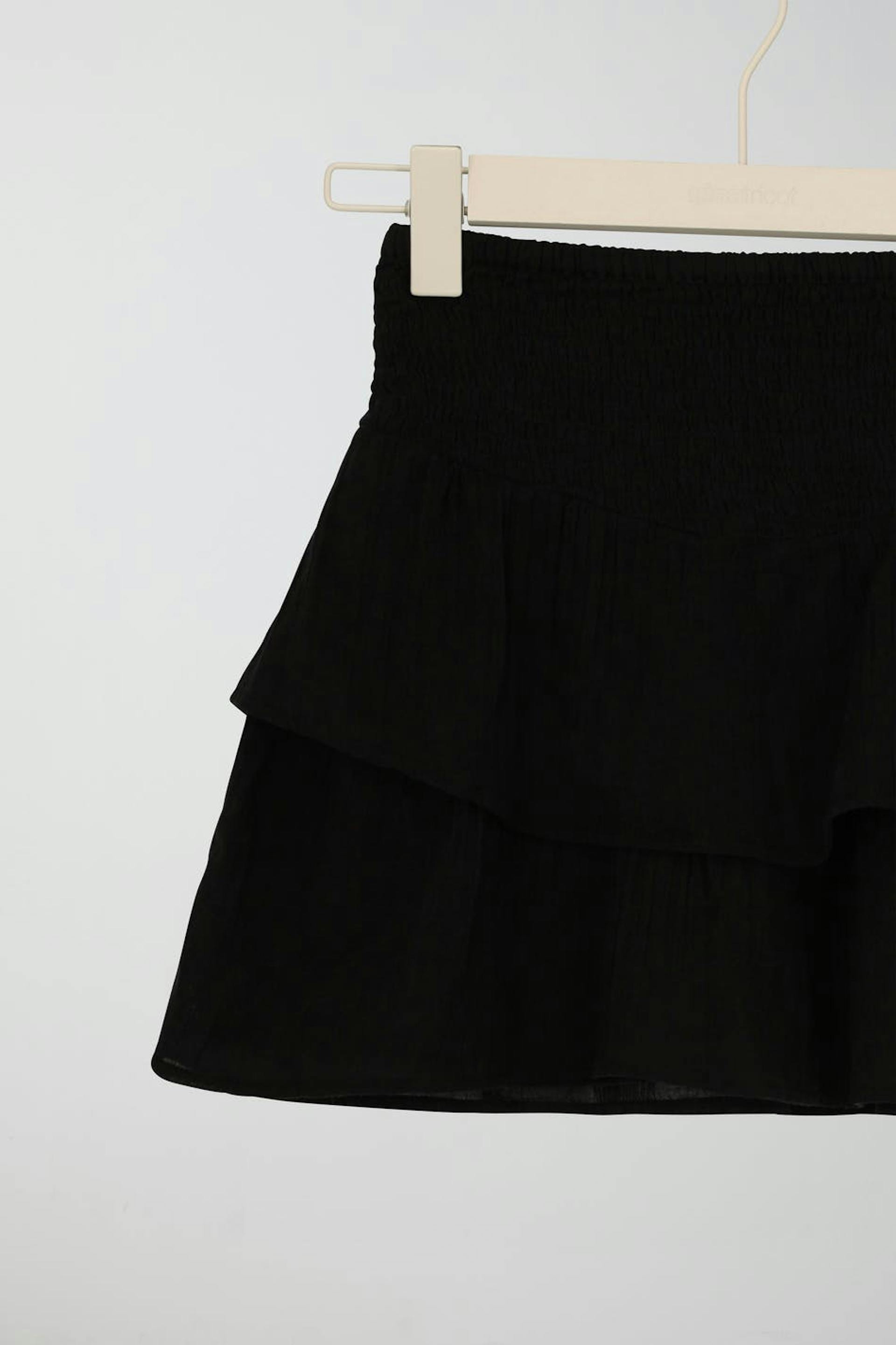 Short frill skirt by Gina Tricot Young with smocked waist. The skirt is black and has regular fit.