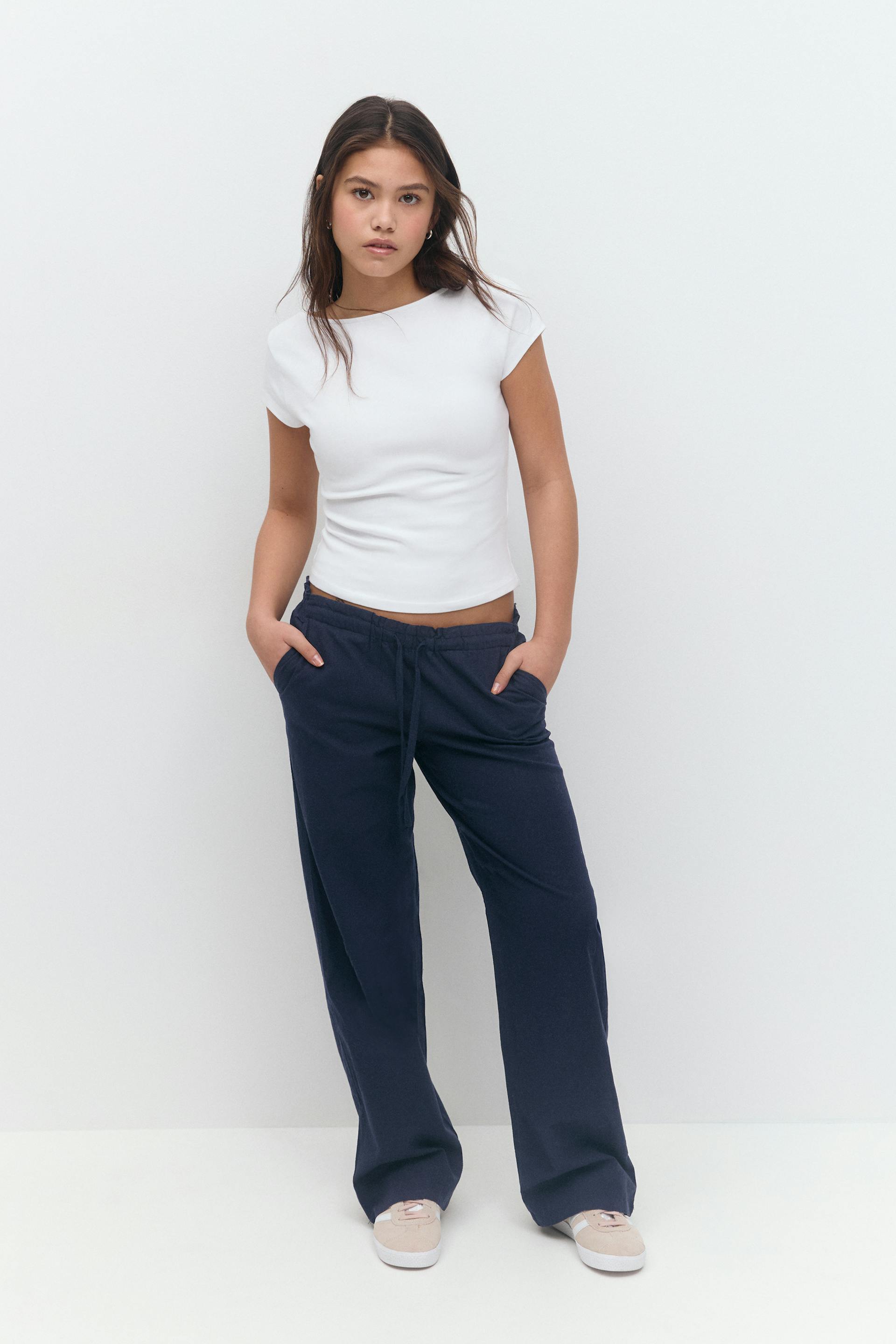 Y low linen blend trousers