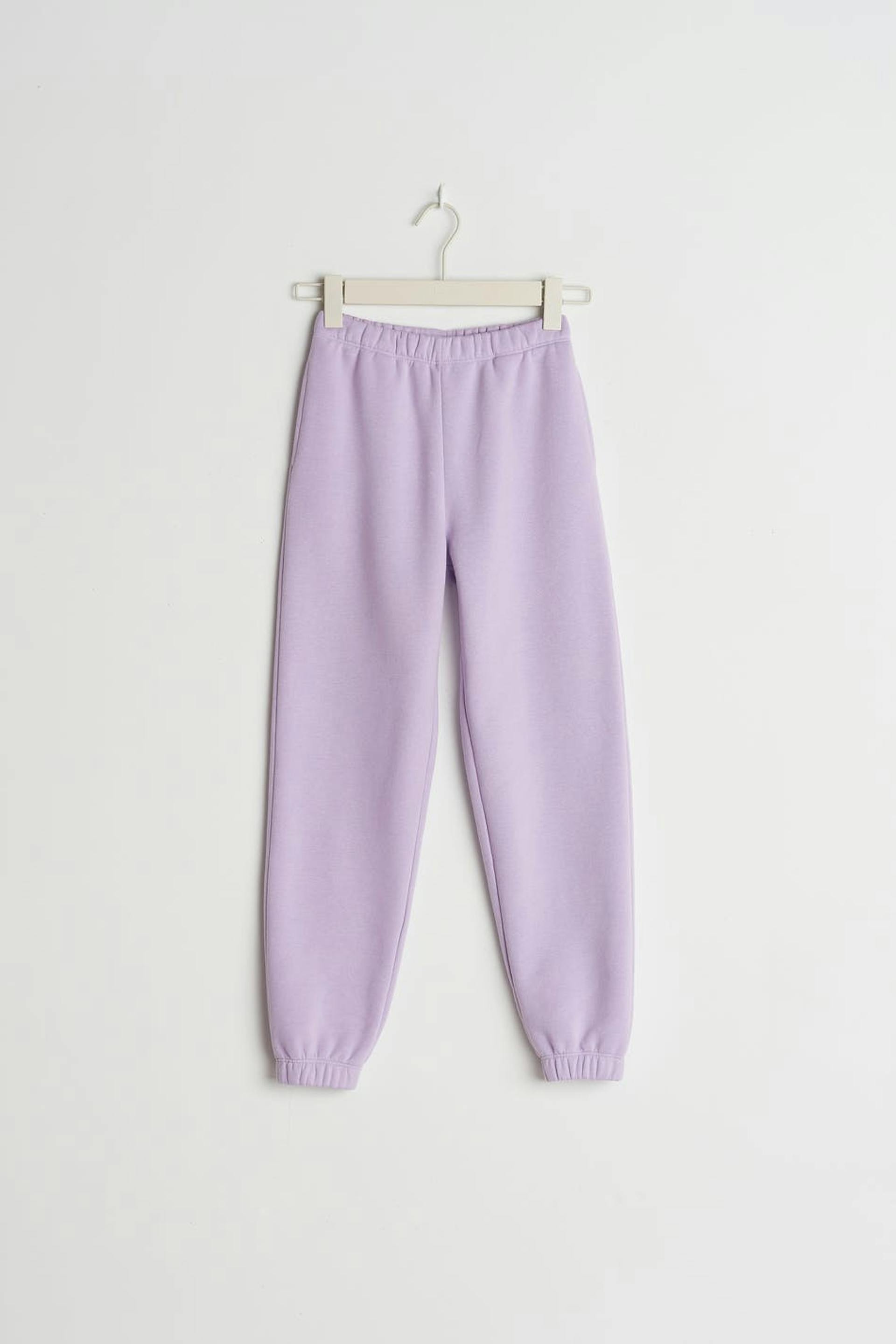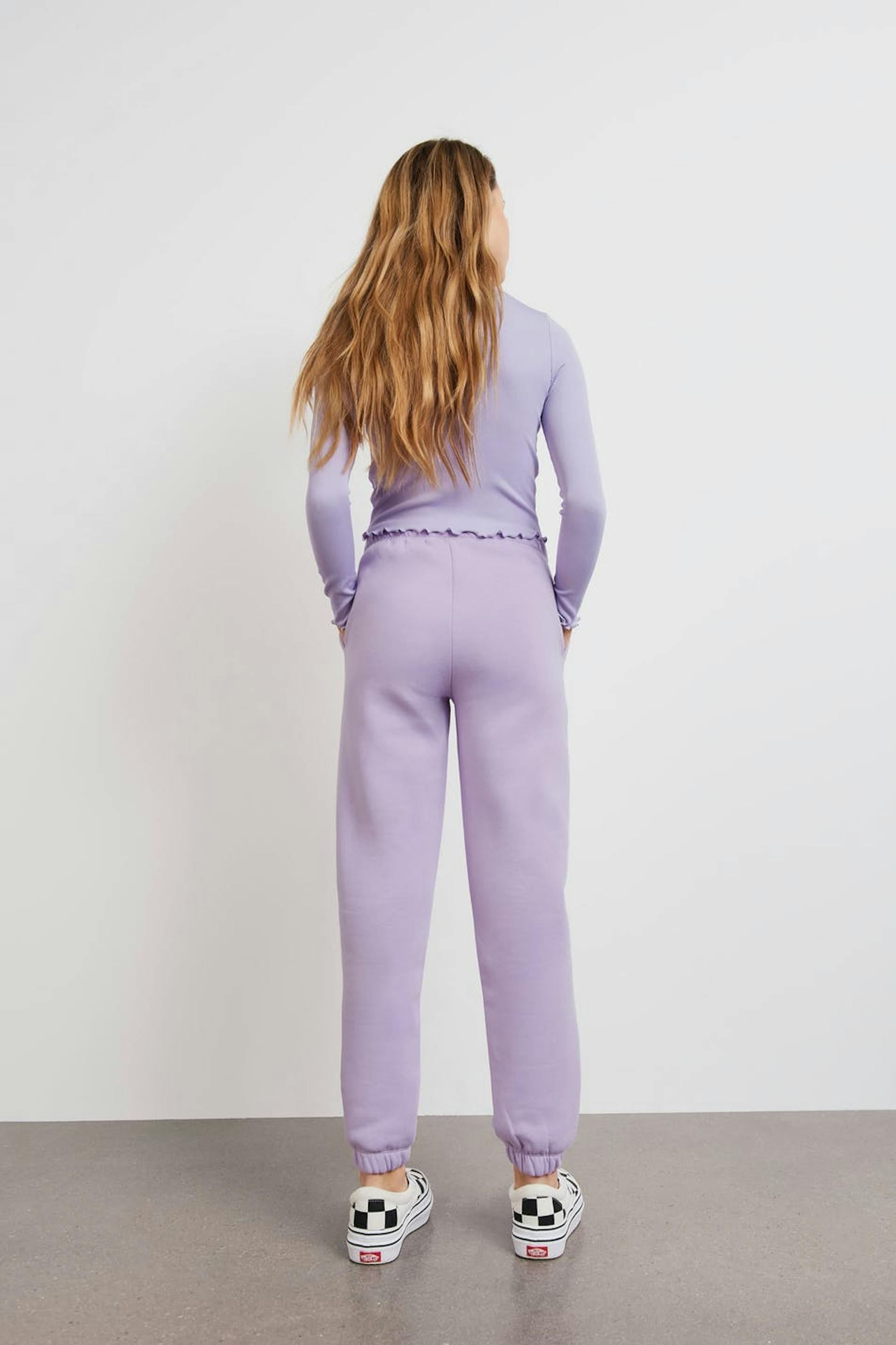 Tracksuit trousers by our Young assortment with a regular fit. The trousers are purple and have pockets on the sides. They have an elastic band at the waist and at the end of the legs.