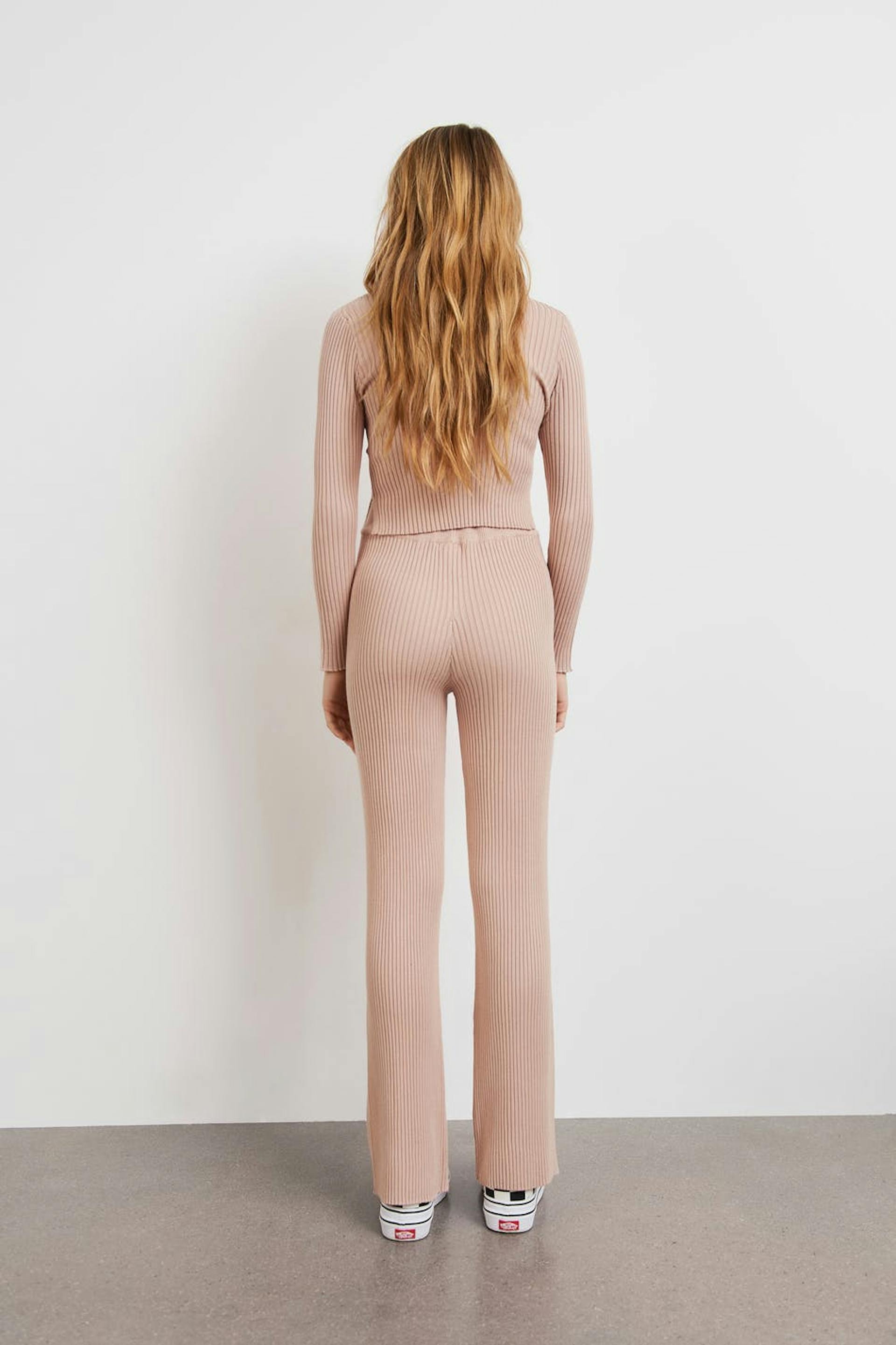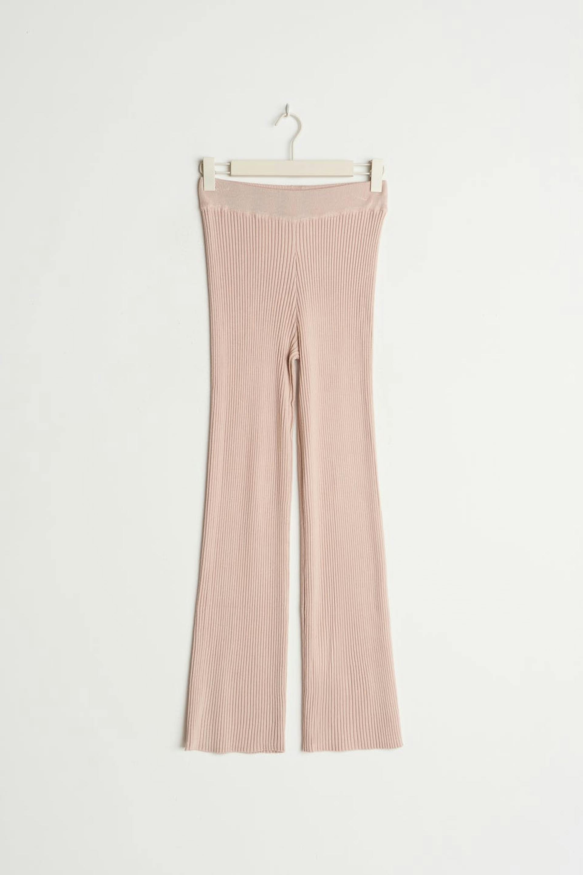 Soft knit trousers by our Young assortment with a regular fit. The trousers are pink and have a ribbed quality. They have an elastic at the waist.