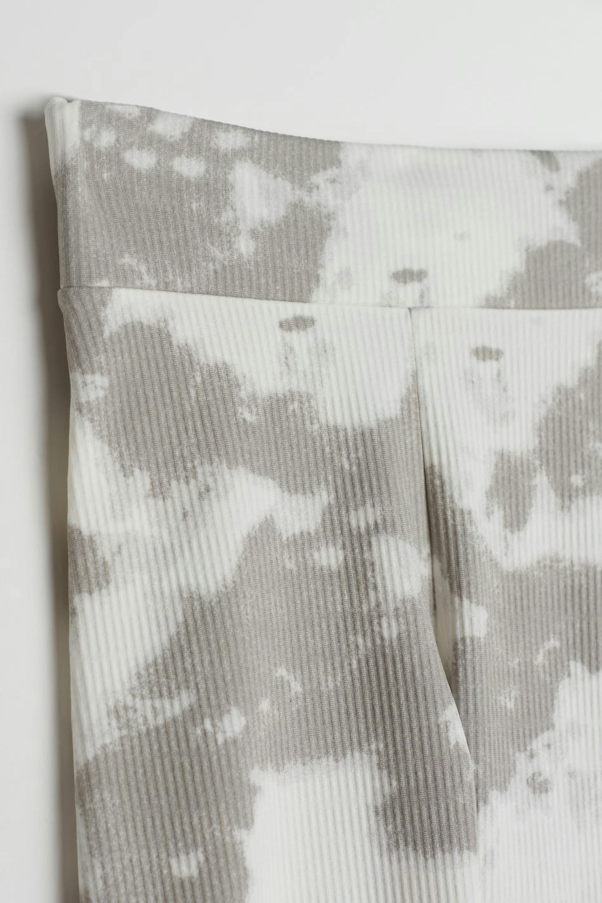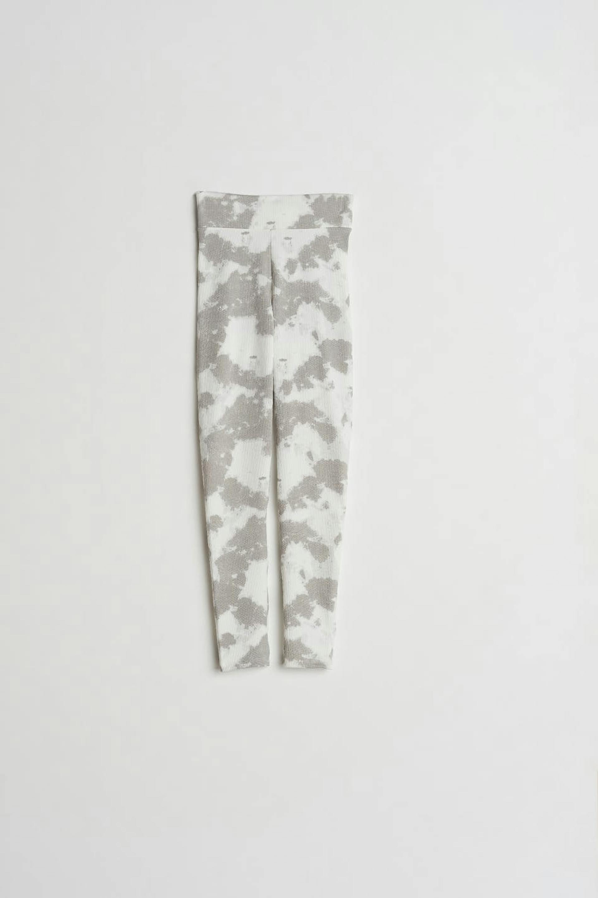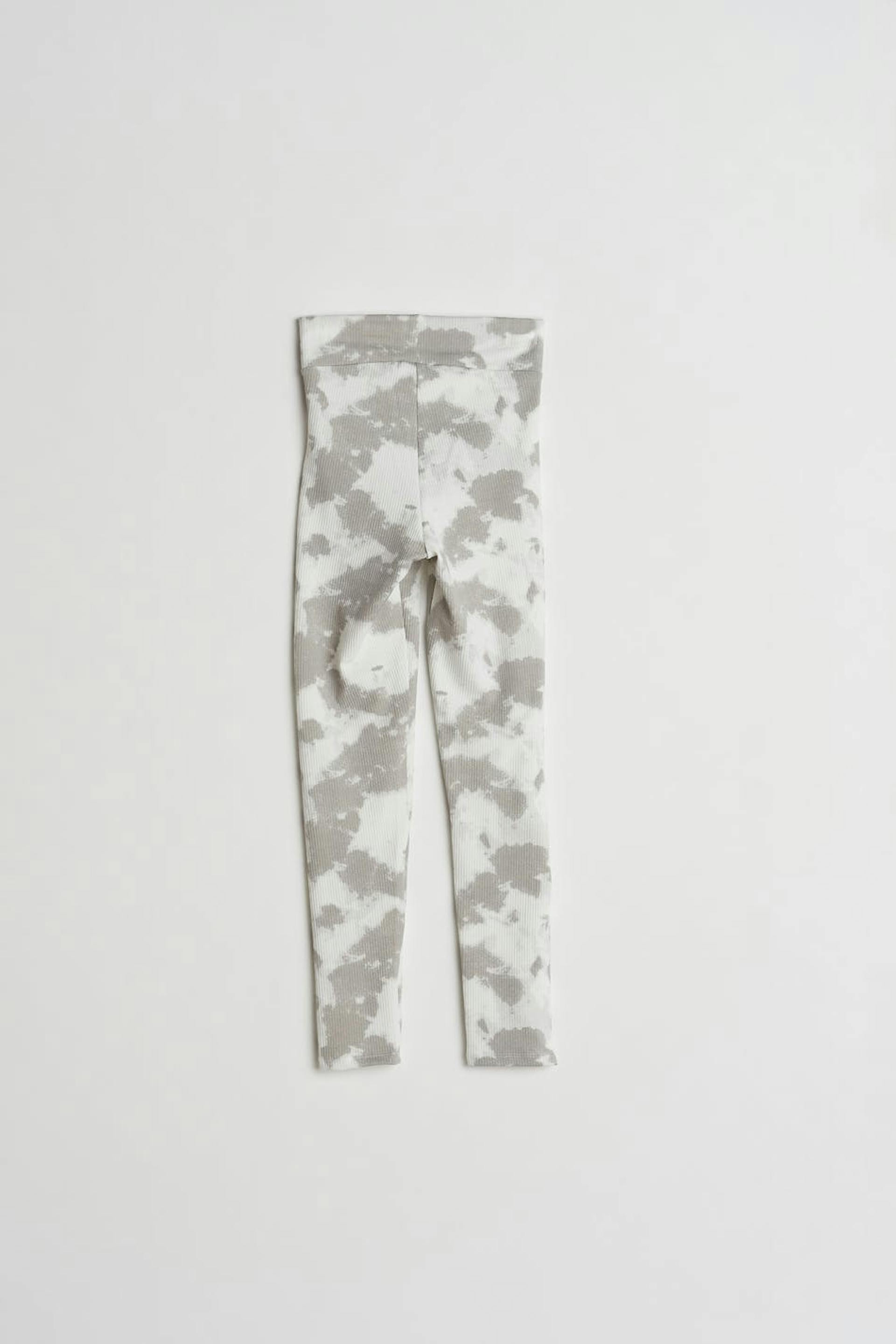 Stretchy leggings by our Young assortment with a fitted fit. The leggings are grey and ribbed and have an elastic band at the waist. They have trouser legs with a full length.