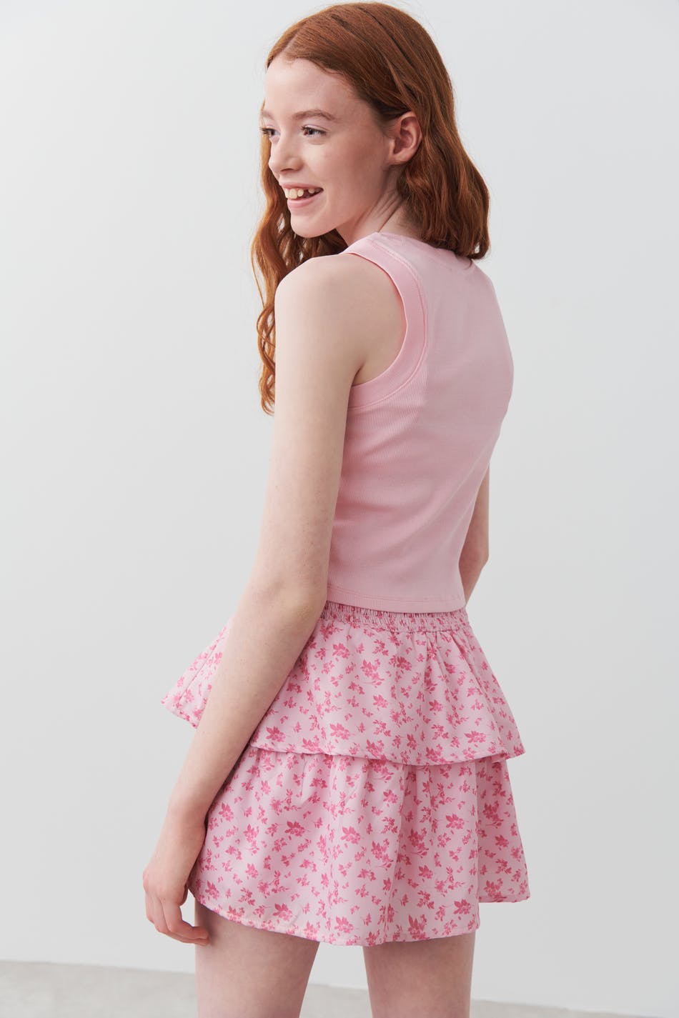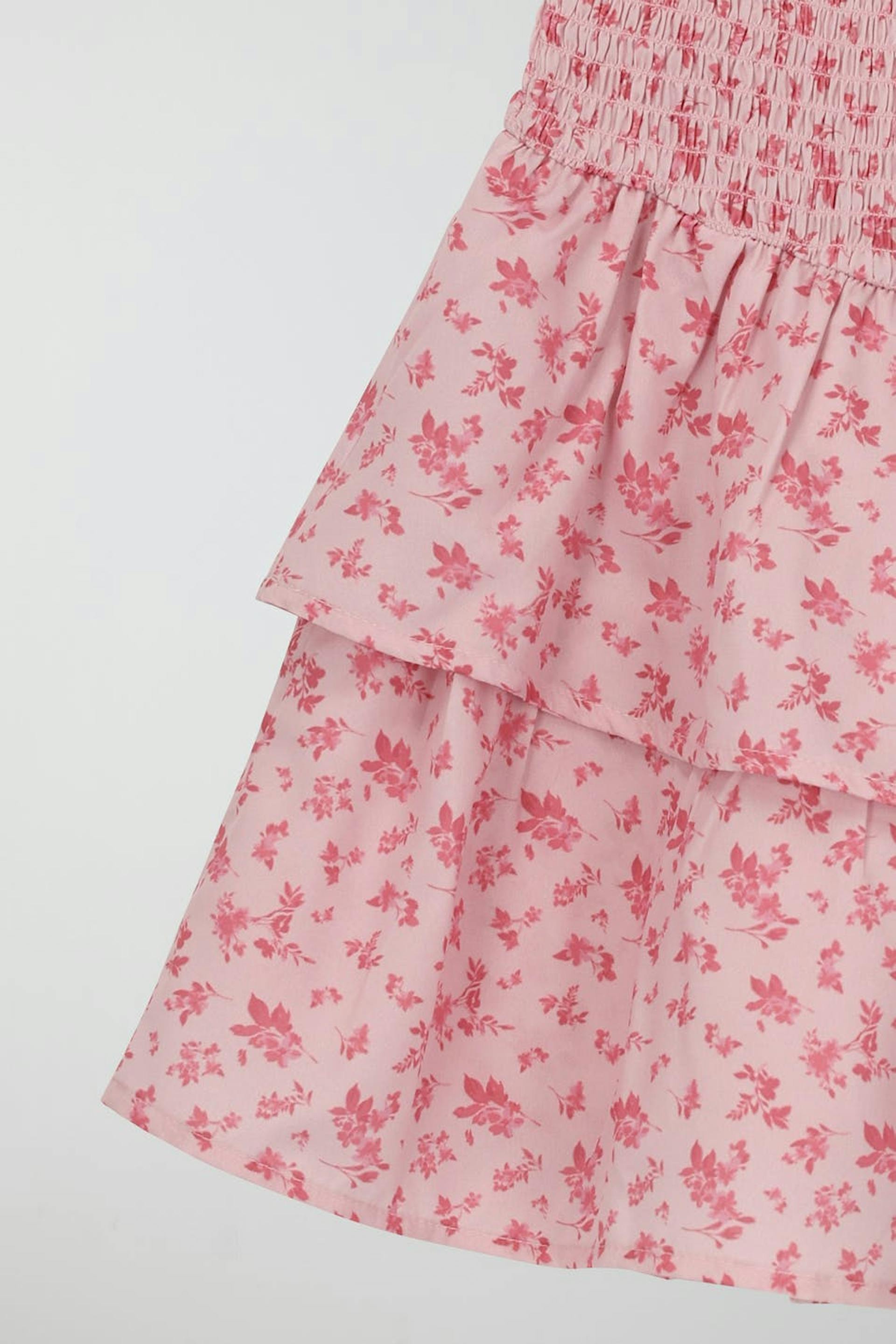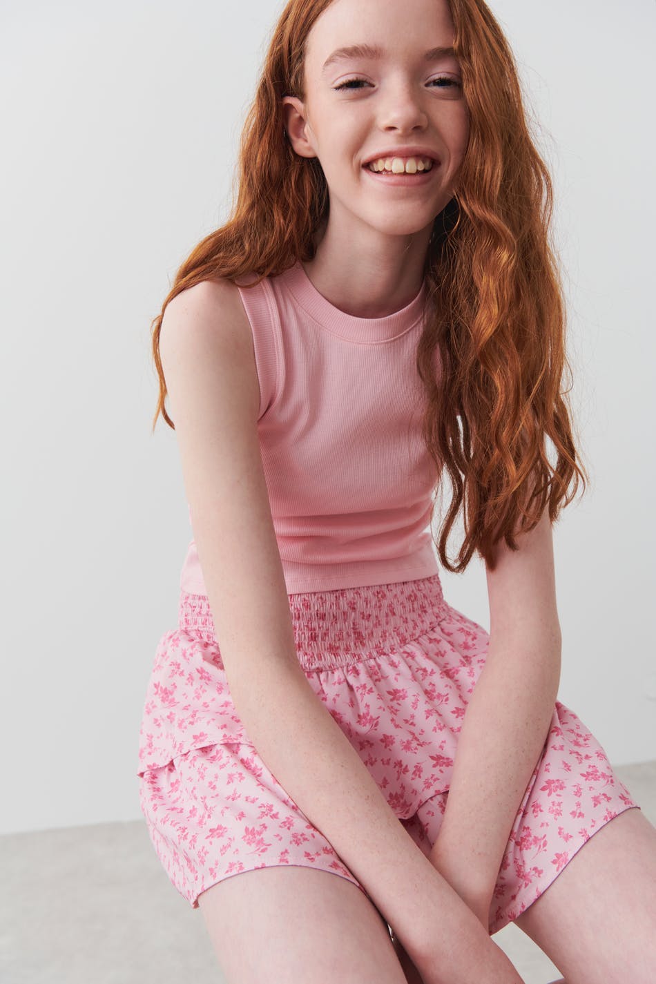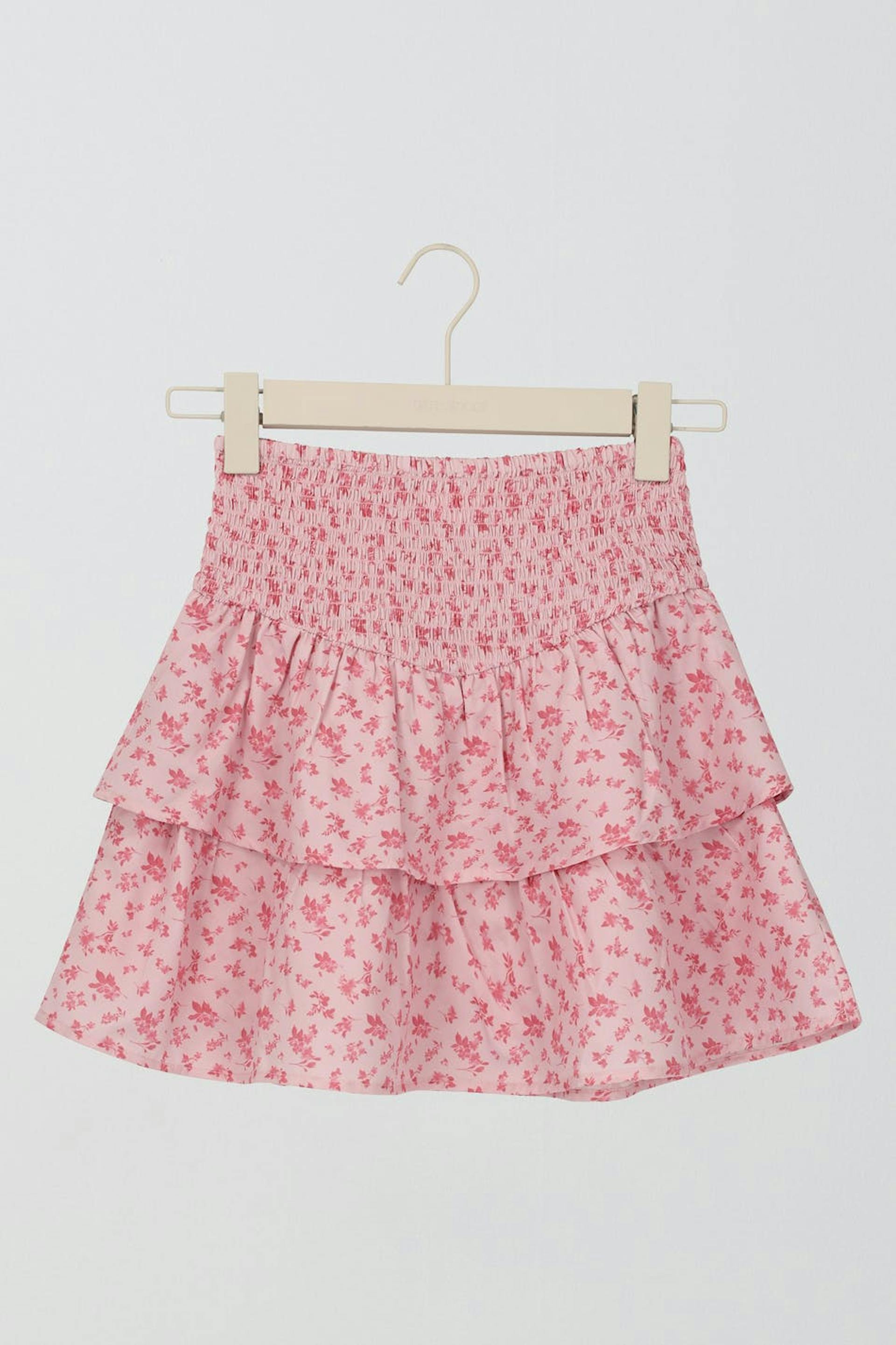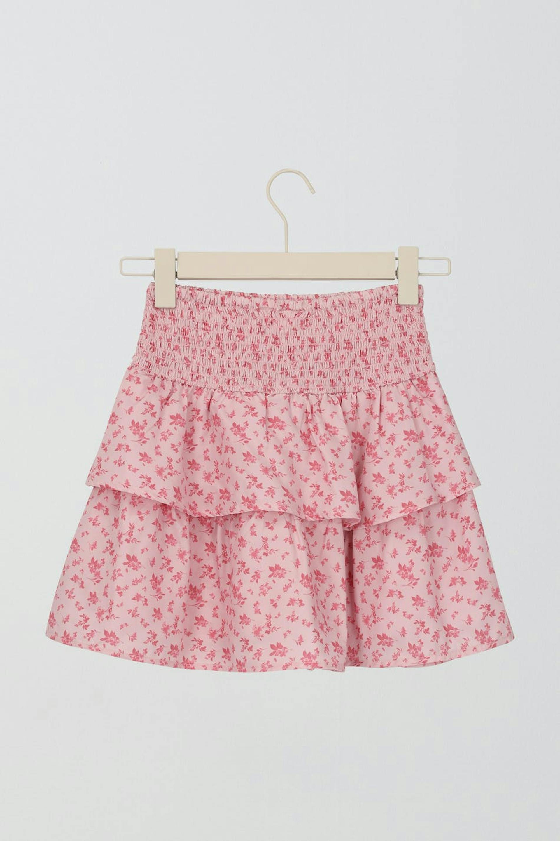 Floral frill skirt by Gina Tricot Young with smocking at the waist. The skirt is pink and short and has a woven quality.