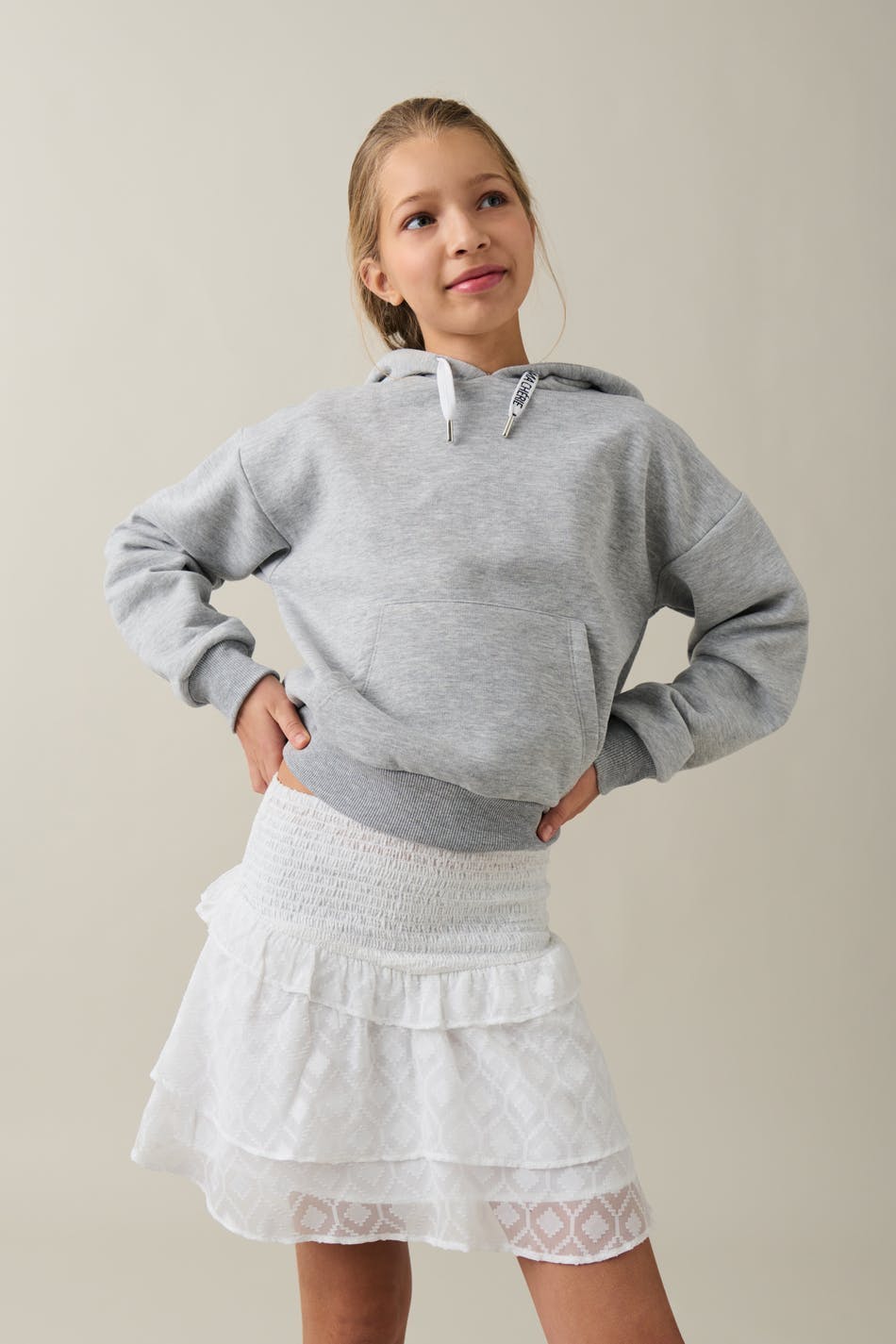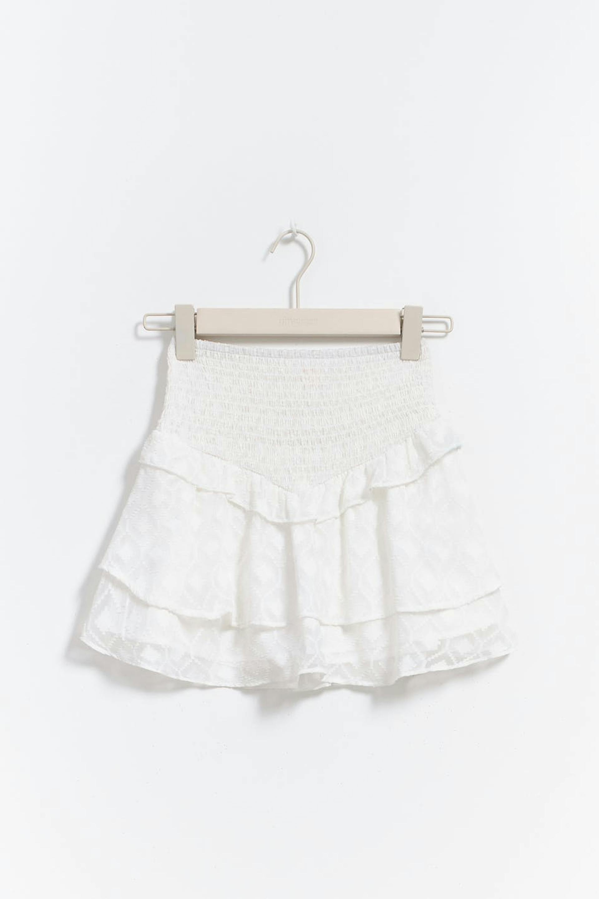 Short frill skirt with smocked waist. The skirt is white and has regular fit.