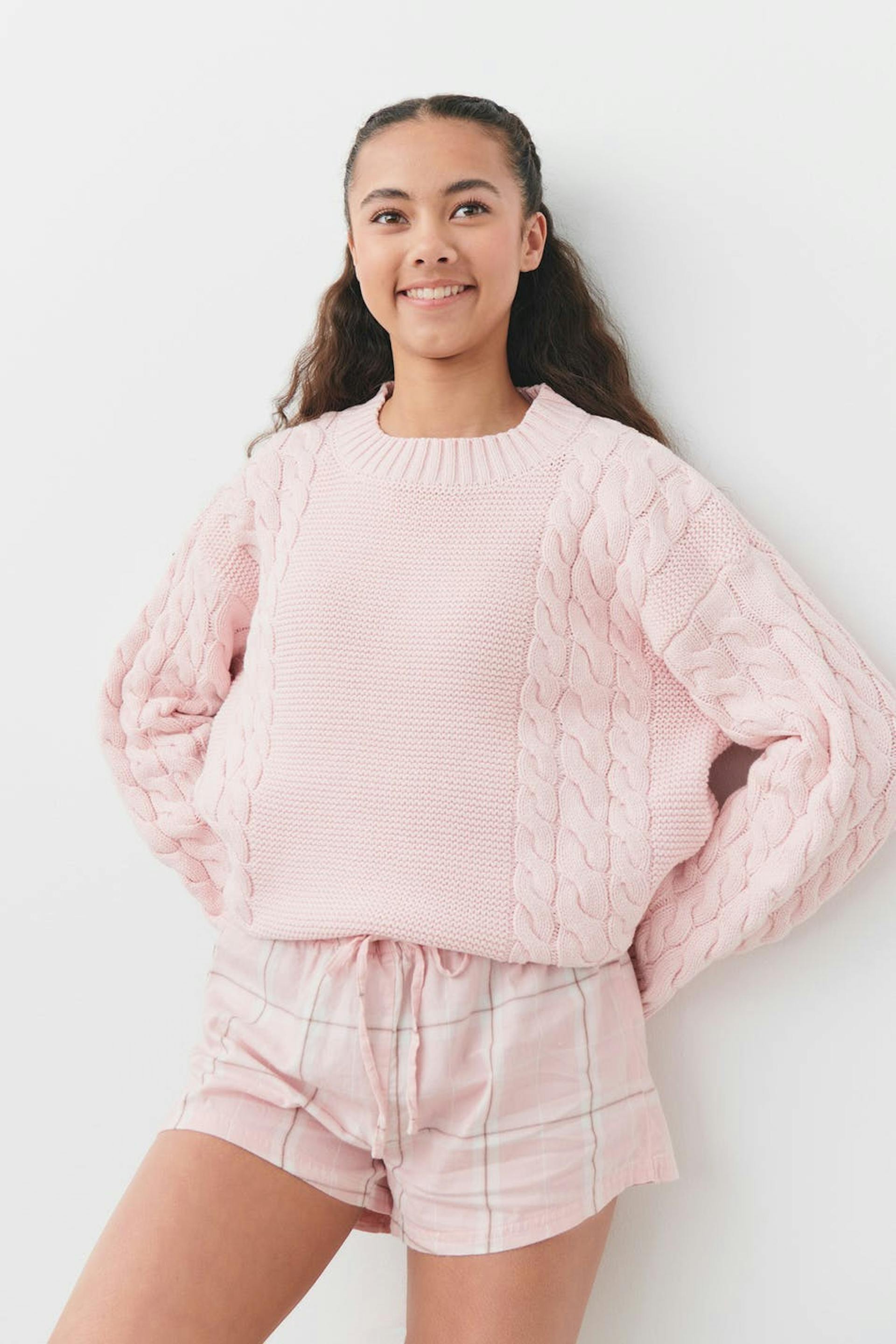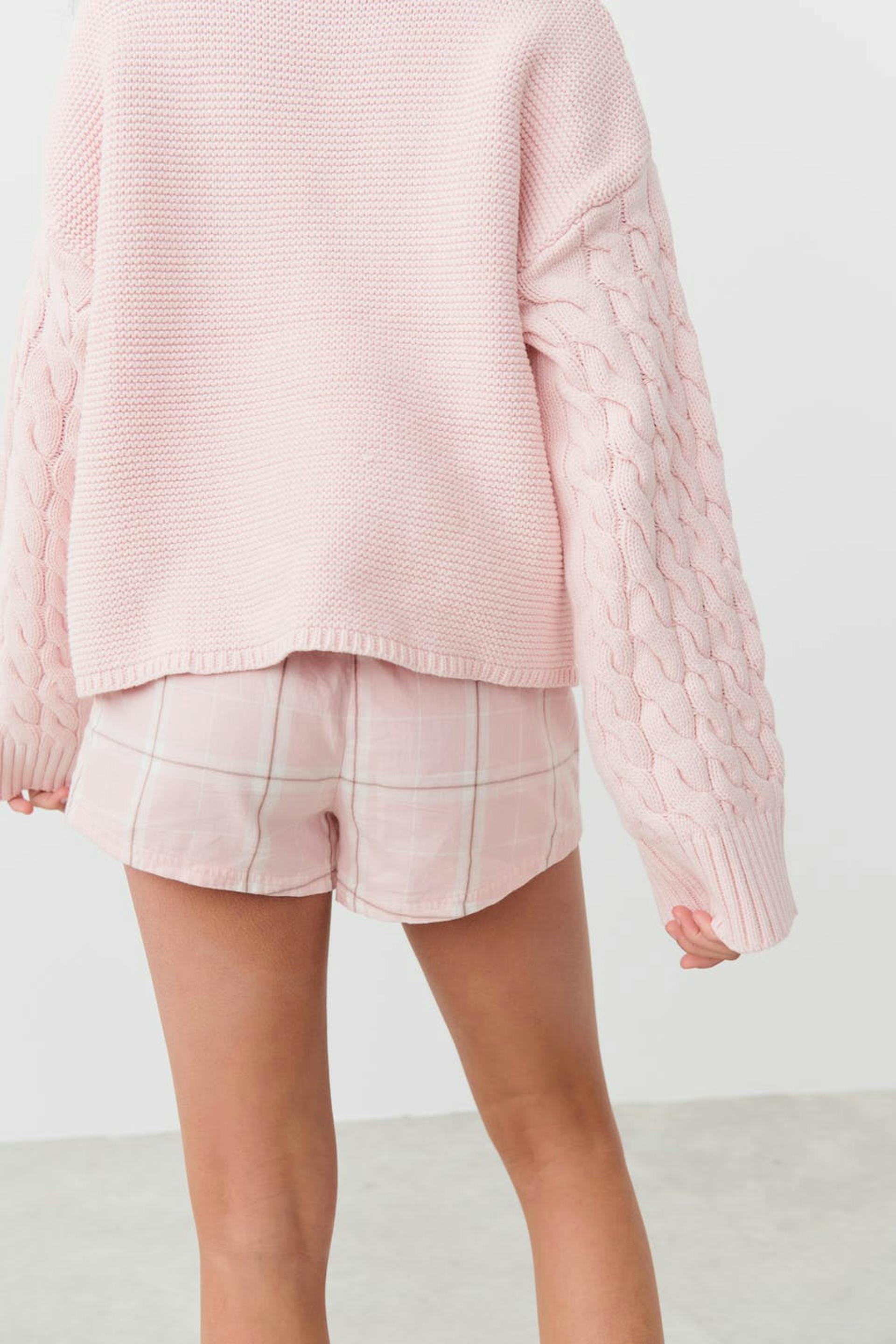 Checked pyjama shorts by Gina Tricot Young with elastic at the waist. The shorts are pink, white and short. They have regular fit and self-tie drawstring at the front.
