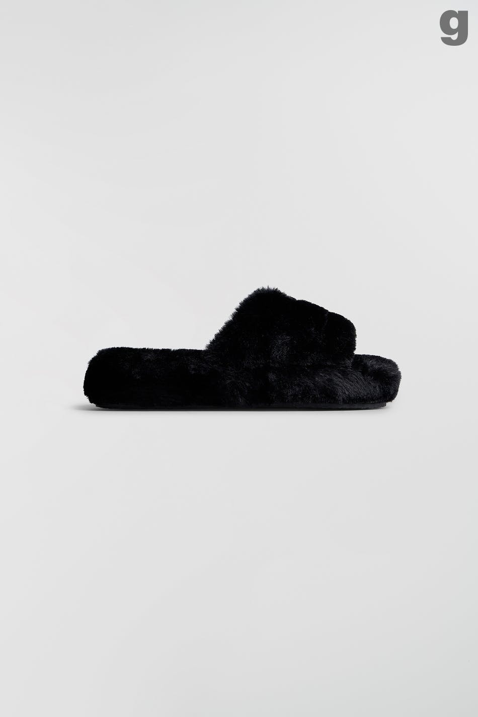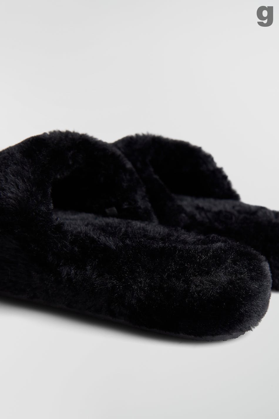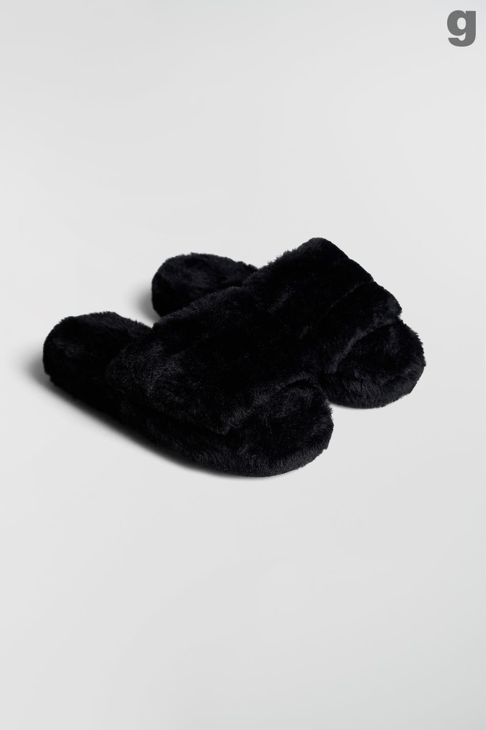Cosy slippers with faux fur. The slippers are black and have a slip in-design.