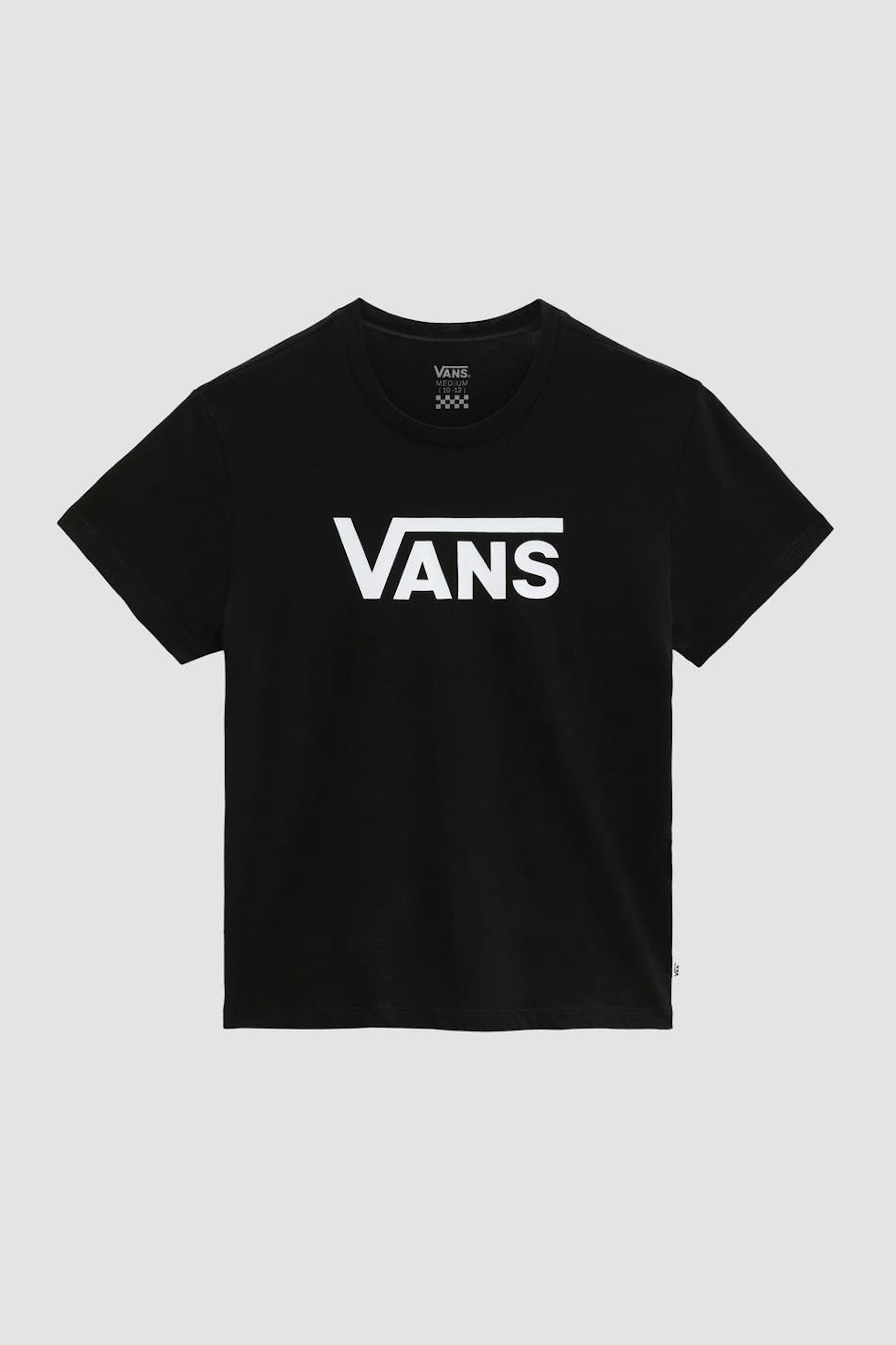 Short-sleeved t-shirt by Vans with a print at the front. The t-shirt is black and has a crew neckline.