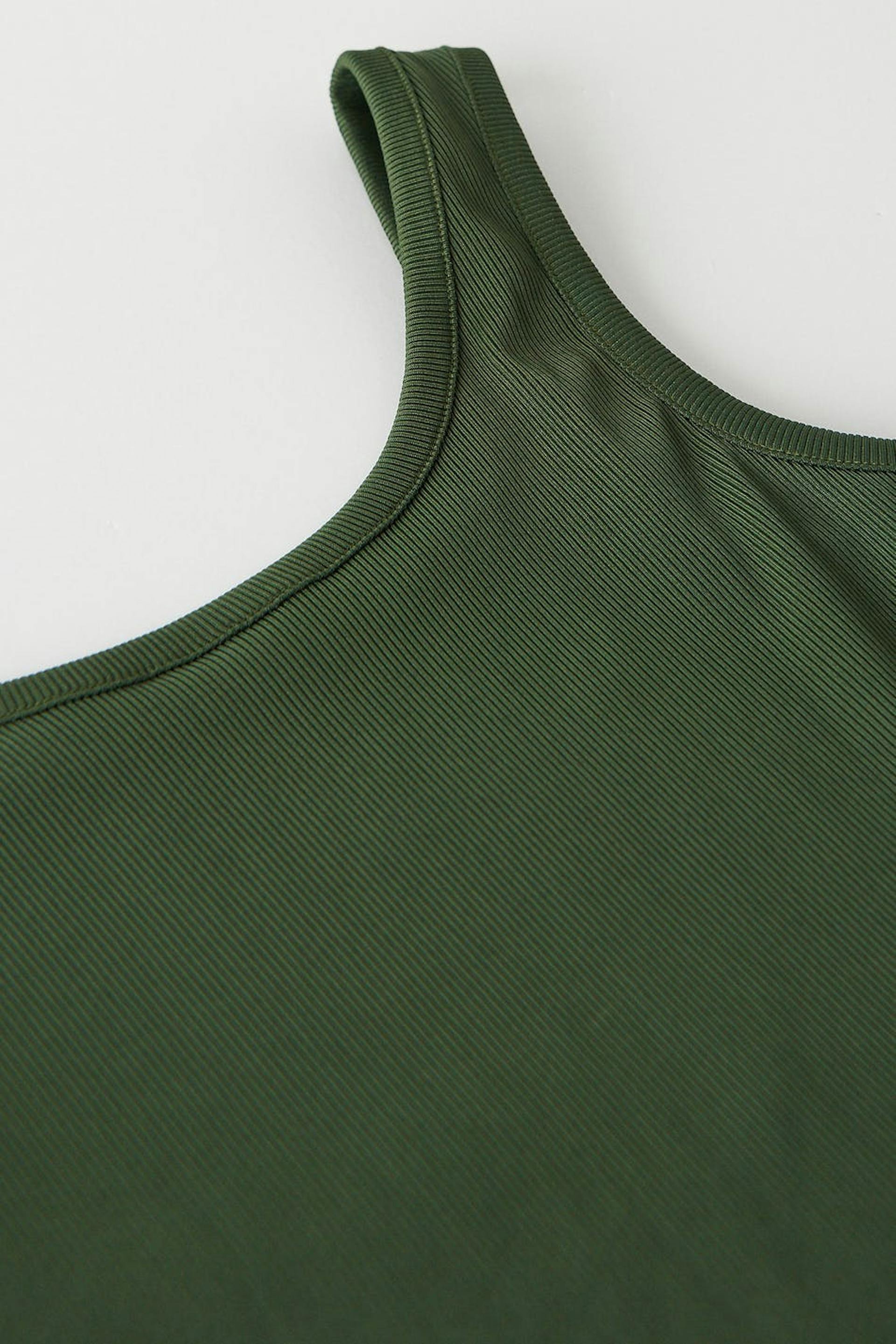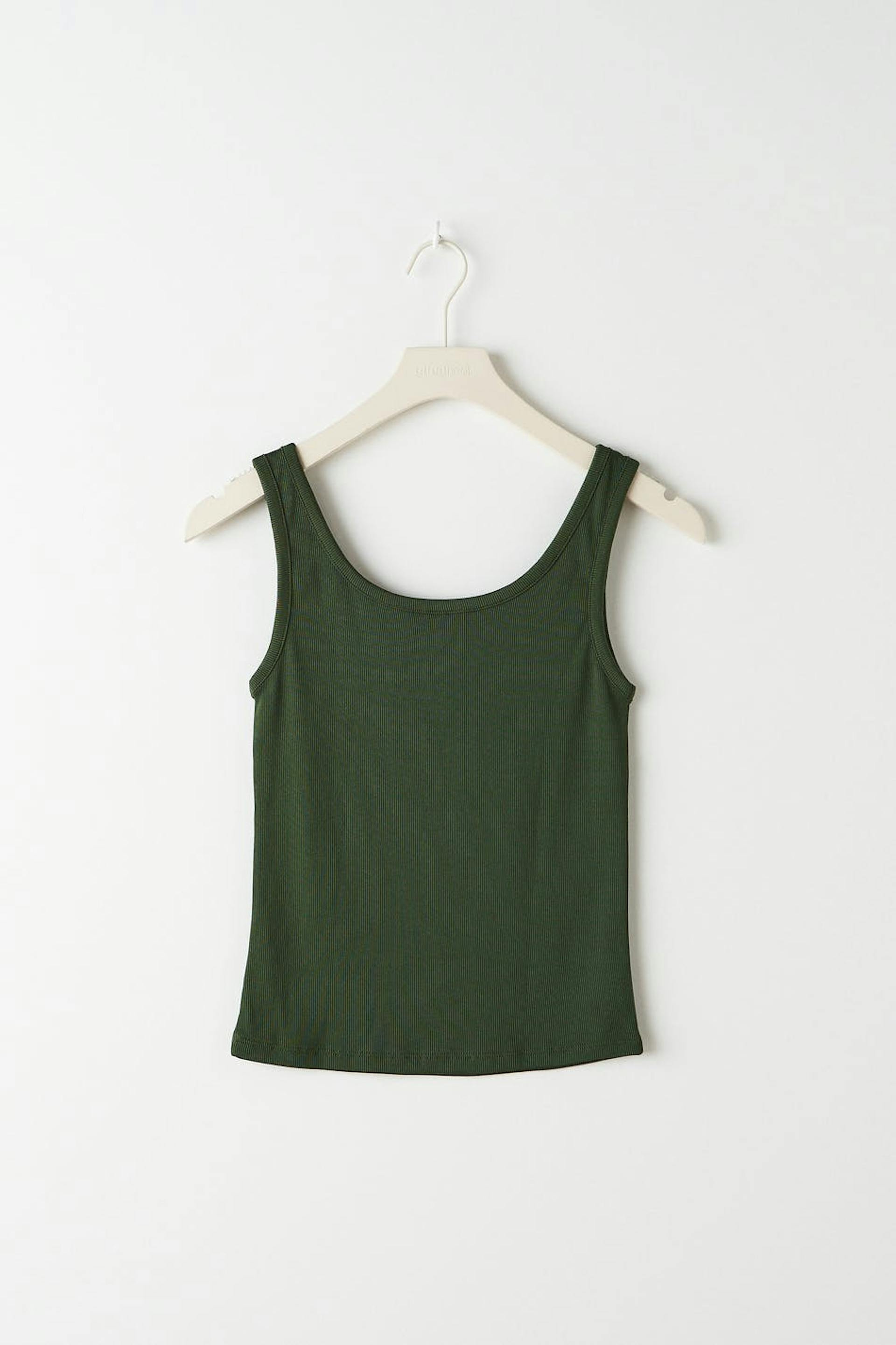 IZA & ELLE x YOUNG GINA TRICOT. Ribbed tank in jersey with a figure-fit fit. The tank is green and has a square neckline.