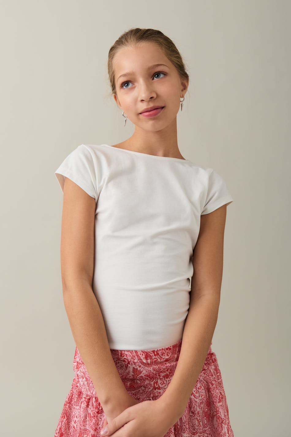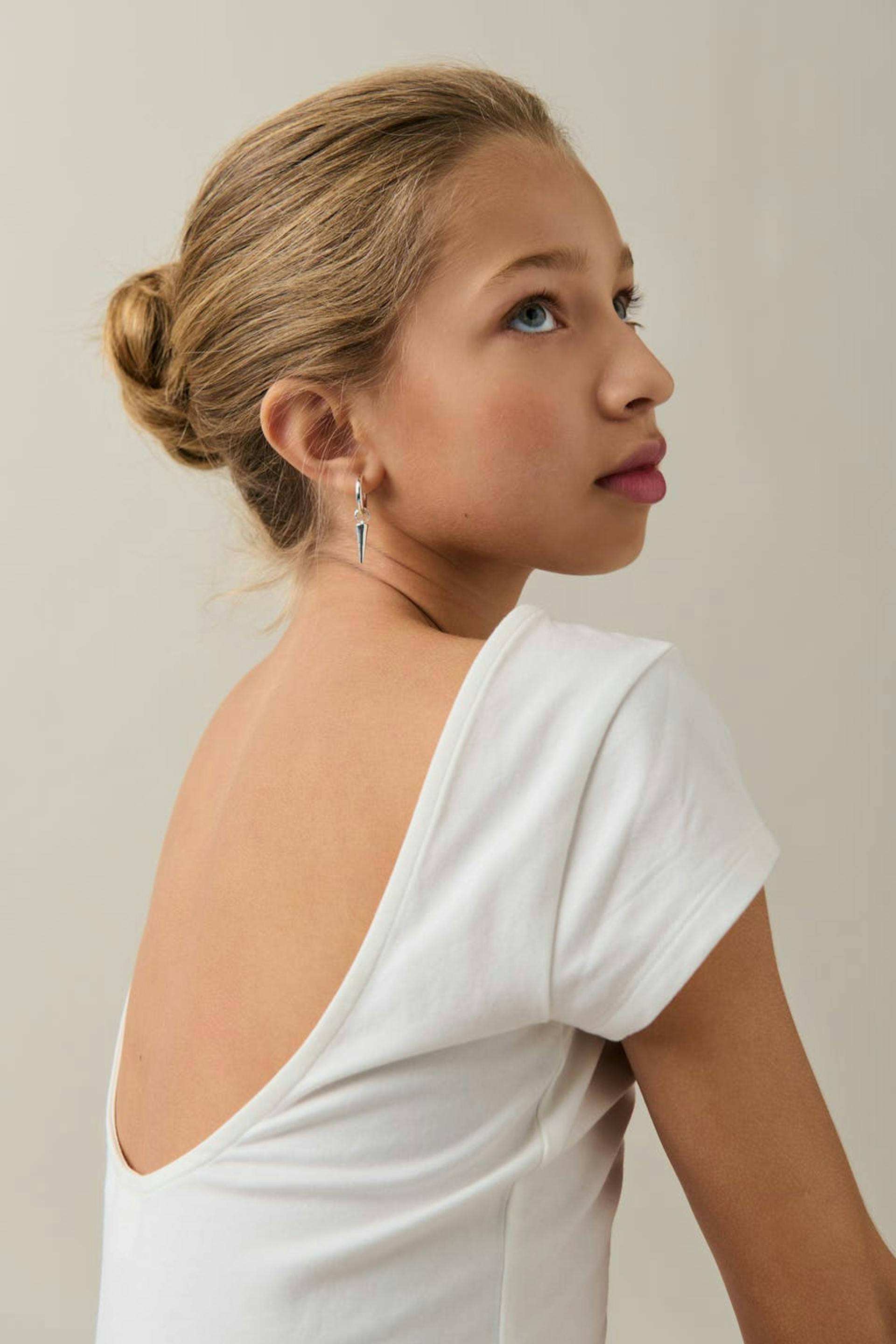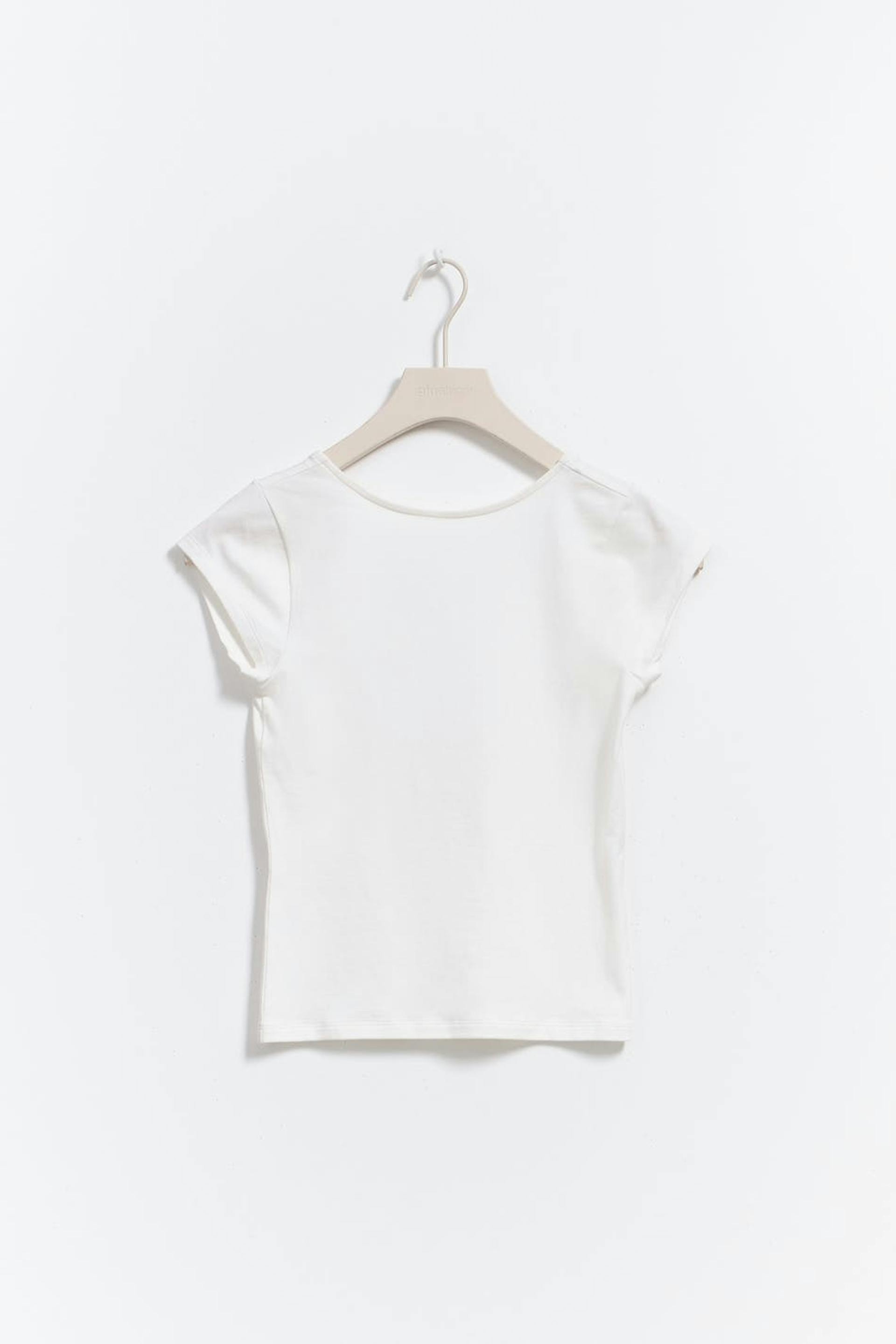 Short-sleeved top in jersey with open back. The top is white and has figure-hugging fit.