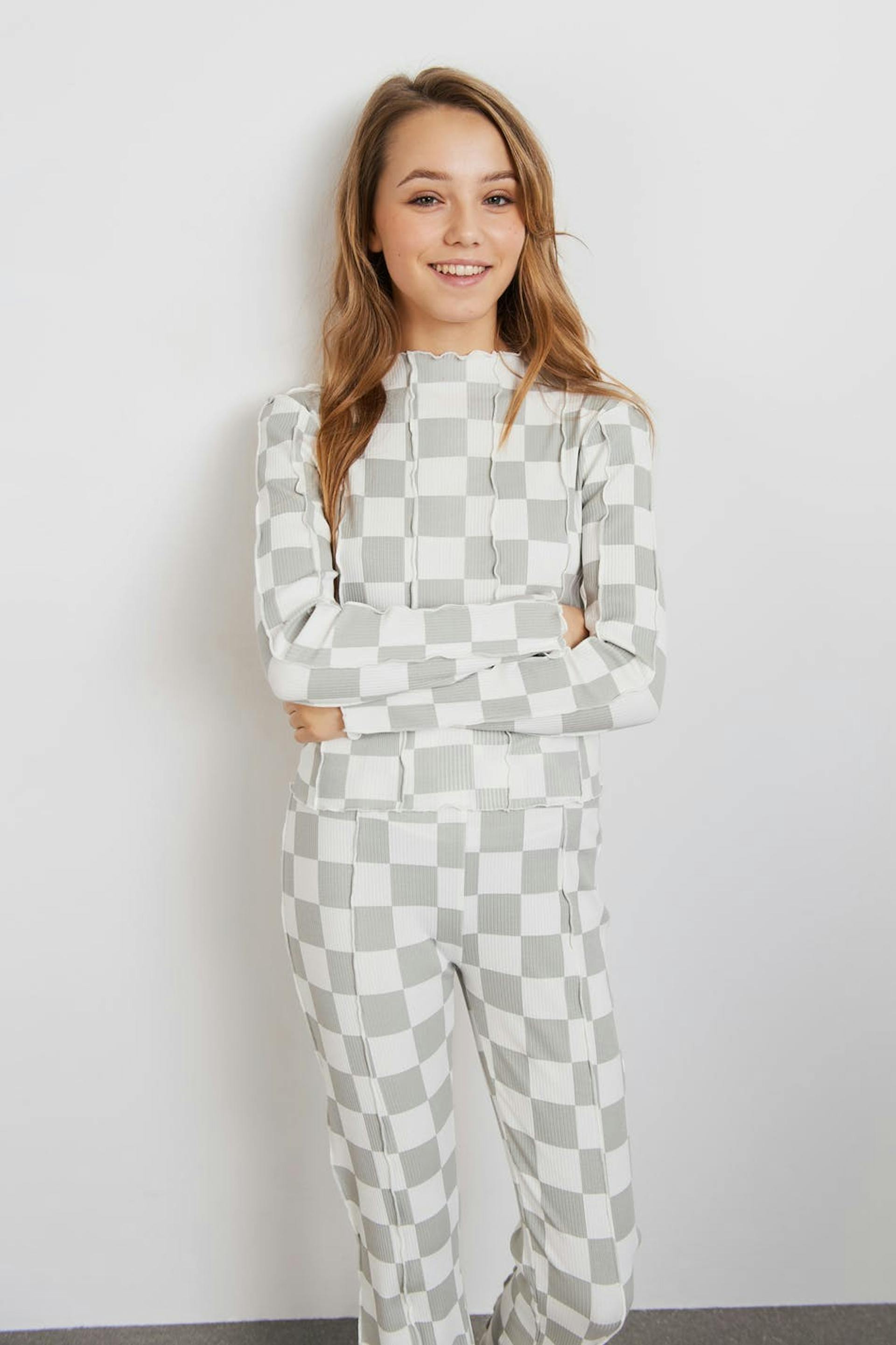 The model wears size 158/164 and is 164 cm tall