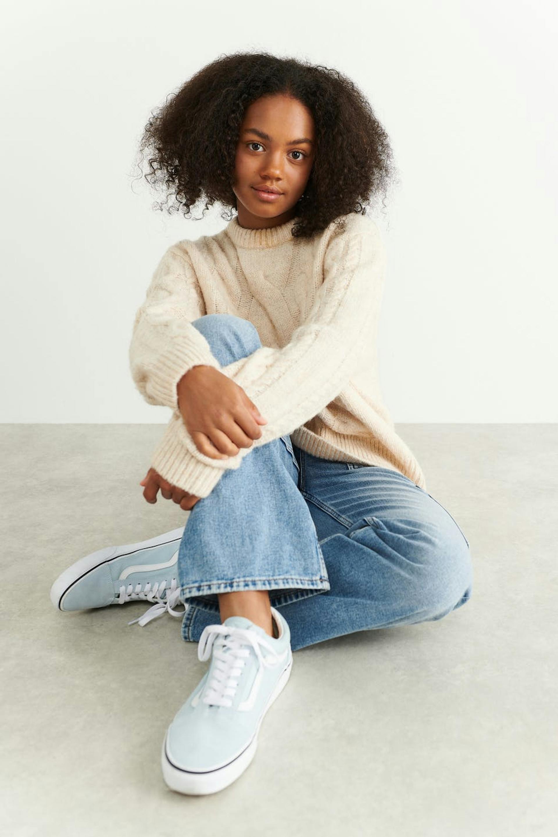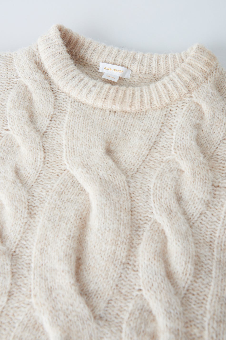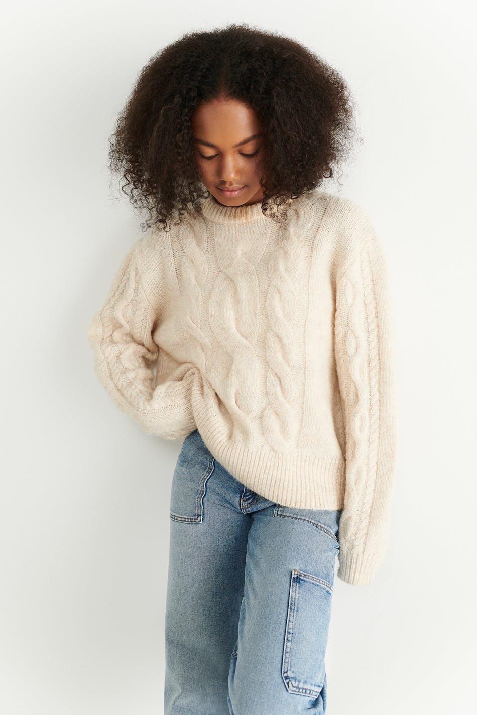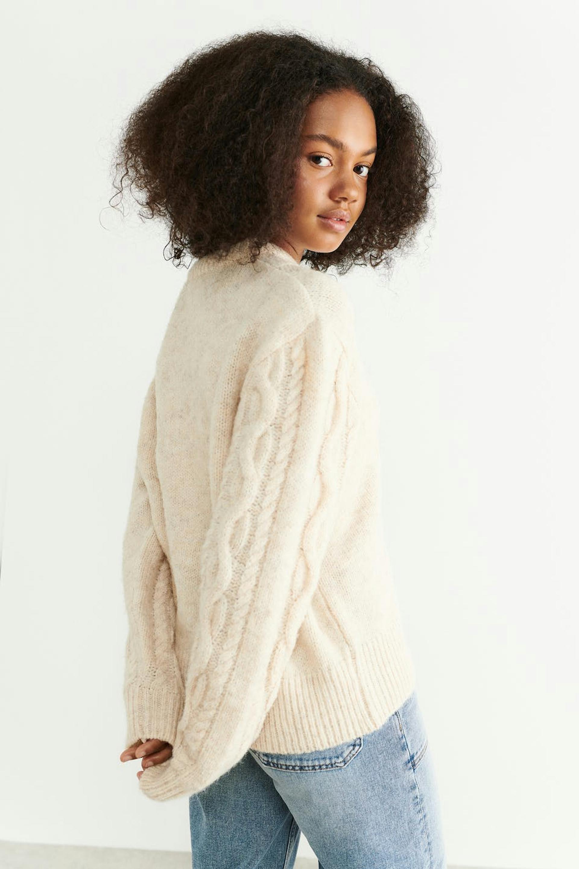 Cable-knit jumper by our Young assortment with an oversize fit. The jumper is beige and has high neckline. It has ribbed hem.