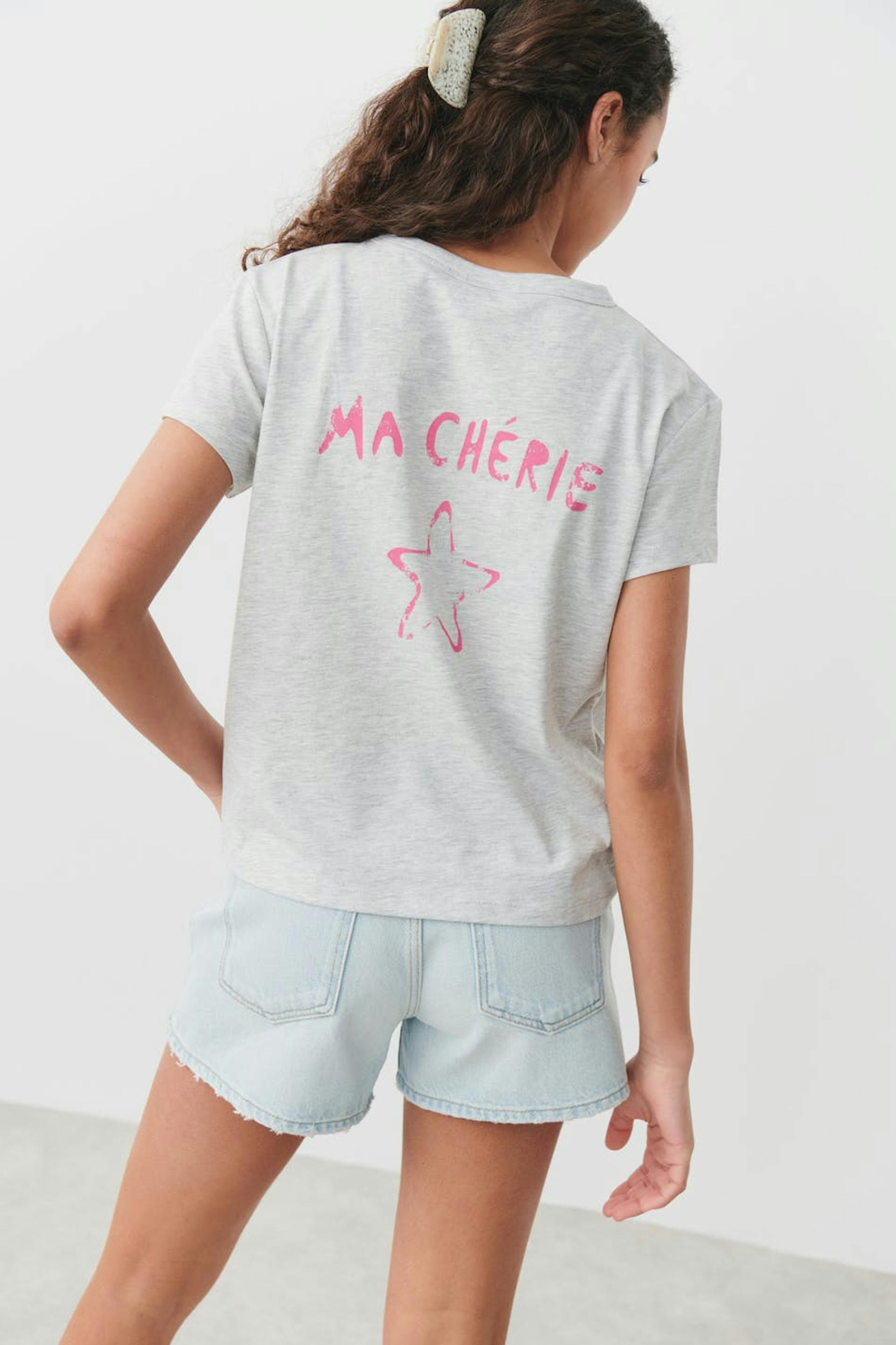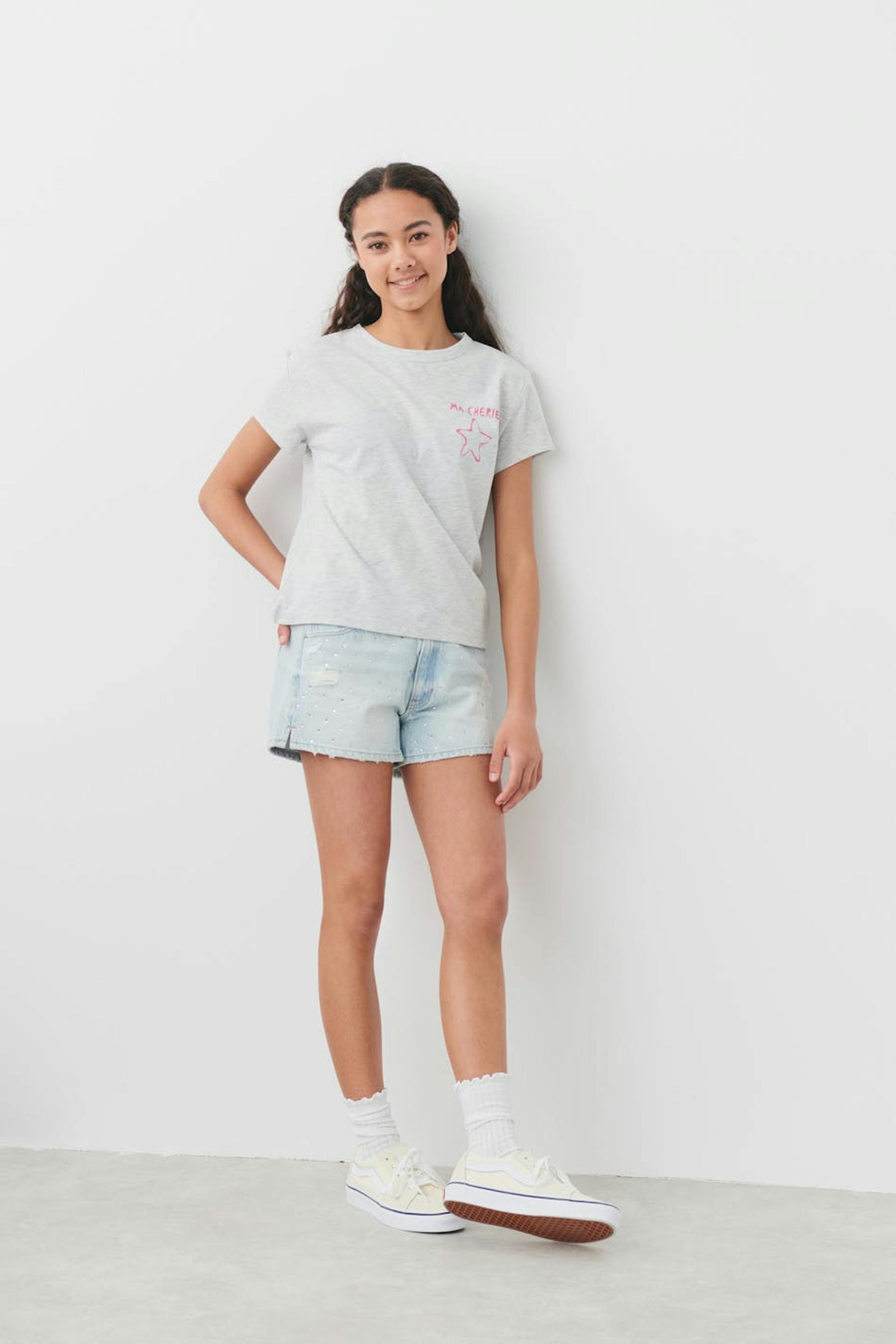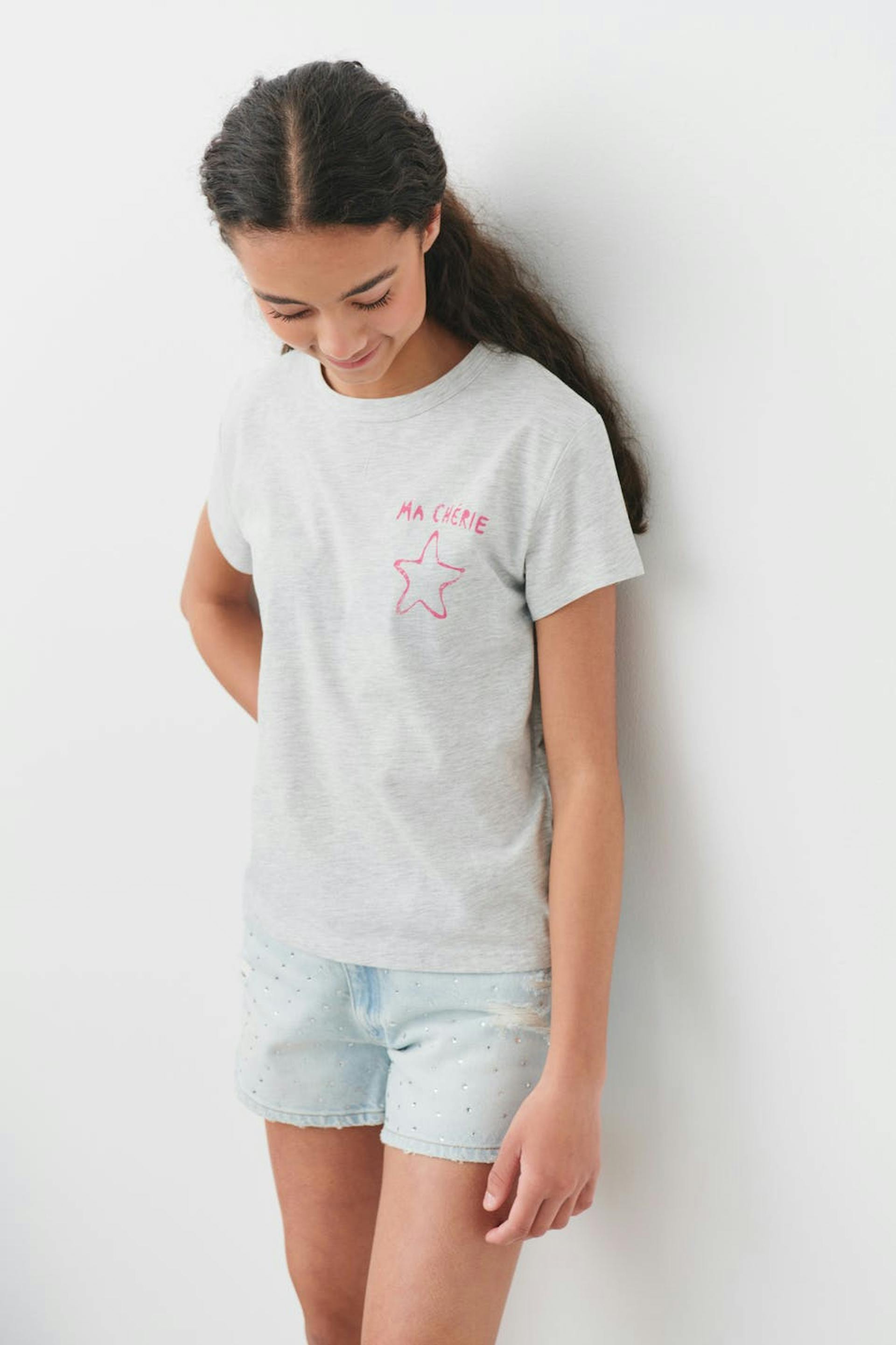 Oversized t-shirt by Gina Tricot Young with print on the chest and at the back. The t-shirt is grey and has short sleeve.