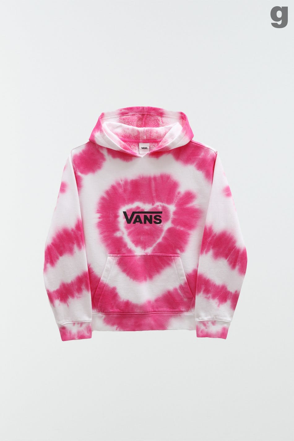Long-sleeved jumper by Vans with a hood. The jumper is pink and has a logo print at the front with a pocket.