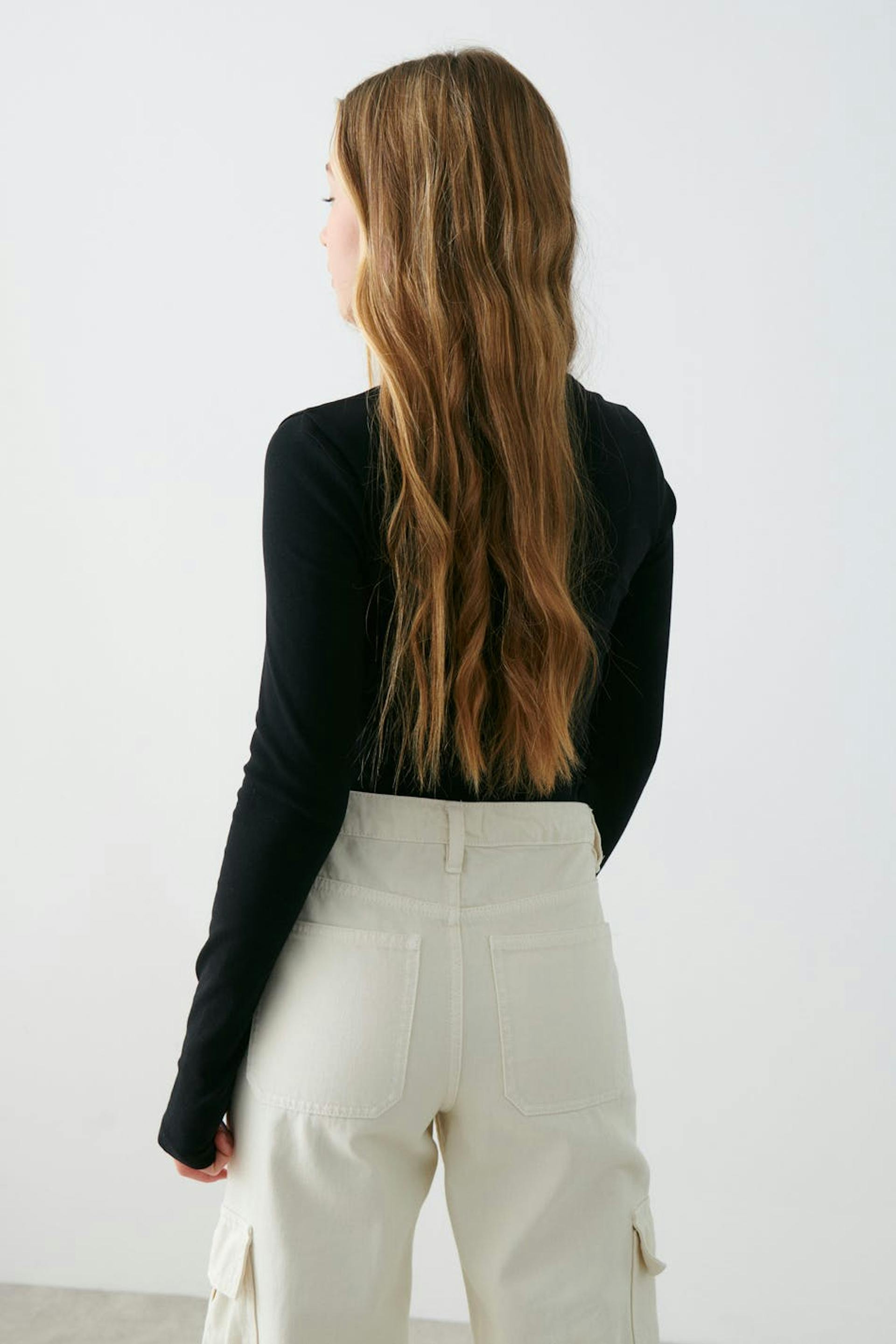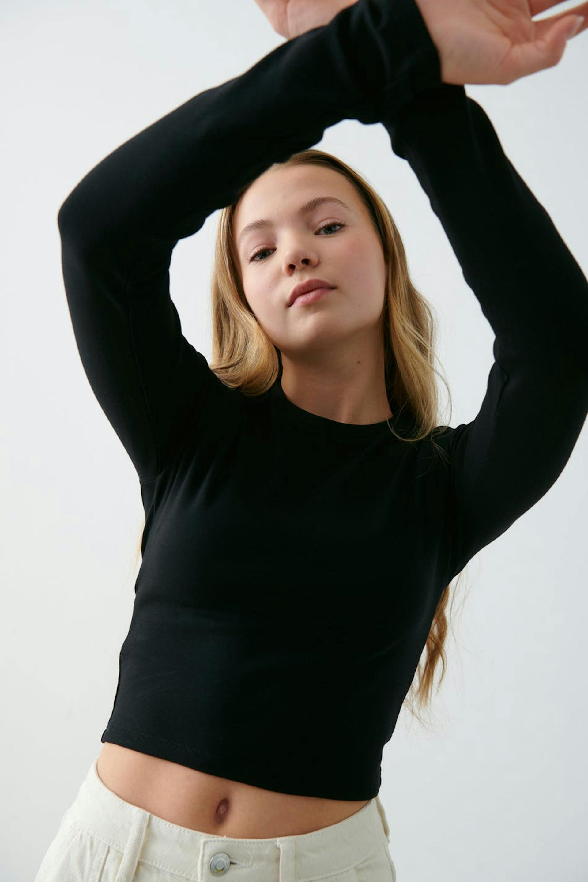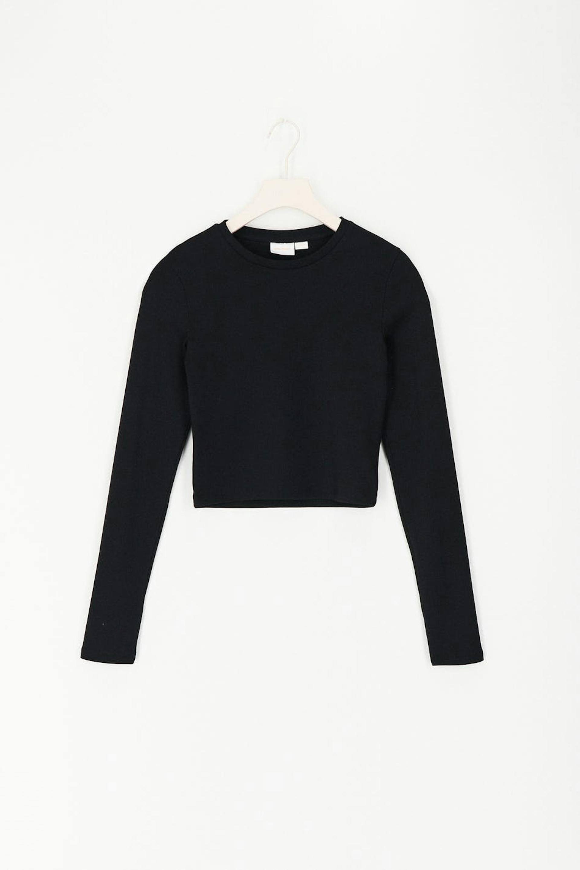Long-sleeved top in jersey with figure-hugging fit. The top is black and has cropped length.