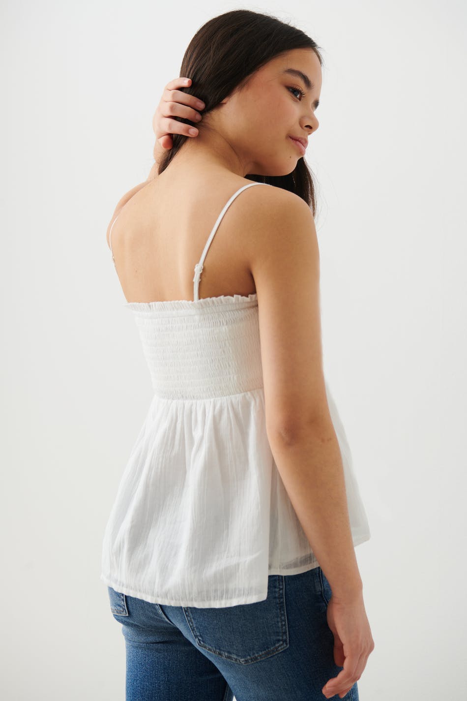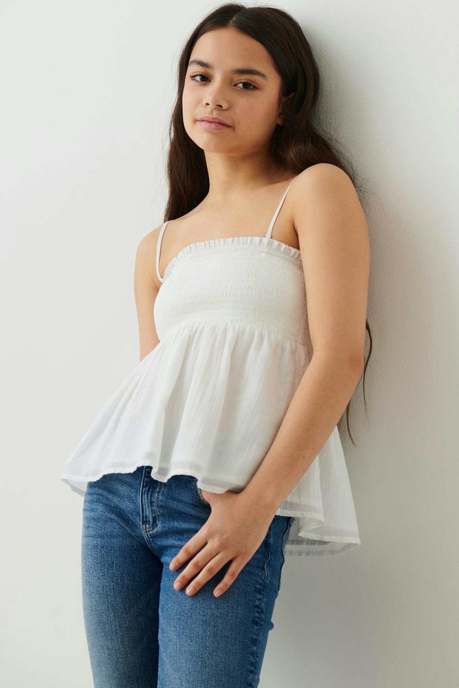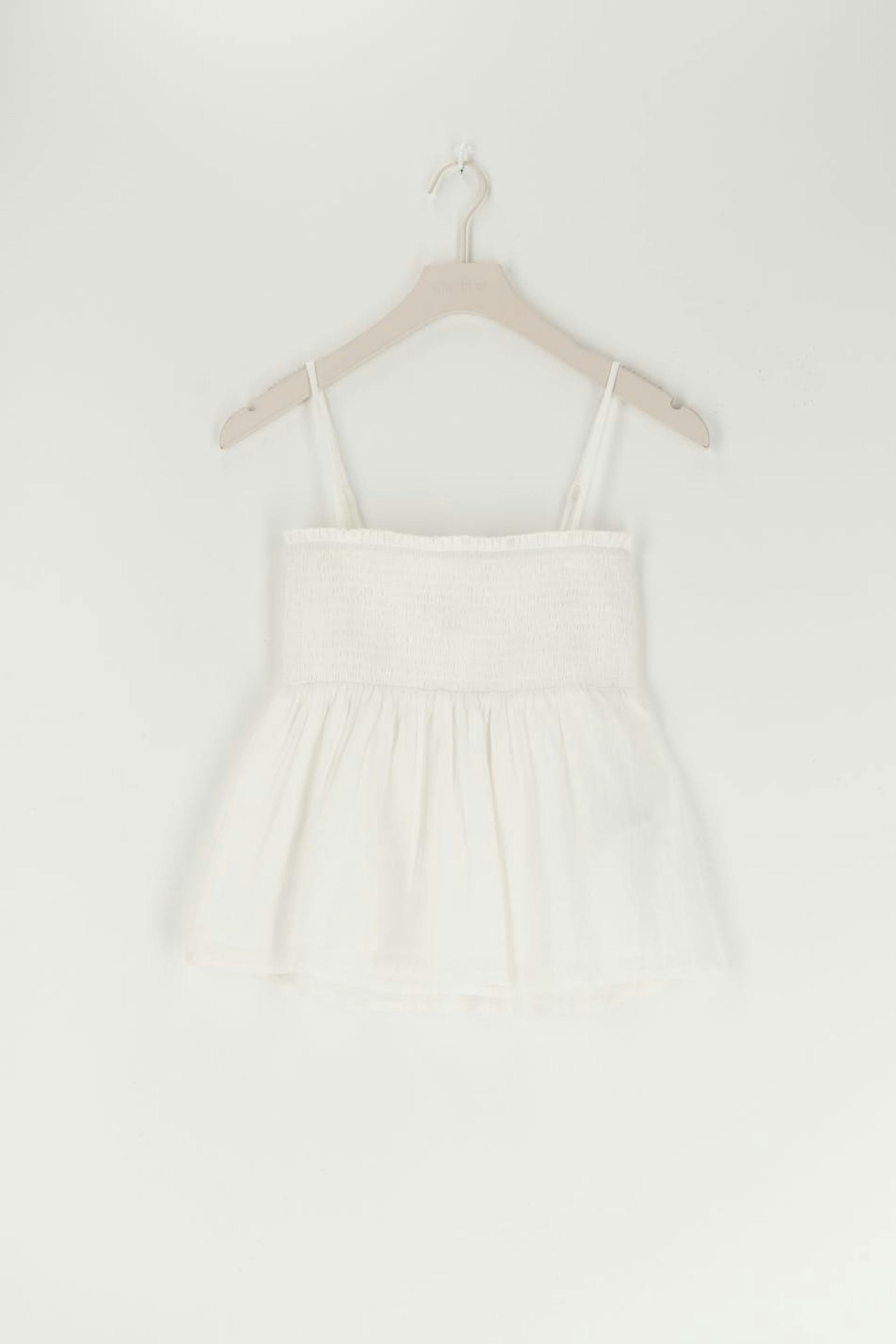 Multifunctional top by Gina Tricot Young with smocking. The top is white, lined and further back. It has detachable shoulder straps. The top can also be worn as a skirt.