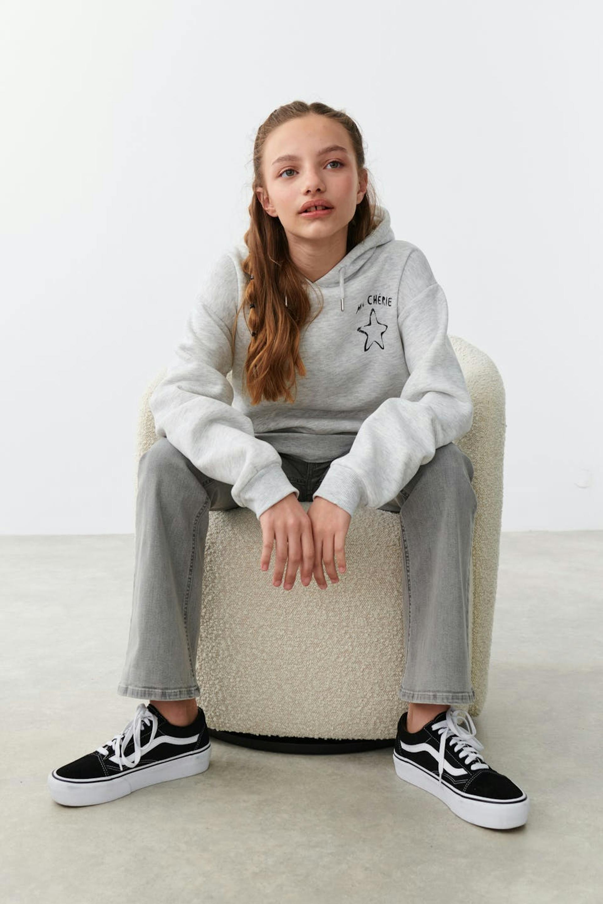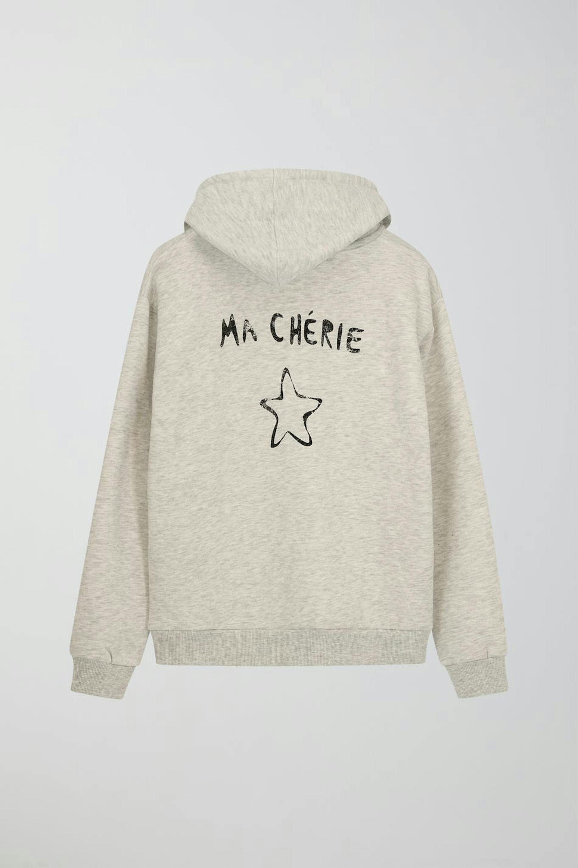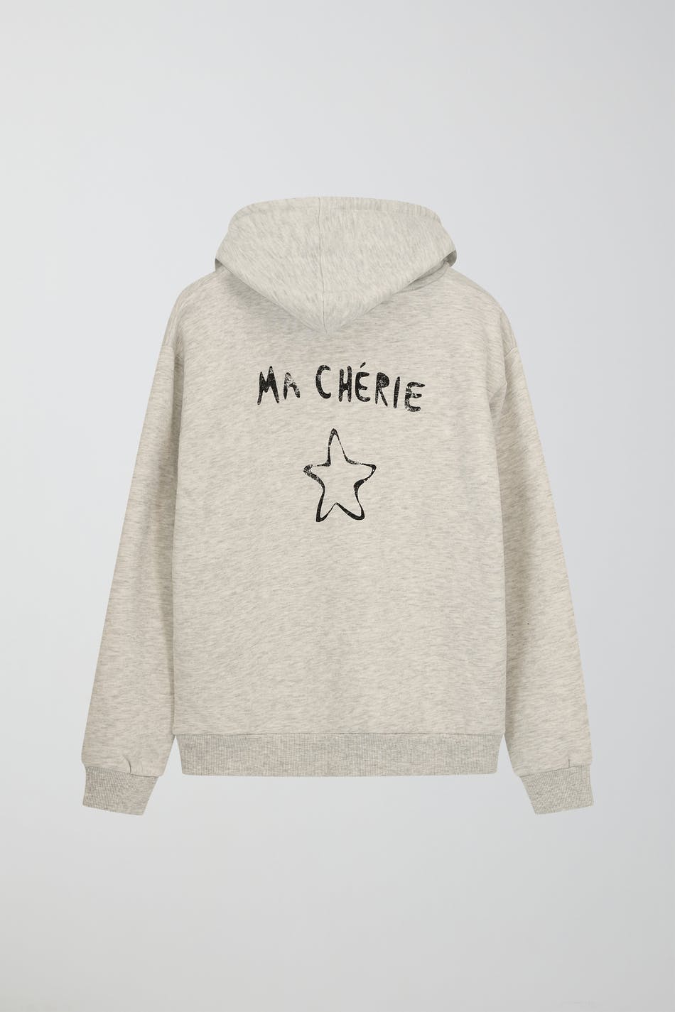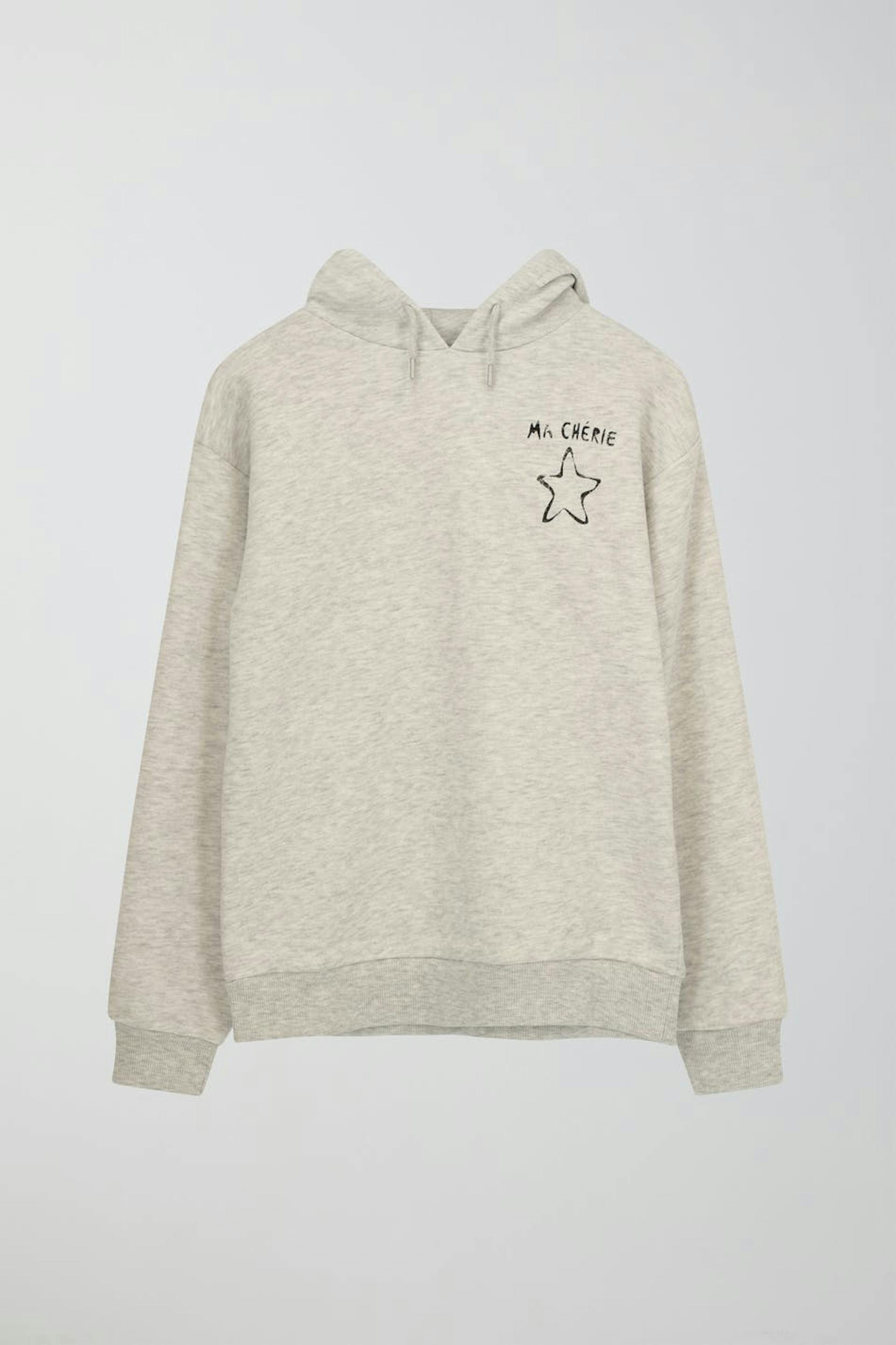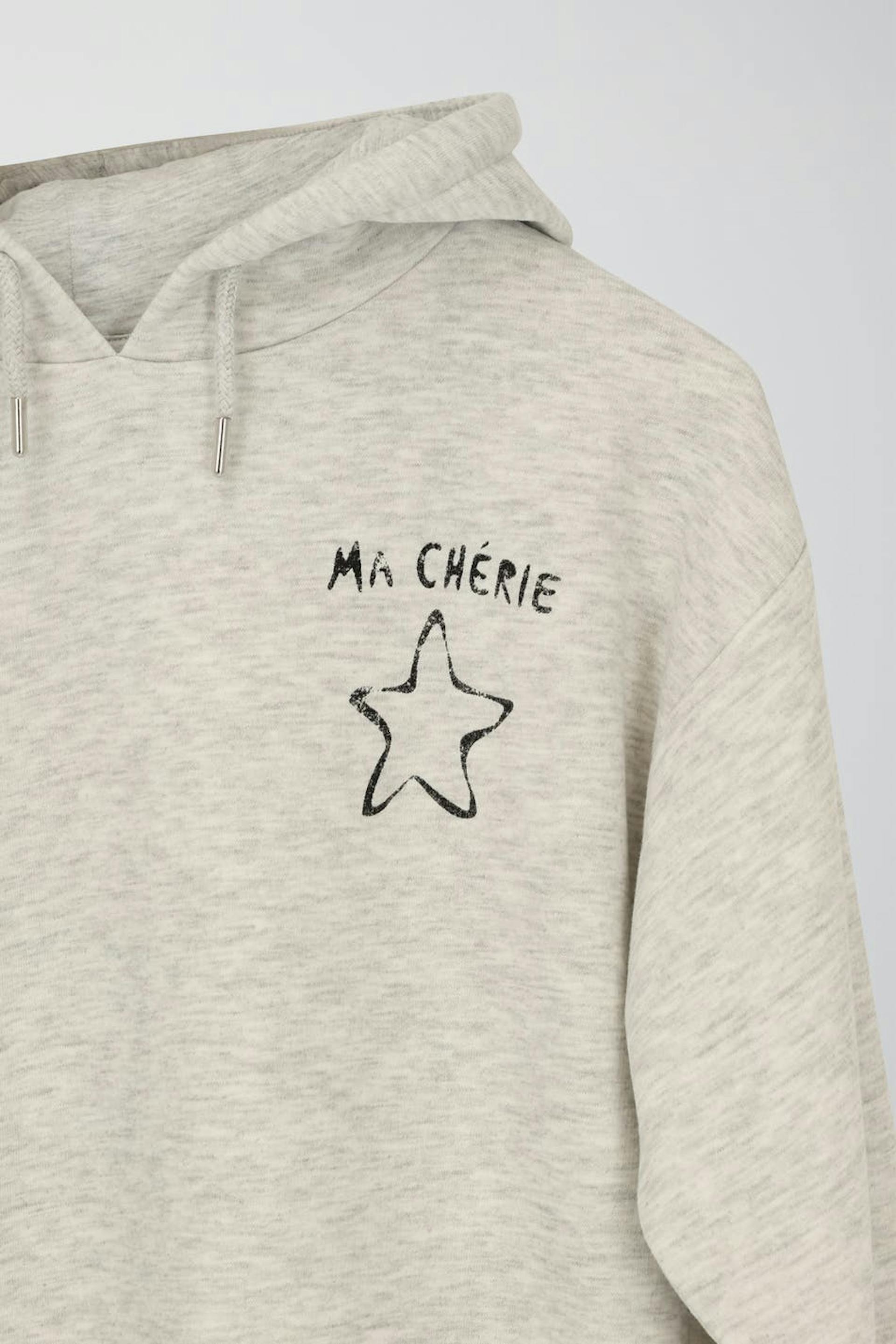Hoodie in soft jersey with an oversize fit. The hoodie is grey and has print at the back and on the chest. It has hood with drawstring and ribbing at sleeve ends and at the bottom.