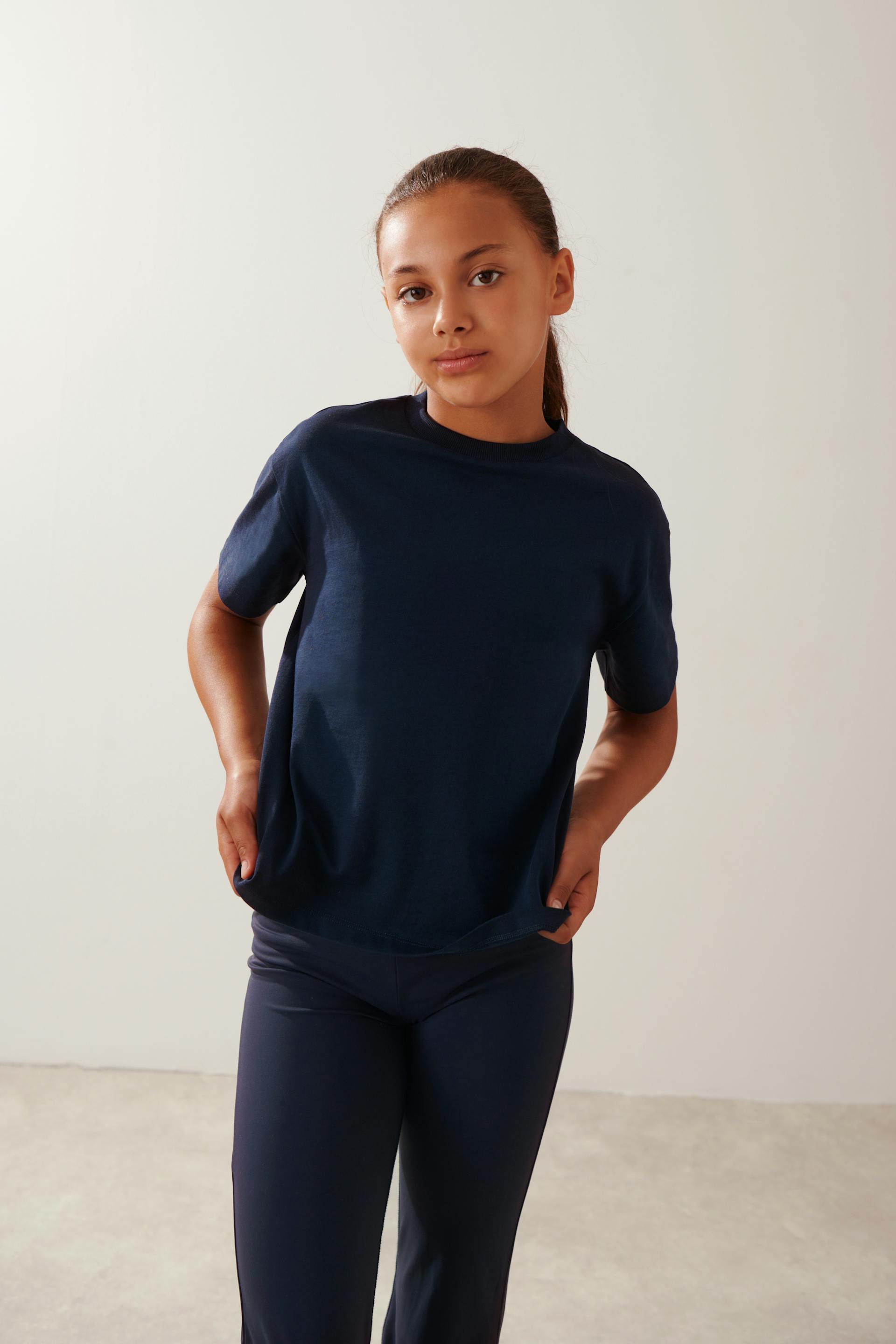 Oversized t-shirt by Gina Tricot Young with round neckline. The t-shirt is blue and has short sleeve.