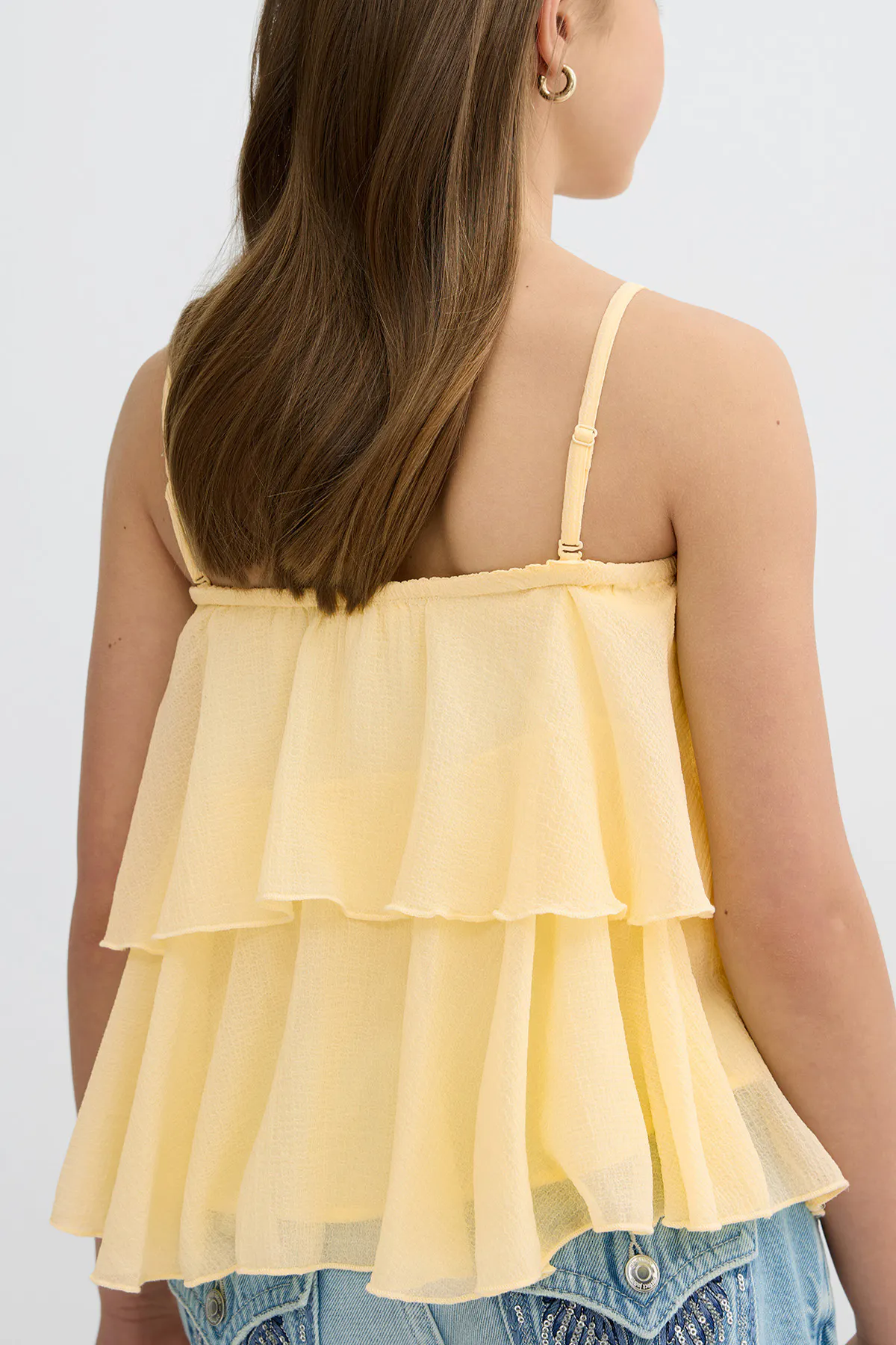 Y strap frill top