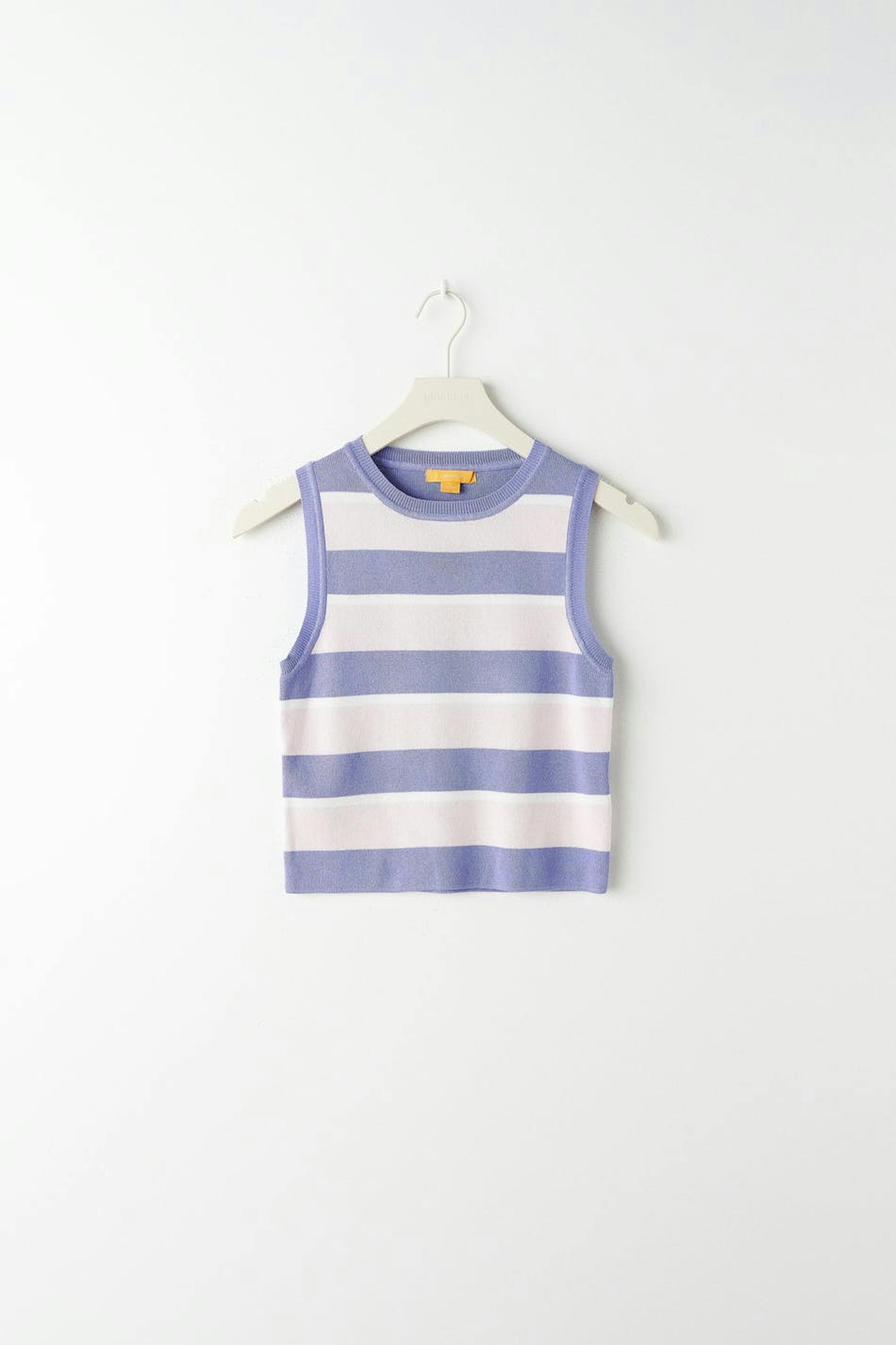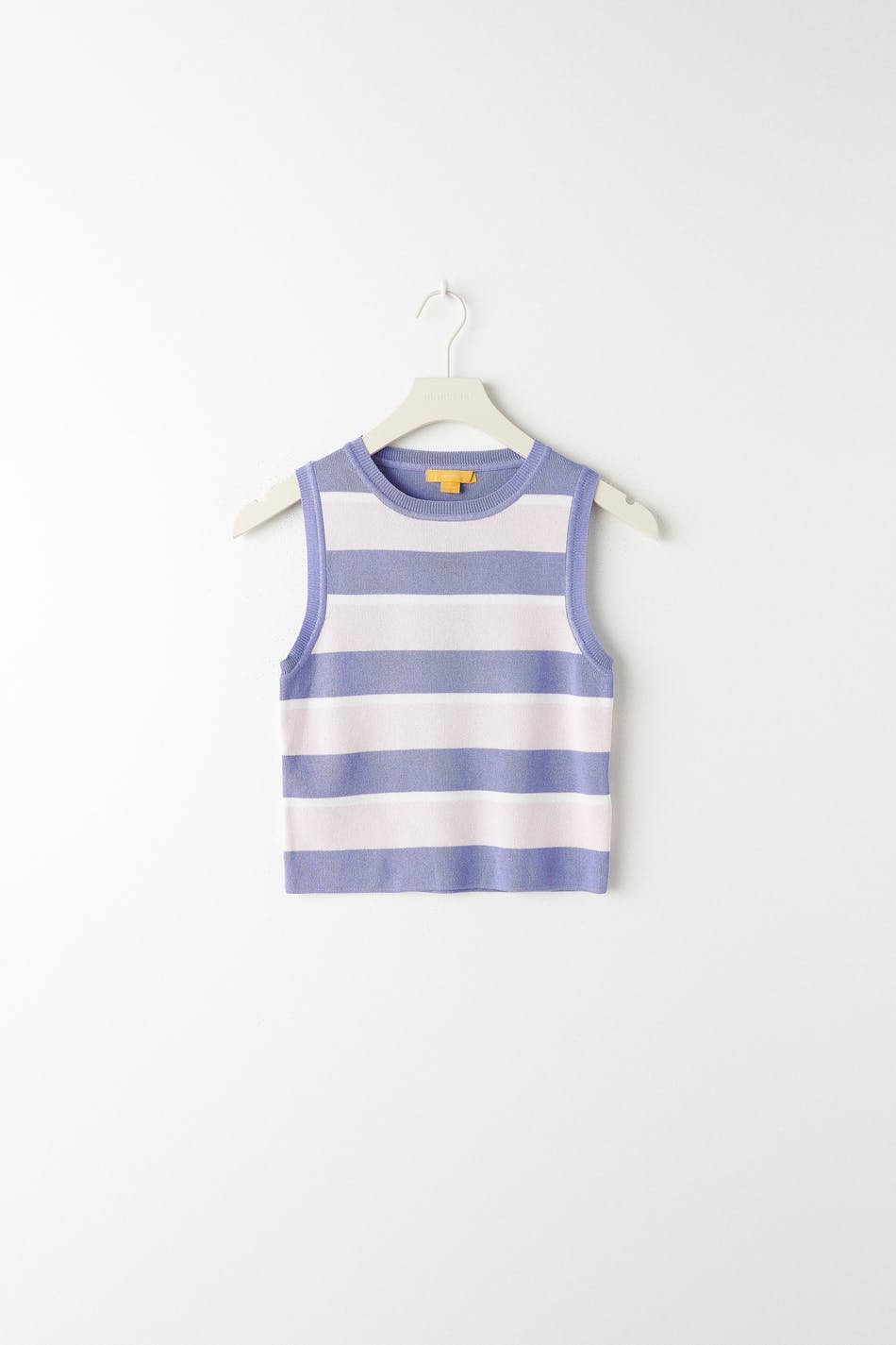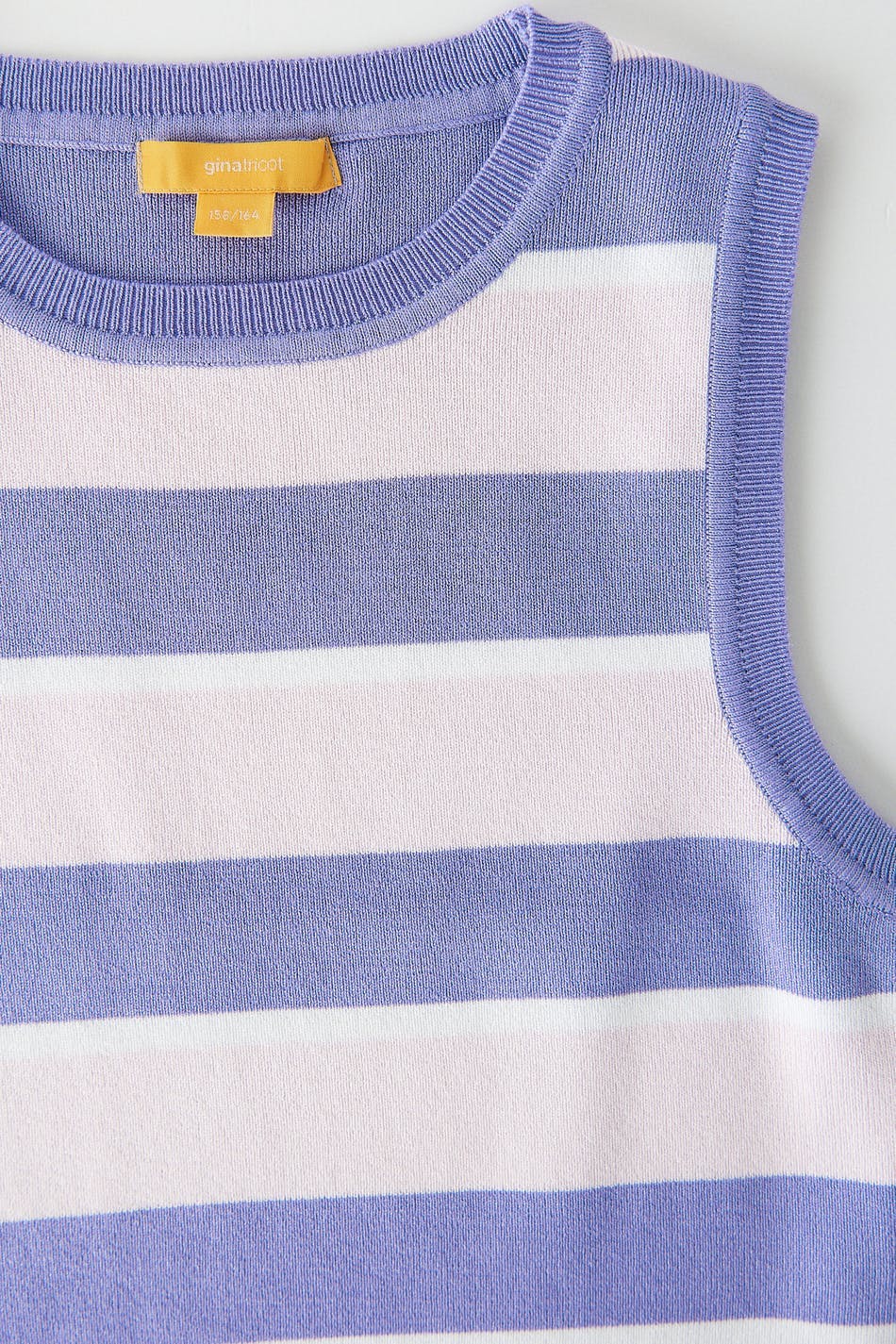 Striped knitted vest in LENZING™ viscose with fitted fit. The vest is purple and has high neckline.