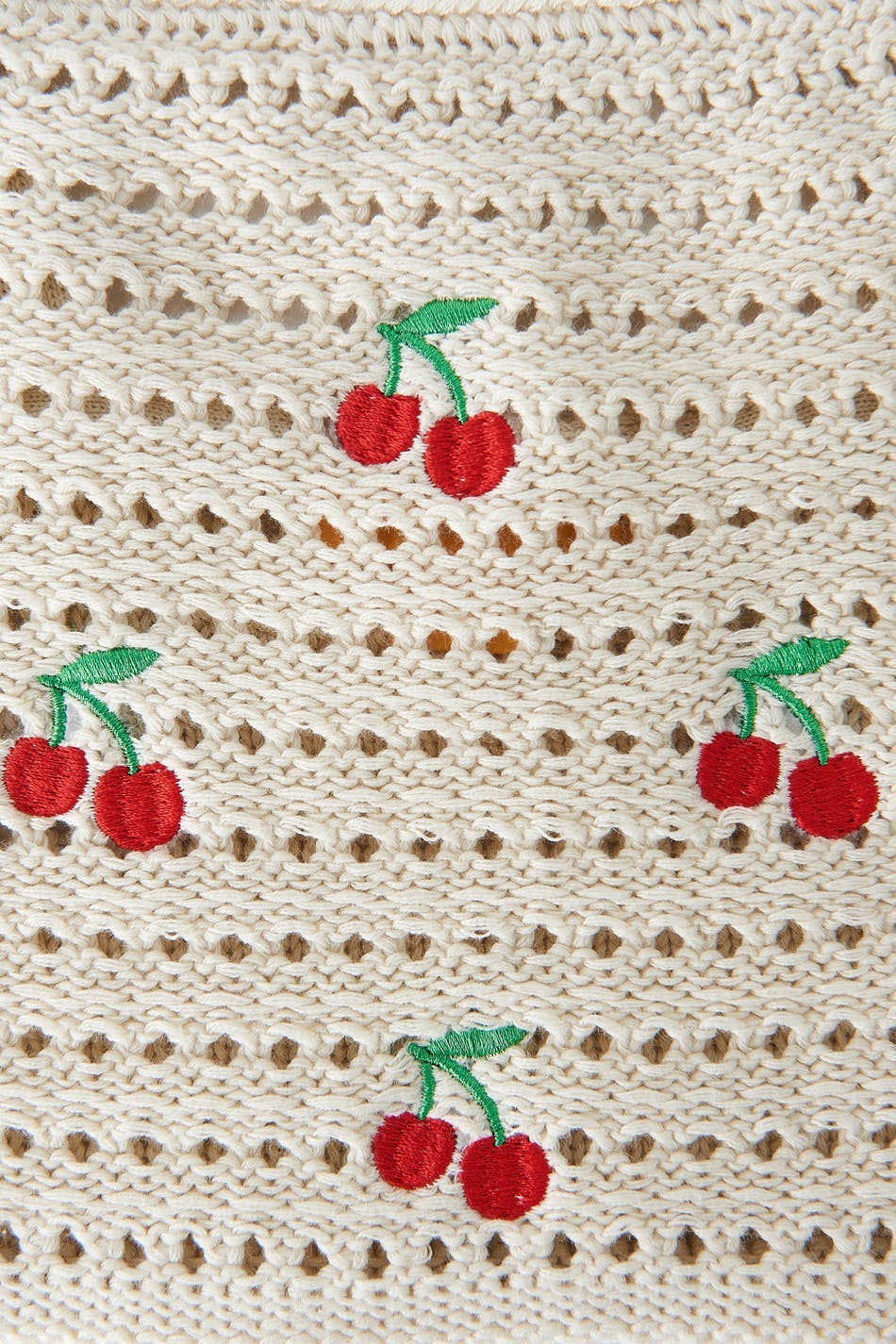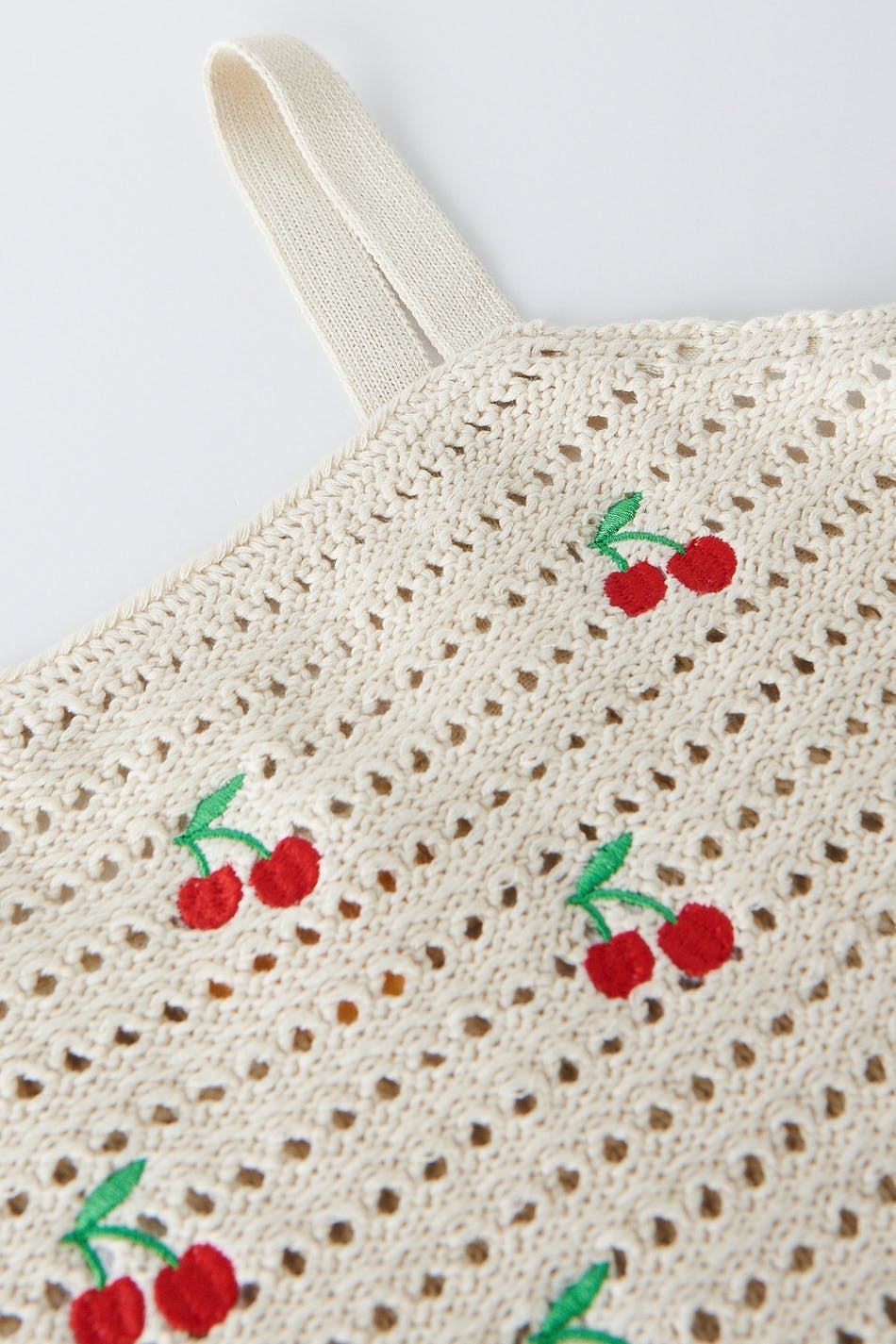 Knitted tank with embroidery details at the front. The tank is beige and has a cropped length.