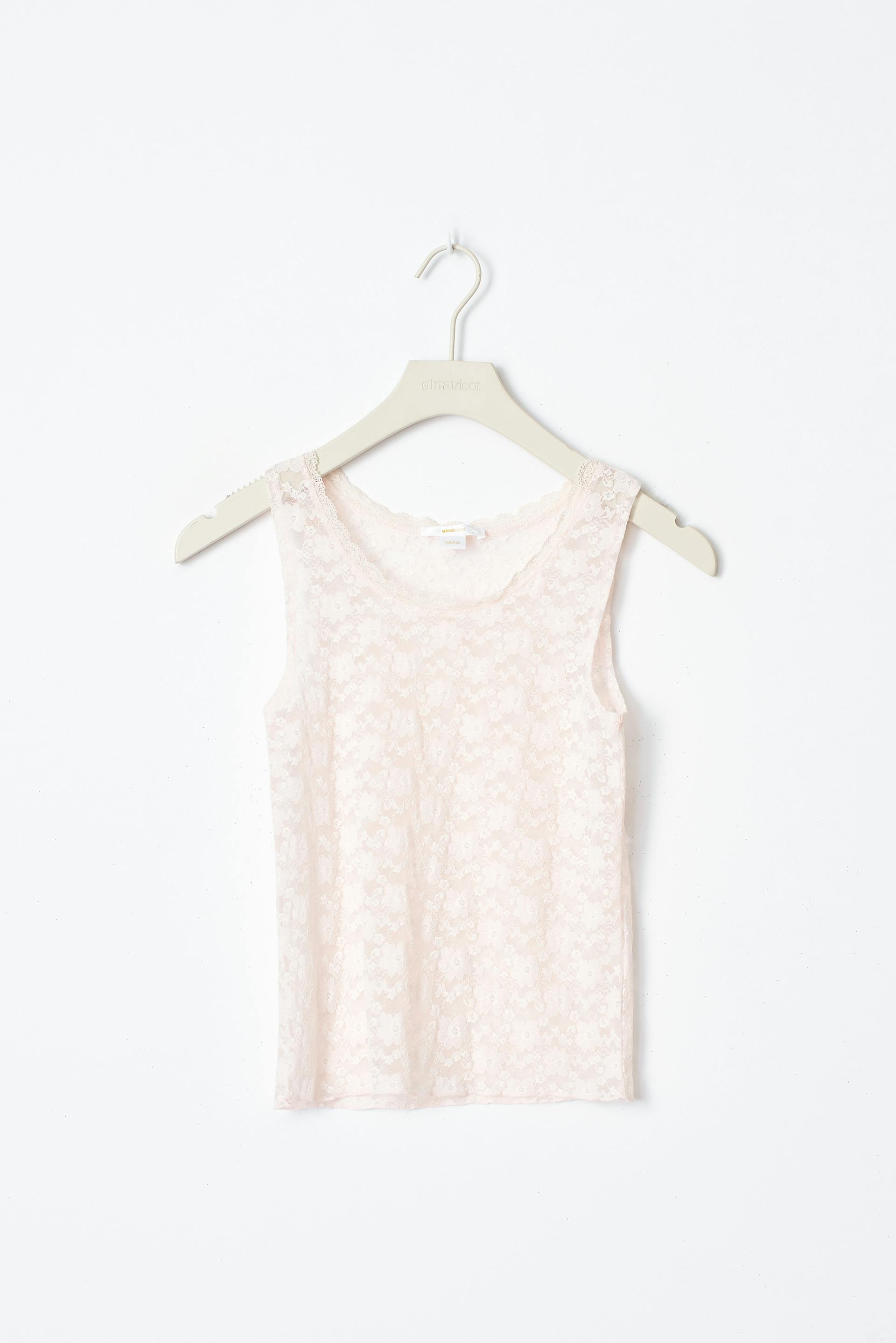 Singlet in lace with figure-hugging fit. The singlet is pink and has rounded neckline.