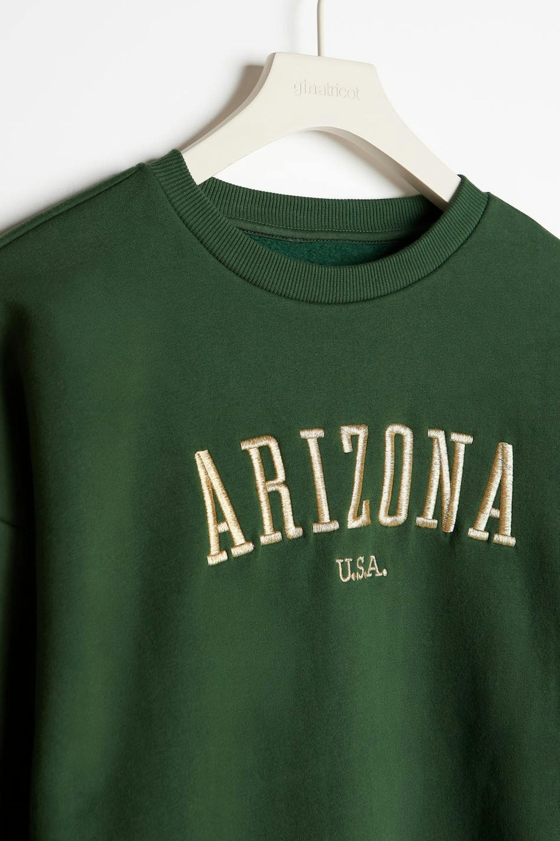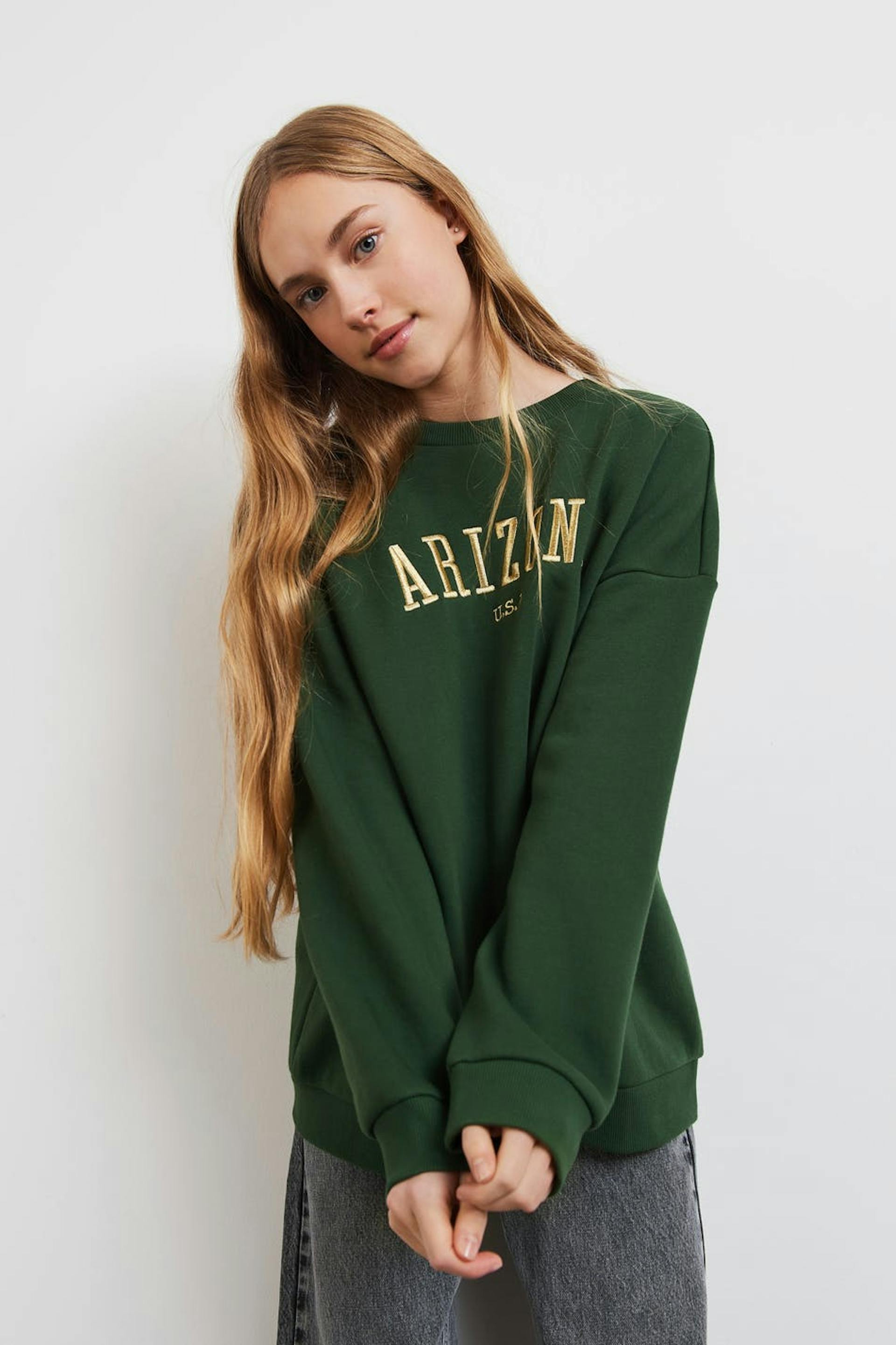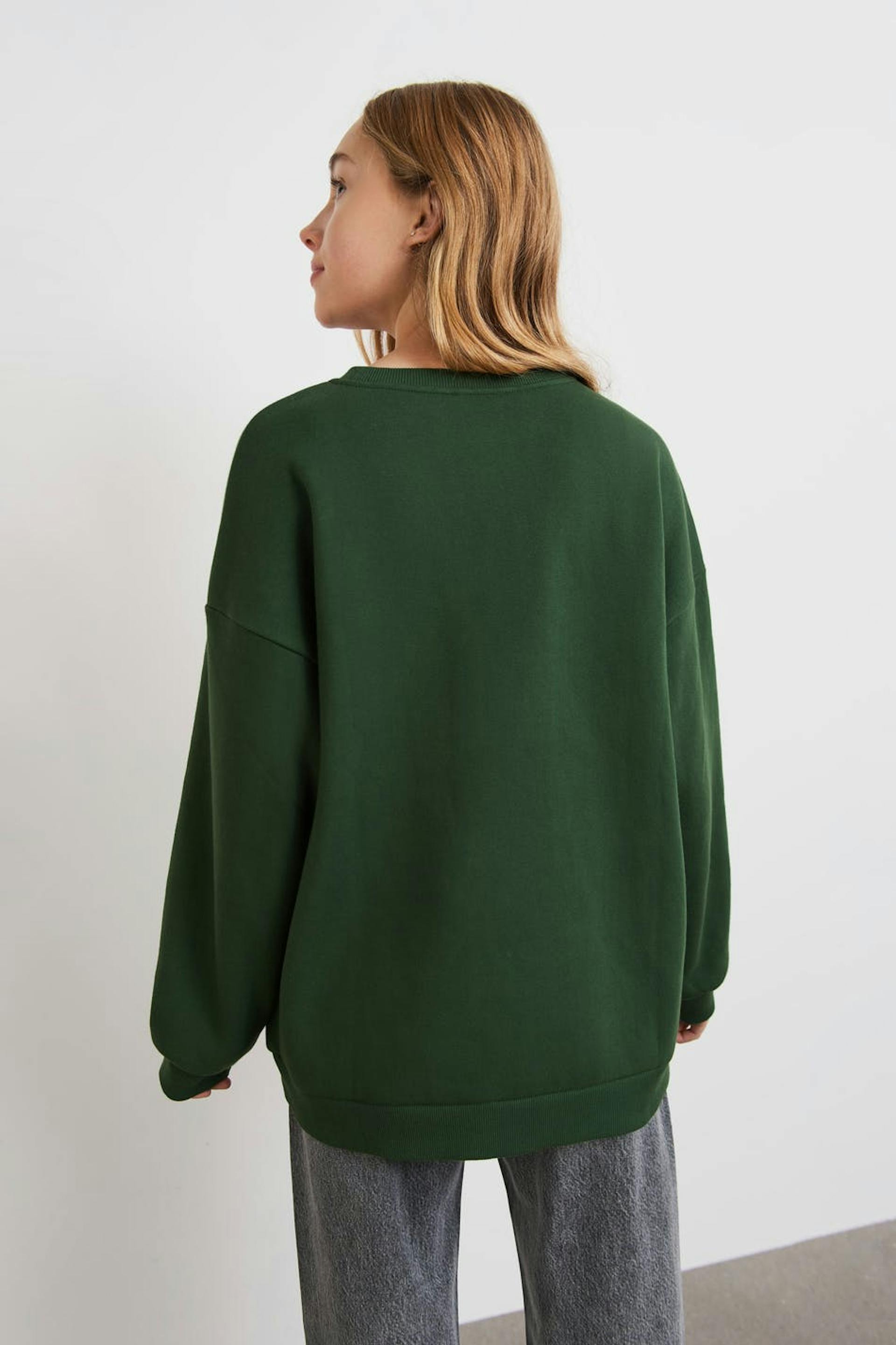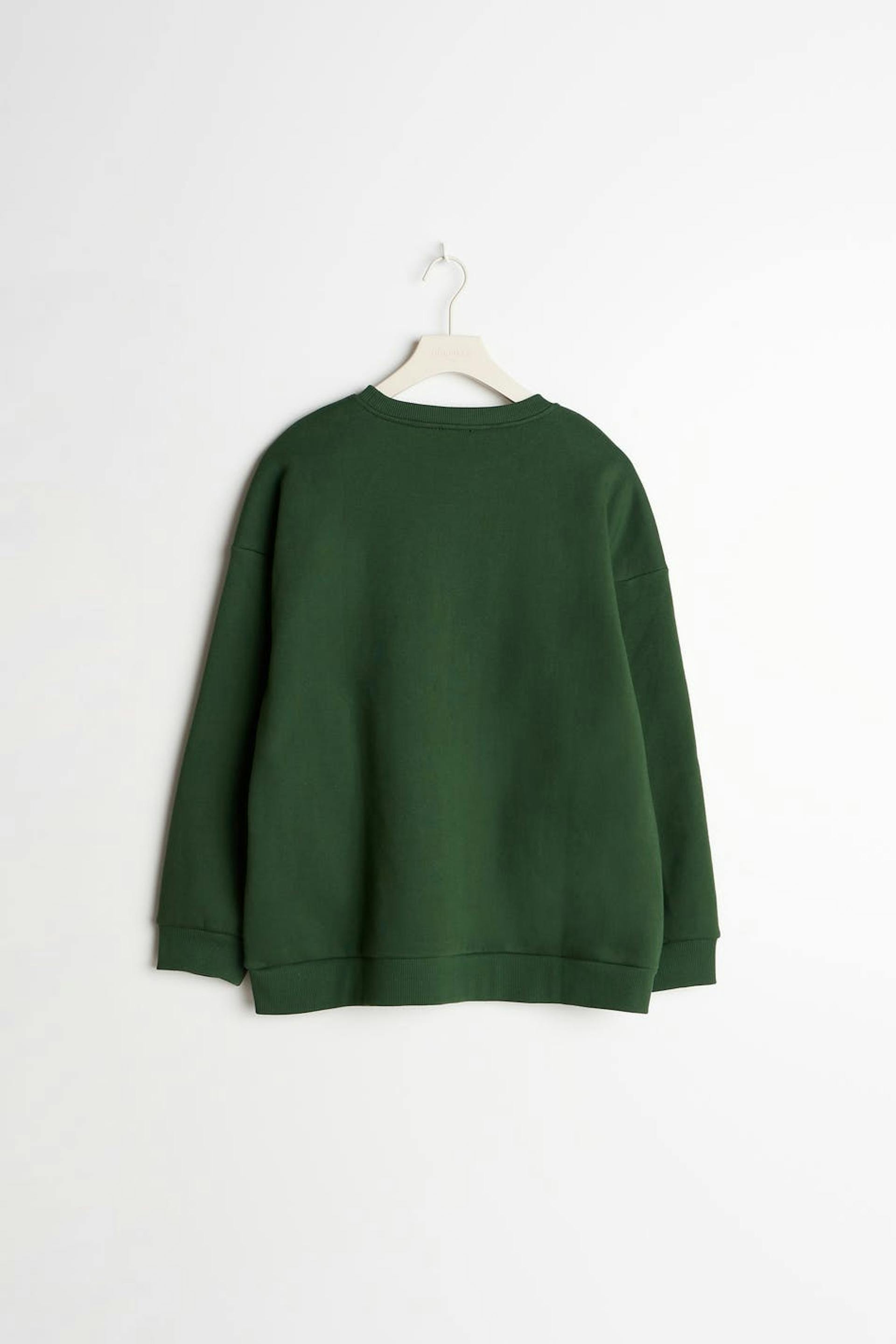 Sweatshirt by our Young assortment with embroidered text. The sweatshirt is green and has an oversize fit. It has dropped shoulders, a rounded neckline and a ribbed hem.