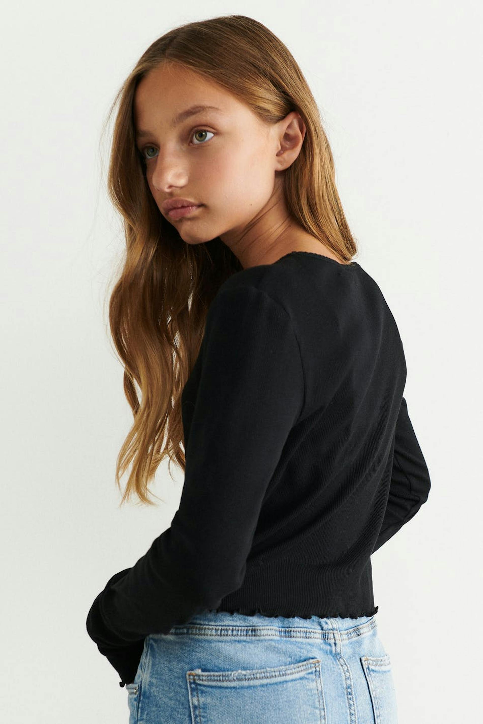 The model wears size 158/164 and is 155 cm tall