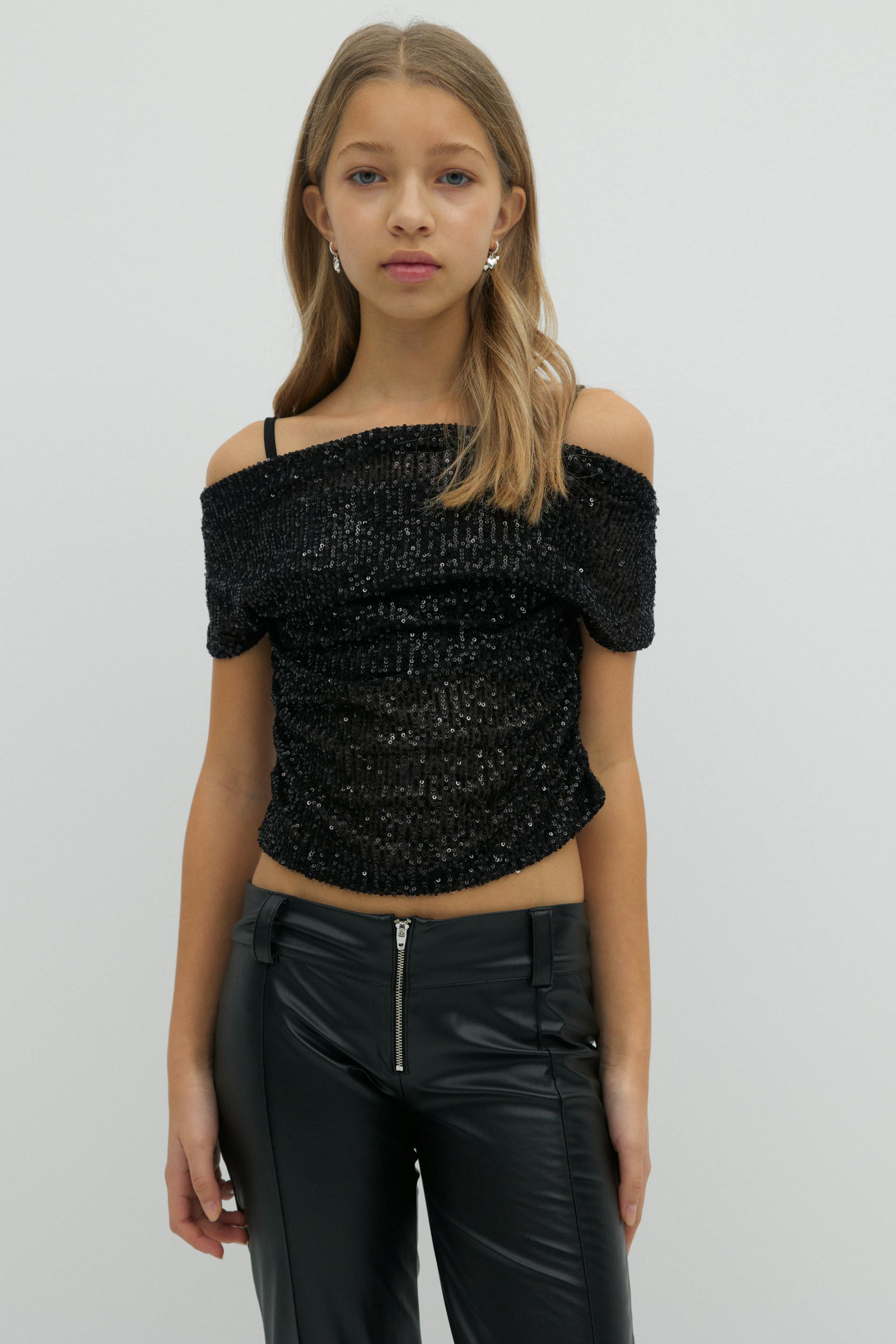 Y sequin off shoulder top