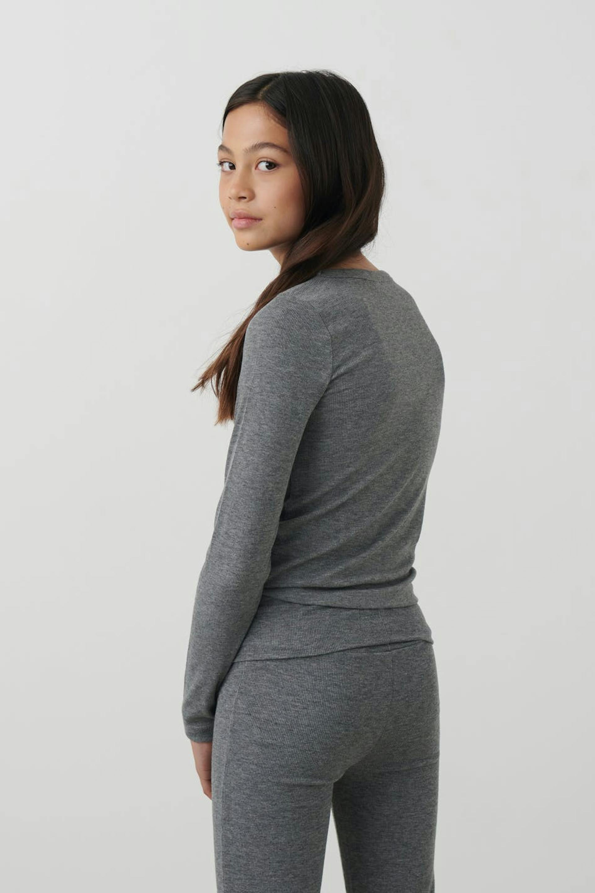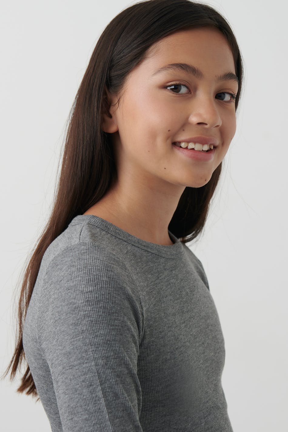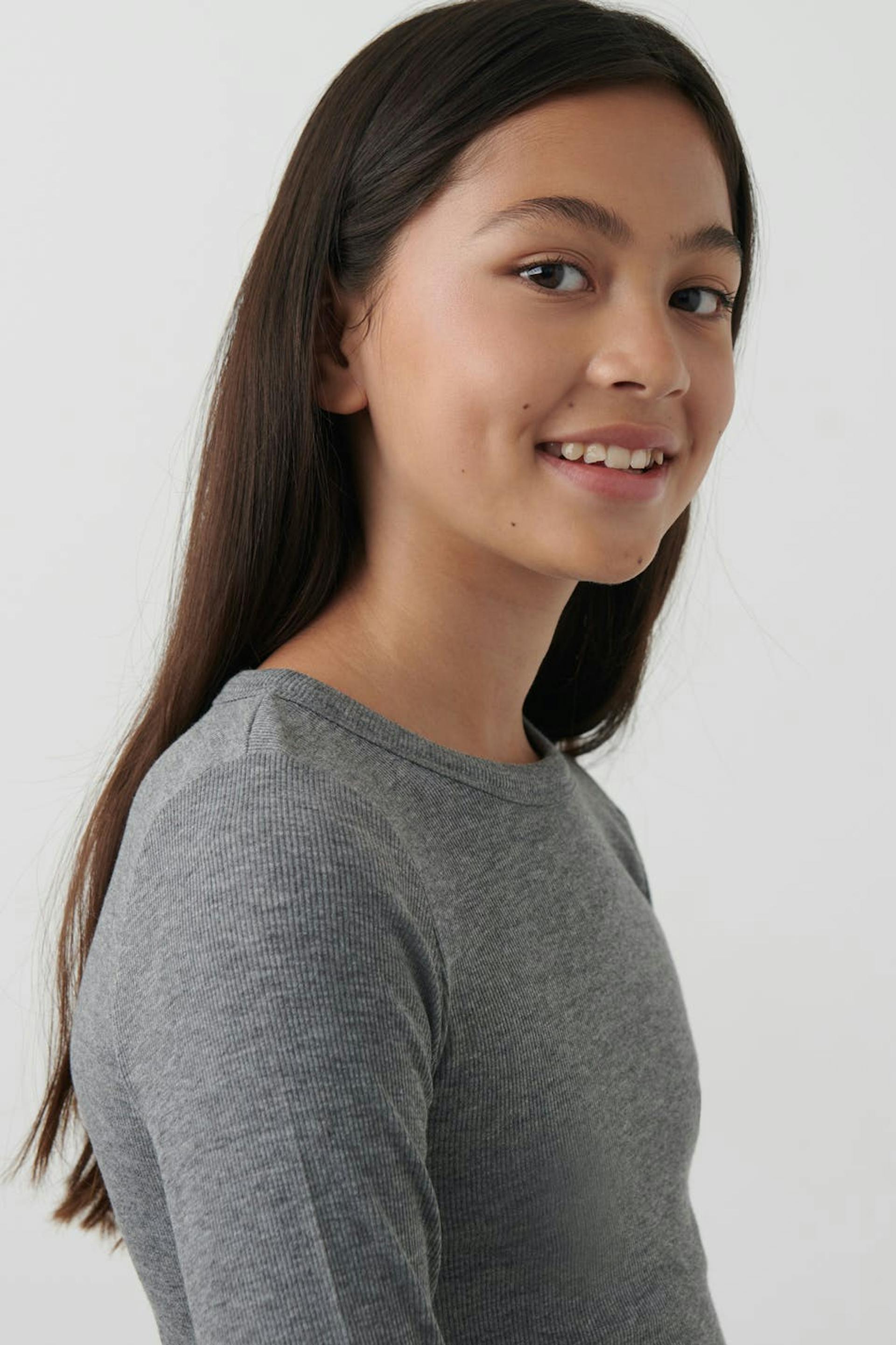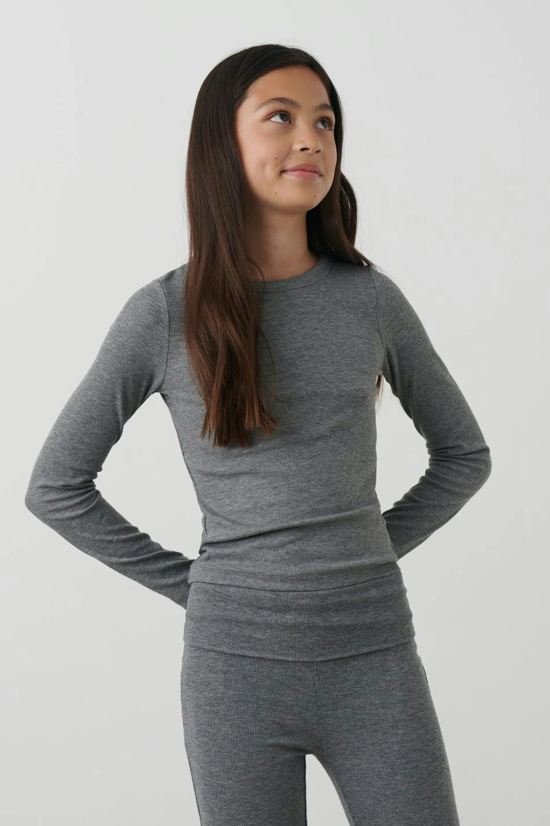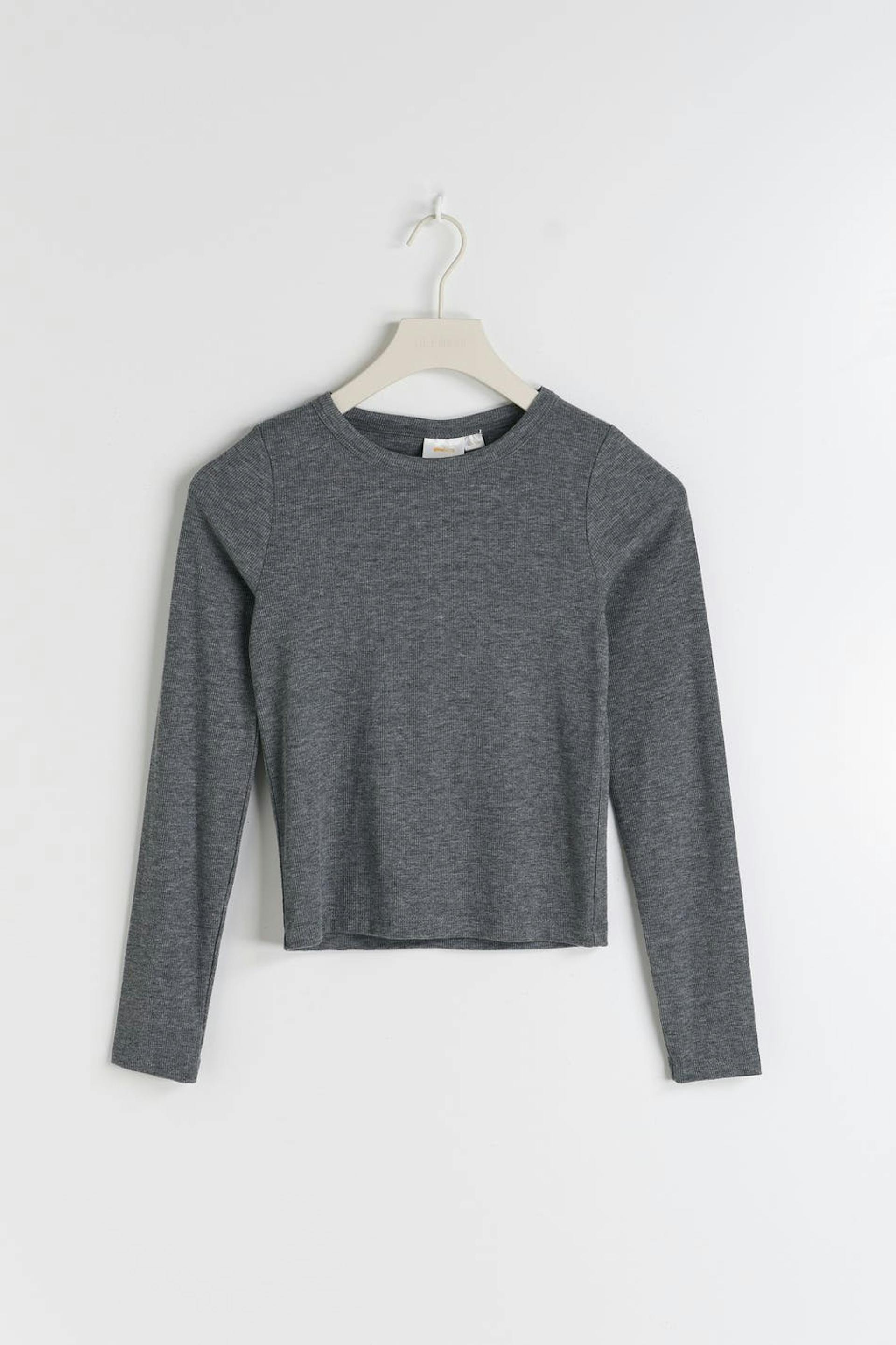 Long-sleeved top in jersey with regular fit. The top is grey and has soft, ribbed quality.