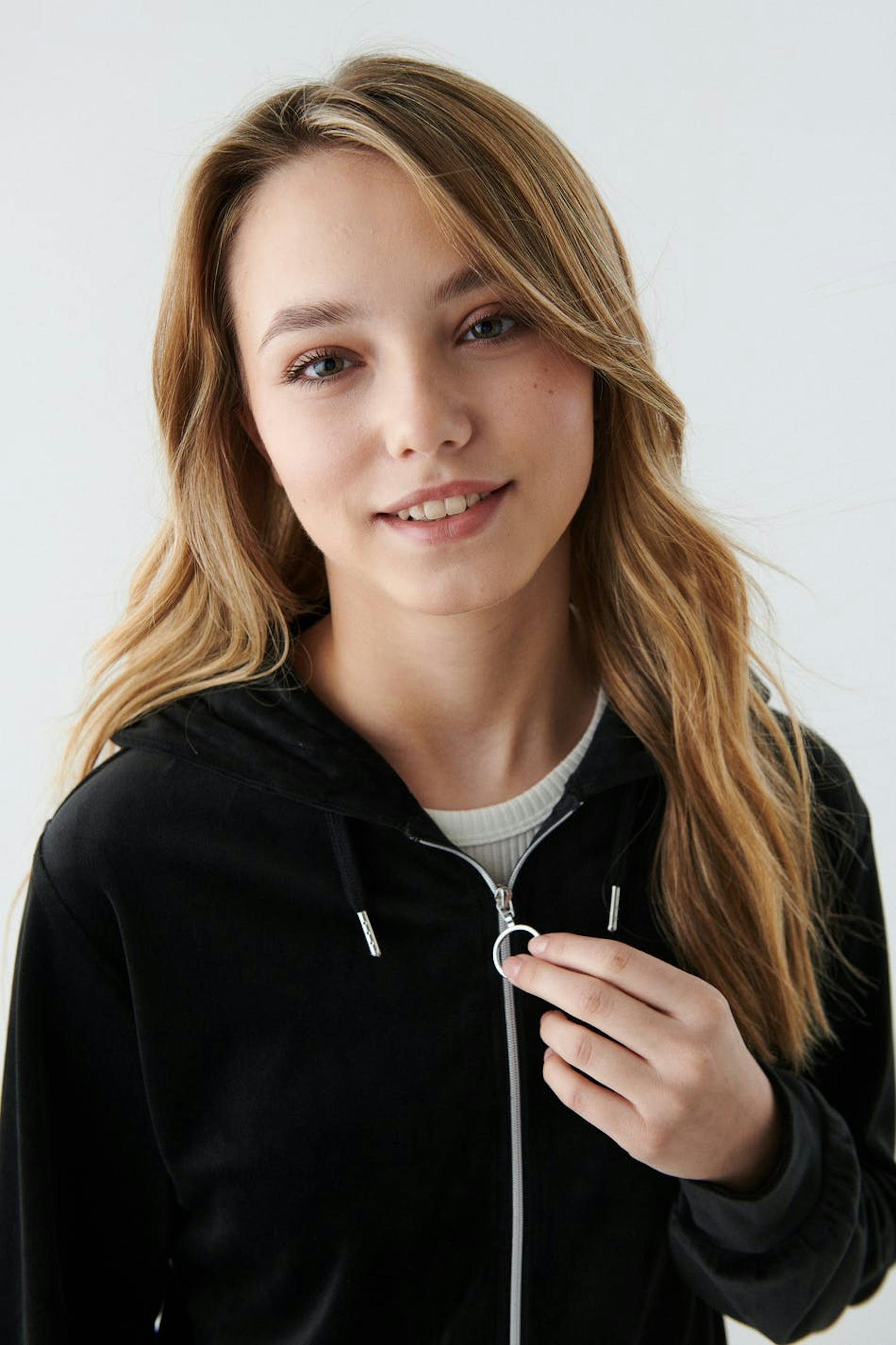 The model wears size 158/164 and is 164 cm tall
