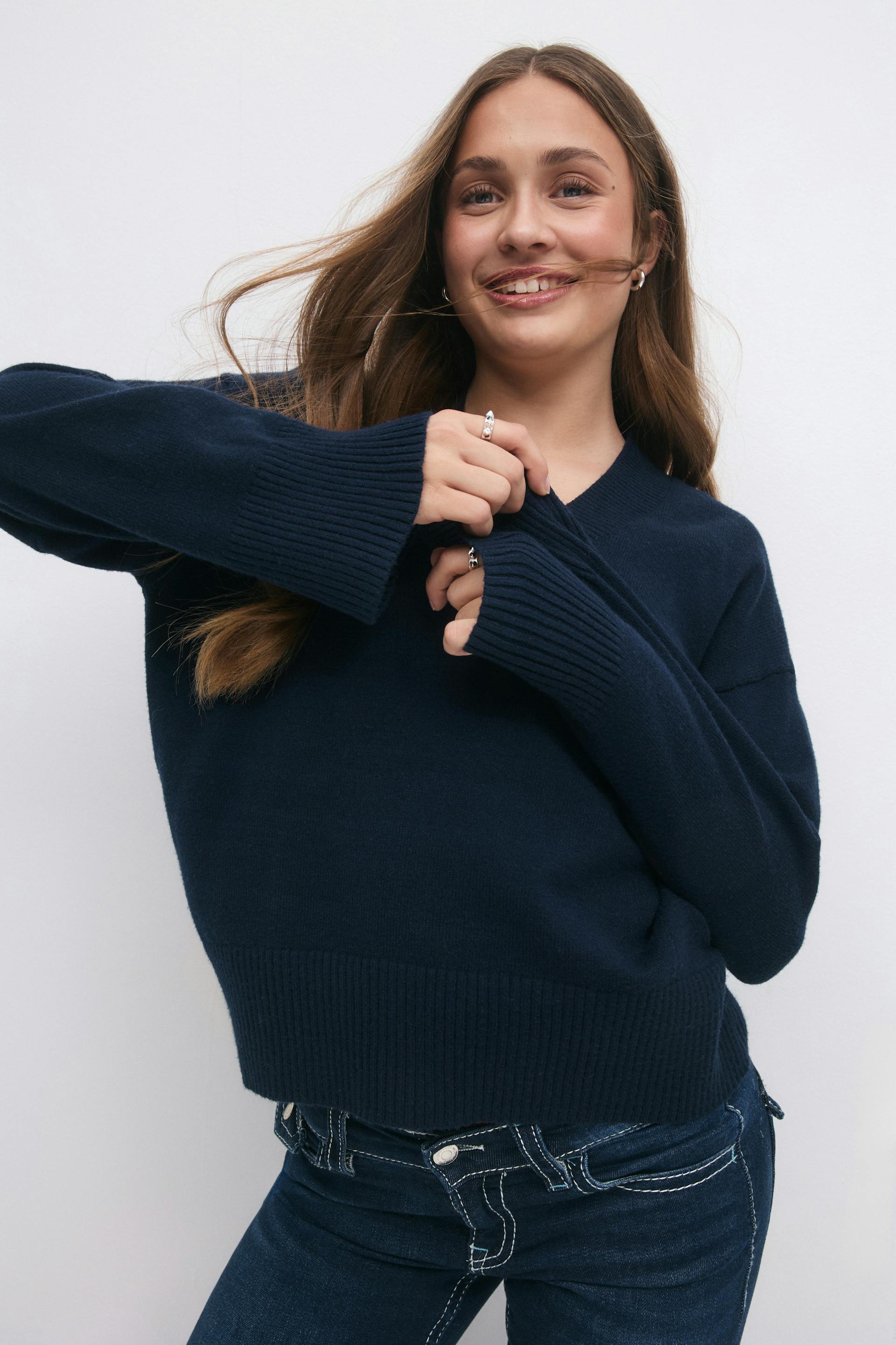 Y knit v-neck sweater