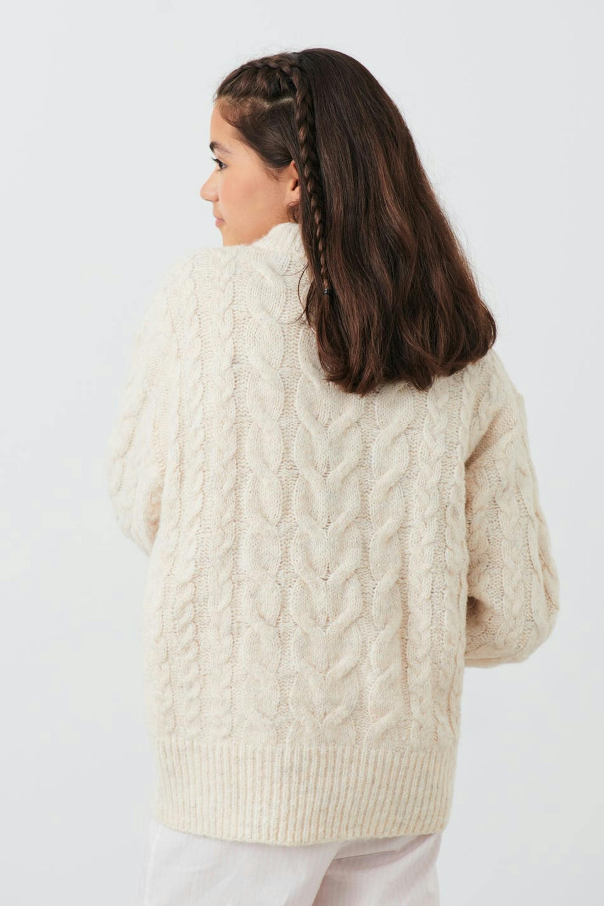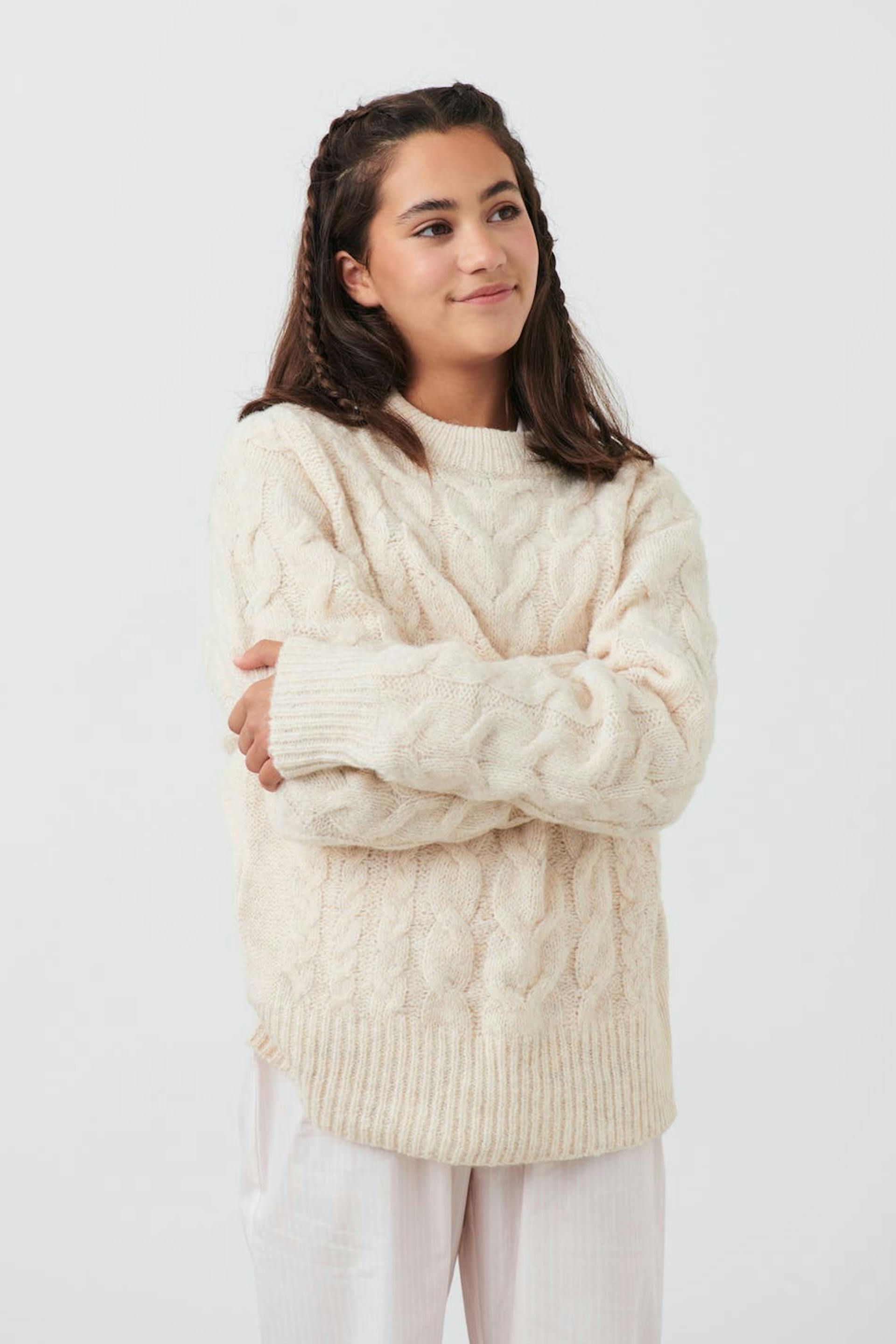 Cable-knit jumper by Gina Tricot Young with regular fit. The jumper is beige and has round, ribbed neckline. It has long sleeve and rib knit at the bottom.